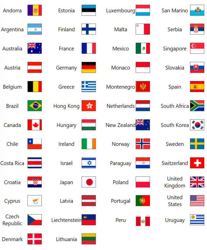 Japan, South Korea, Singapore, Israel, Australia, New Zealand, Hong Kong (SAR China)Other: