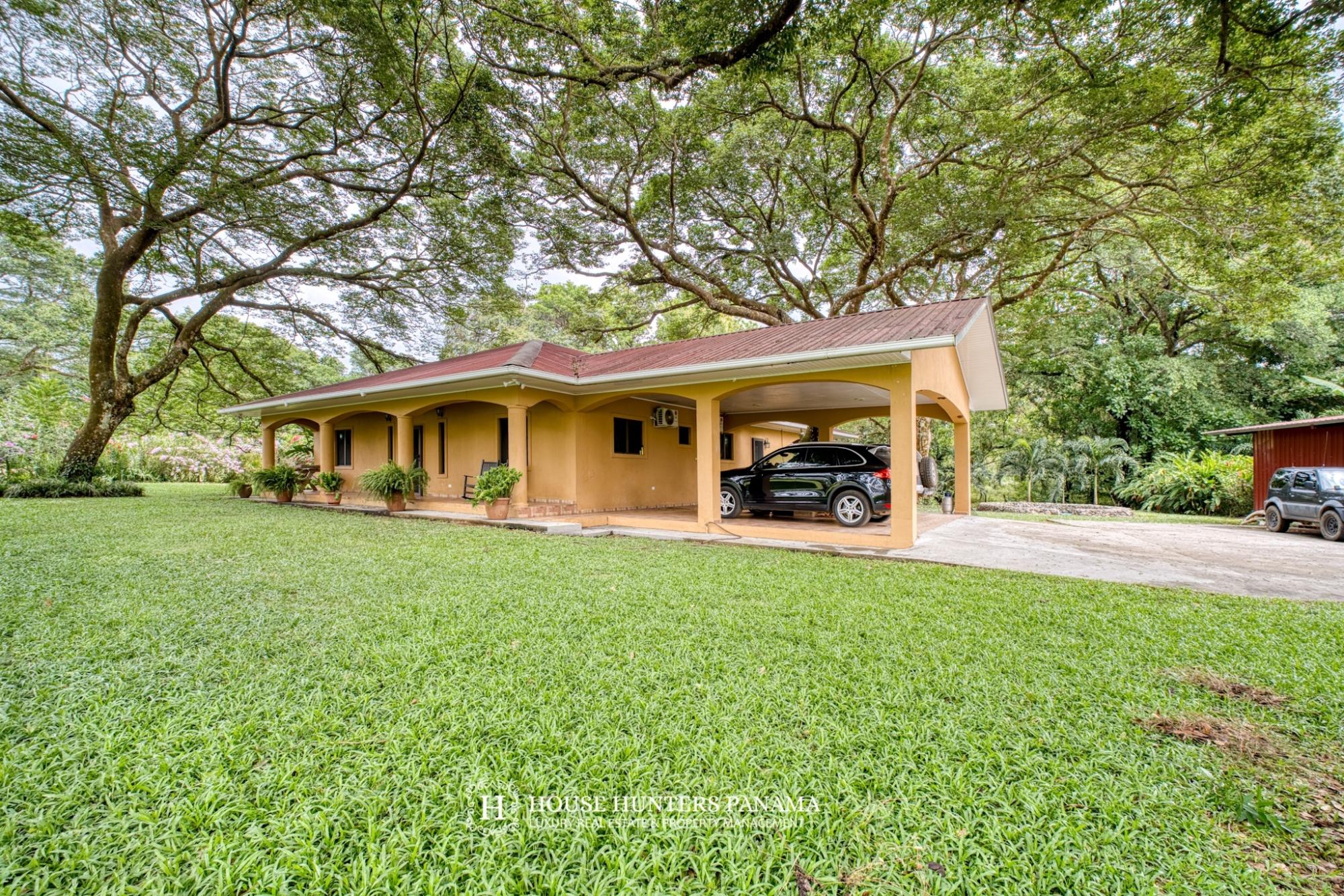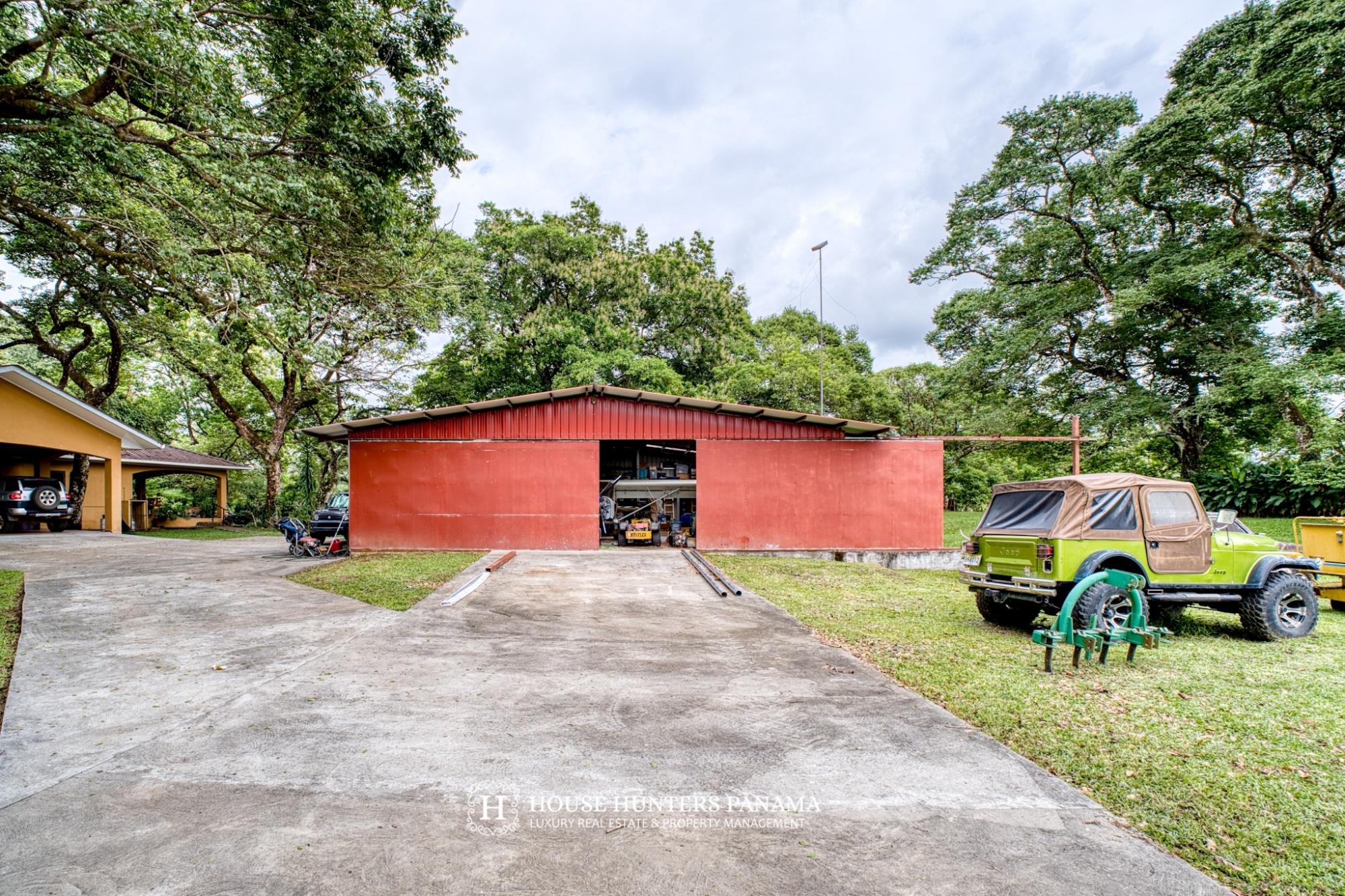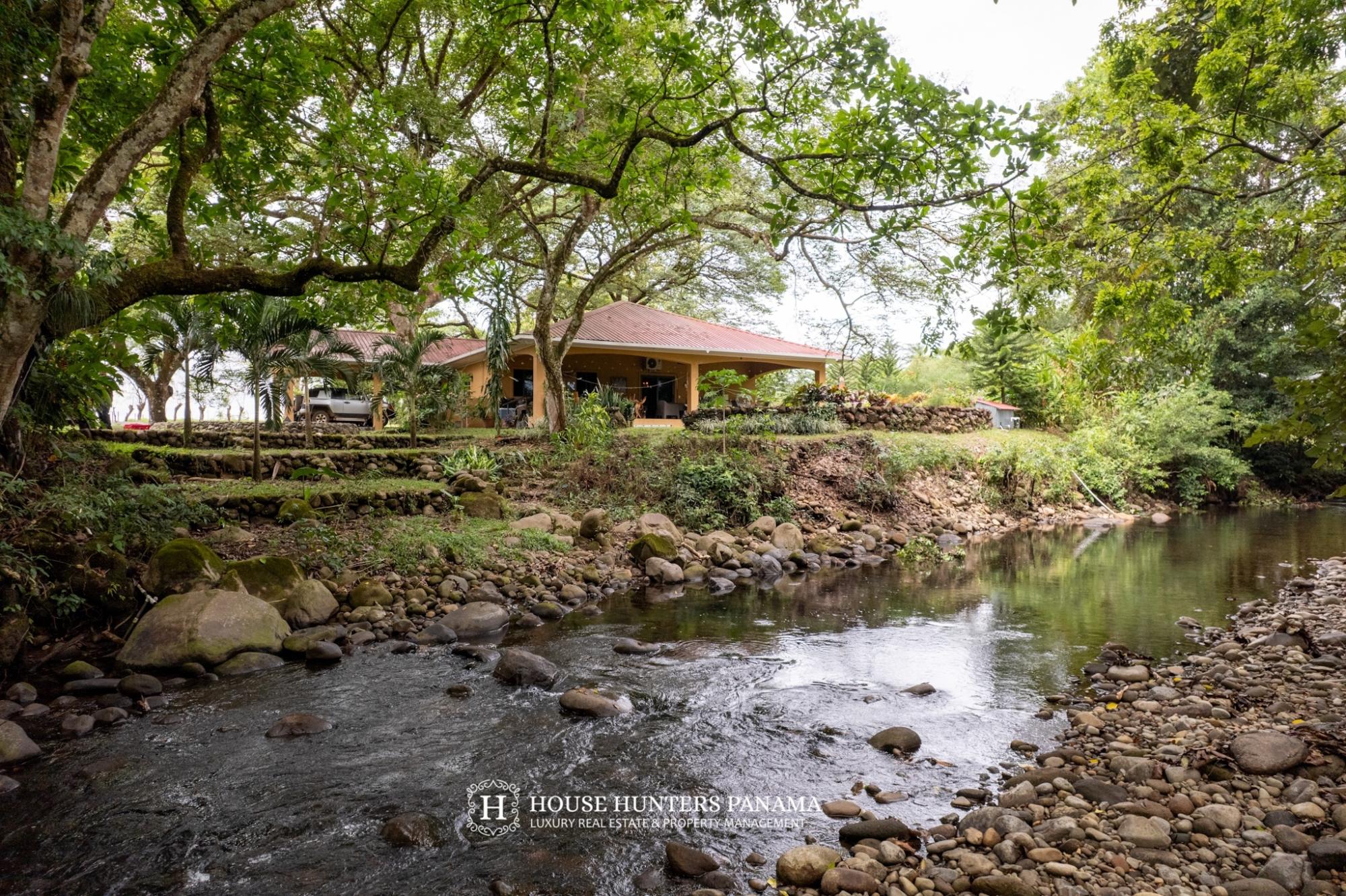 If you love country living with no neighbors in sight, this beautiful 17-acre (7-hectare) farm offers the perfect retreat. With flat, fertile land and a scenic river running through, this is a rare opportunity to own a peaceful sanctuary. Conveniently located just minutes from Dolega, with David and Boquete nearby, you’ll have easy access to shopping, restaurants, and amenities—while still enjoying complete privacy. The owner is selling due to health reasons, and the property is priced for a quick sale! Built in 2019, the fully furnished home features three bedrooms and two full baths. The open floor plan creates a welcoming atmosphere, with a well-appointed kitchen offering ample storage. Just off the kitchen, a large laundry room adds convenience, while a 176 sq ft storage room is perfect for preppers or extra pantry space. The master suite includes a built-in wardrobe and an ensuite bath with a jacuzzi tub, while two guest bedrooms share a stylish bath. Step outside to the expansive 722 sq ft covered terrace overlooking the river, an ideal place to unwind. A two-car carport provides covered parking, while a large greenhouse is perfect for gardening. Additionally, a 40 x 40 outbuilding offers space for hobbies, storage, or a workshop. This farm is fully equipped and move-in ready, including a tractor. Whether you’re seeking a homestead, hobby farm, or private escape, this exceptional property offers endless potential. Don’t miss this rare opportunity—priced to sell quickly!