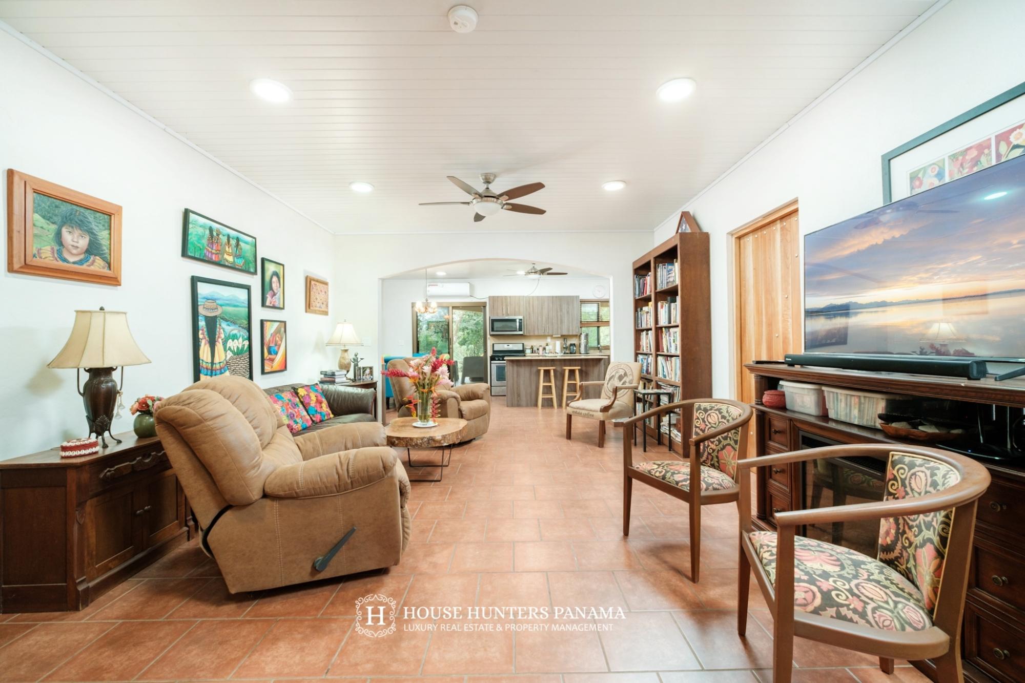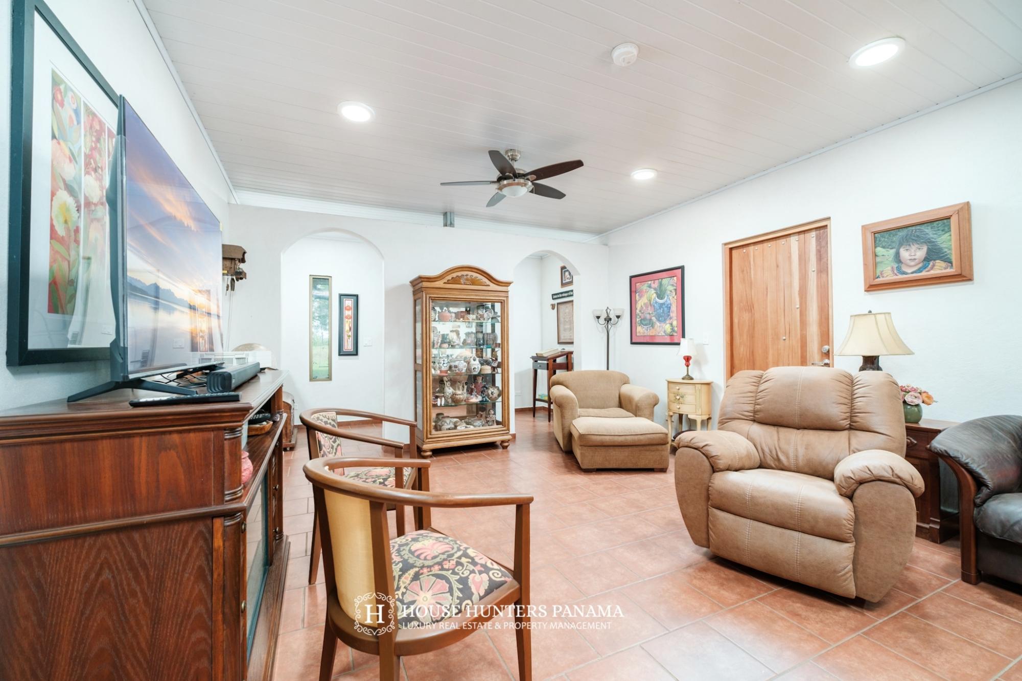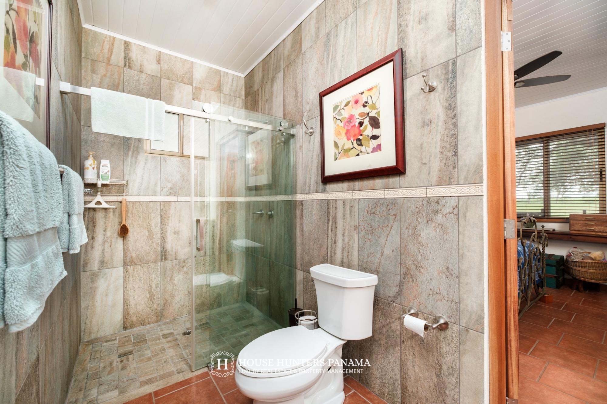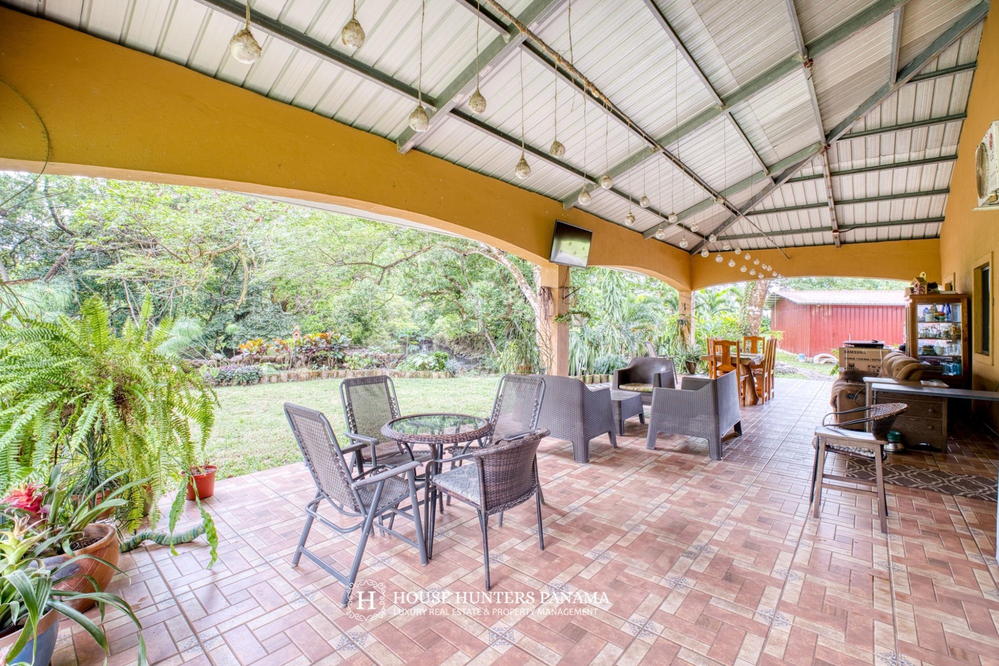 If you love country living with no neighbors in sight, this beautiful 17-acre (7-hectare) farm offers the perfect retreat. With flat, fertile land and a scenic river running through, this is a rare opportunity to own a peaceful sanctuary. Conveniently located just minutes from Dolega, with David and Boquete nearby, you’ll have easy access to shopping, restaurants, and amenities—while still enjoying complete privacy. The owner is selling due to health reasons, and the property is priced for a quick sale! Built in 2019, the fully furnished home features three bedrooms and two full baths. The open floor plan creates a welcoming atmosphere, with a well-appointed kitchen offering ample storage. Just off the kitchen, a large laundry room adds convenience, while a 176 sq ft storage room is perfect for preppers or extra pantry space. The master suite includes a built-in wardrobe and an ensuite bath with a jacuzzi tub, while two guest bedrooms share a stylish bath. Step outside to the expansive 722 sq ft covered terrace overlooking the river, an ideal place to unwind. A two-car carport provides covered parking, while a large greenhouse is perfect for gardening. Additionally, a 40 x 40 outbuilding offers space for hobbies, storage, or a workshop. This farm is fully equipped and move-in ready, including a tractor. Whether you’re seeking a homestead, hobby farm, or private escape, this exceptional property offers endless potential. Don’t miss this rare opportunity—priced to sell quickly!