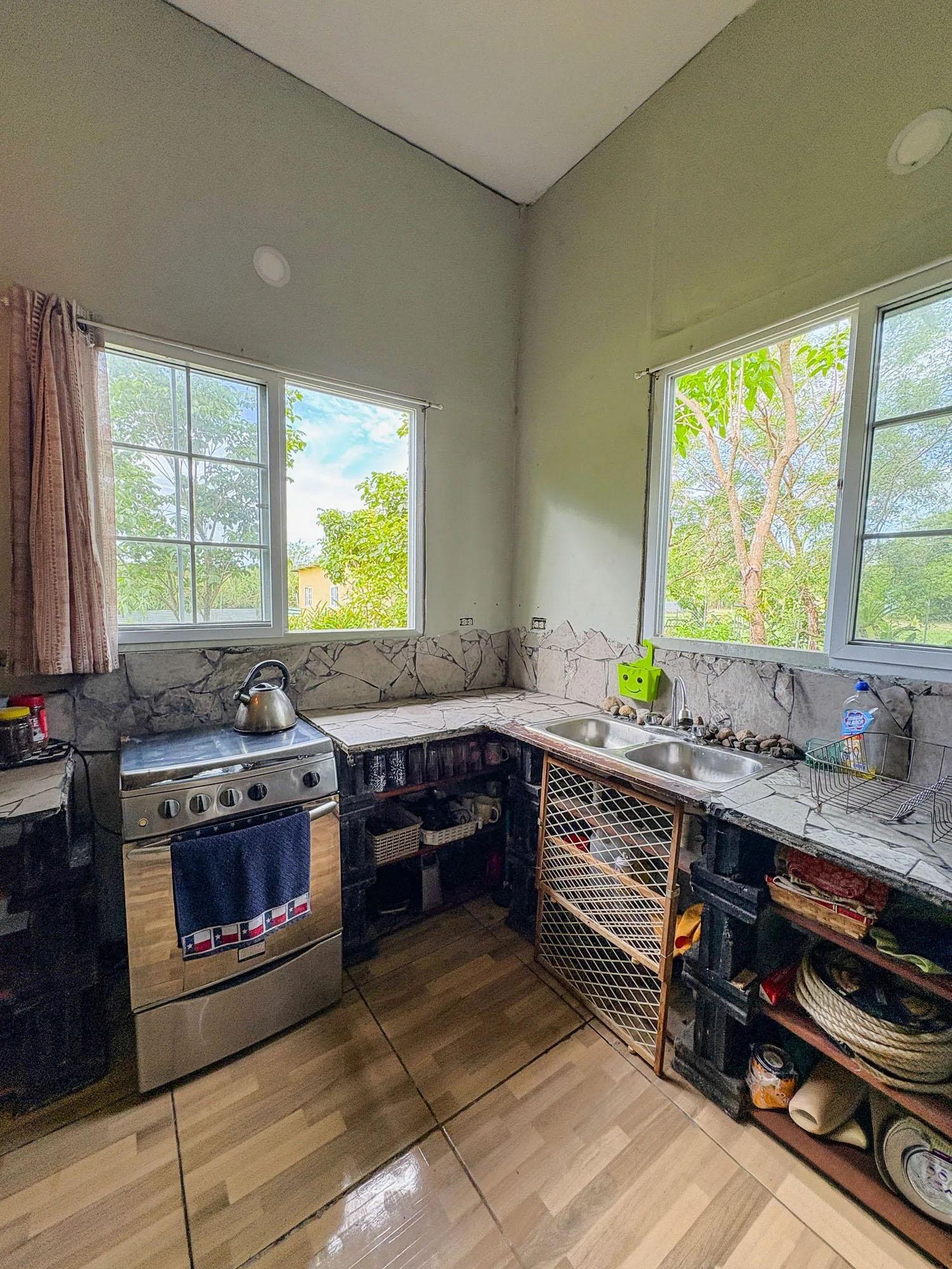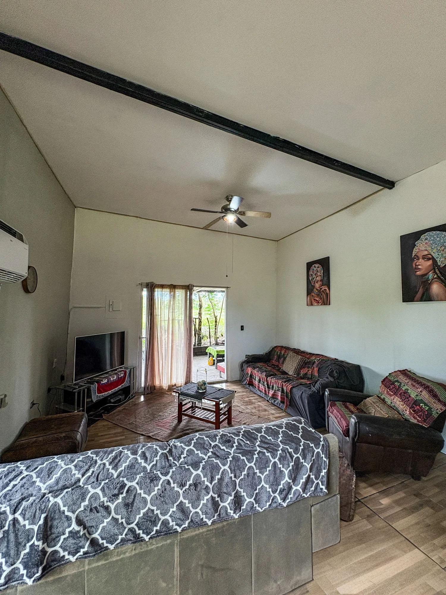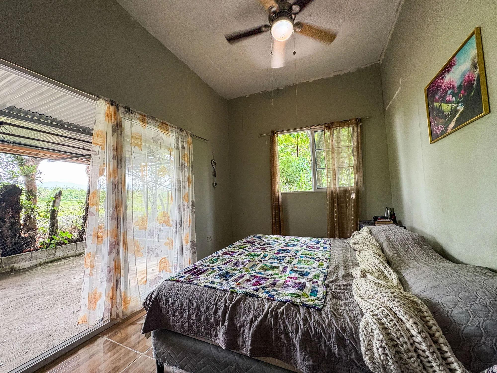 This 2,000 sqm property located in Dolega, Cochea features a flat and usable lot with two existing structures: a 99 sqm main house with four bedrooms and two bathrooms, and a 52 sqm smaller house. The land is one of the main strengths of the property, offering flexibility for future improvements or expansion. The existing structures would benefit from renovation, which opens different possibilities for a future owner. One option would be to expand the larger house to serve as the primary residence while keeping the smaller house as a guest house. Another possibility would be to maintain both structures as guest accommodations and build a new main residence on the property. These are simply examples of how the space could be utilized. The property already has essential infrastructure in place, including water and electricity connections, a private water well, backup water tank, and two septic systems. Fruit trees such as banana, papaya, lichi, and pineapple are already planted on the land. A scenic river located about five minutes away provides a nearby place for fishing, swimming, or hiking, and the garden and terrace offer views of Volcan Baru.