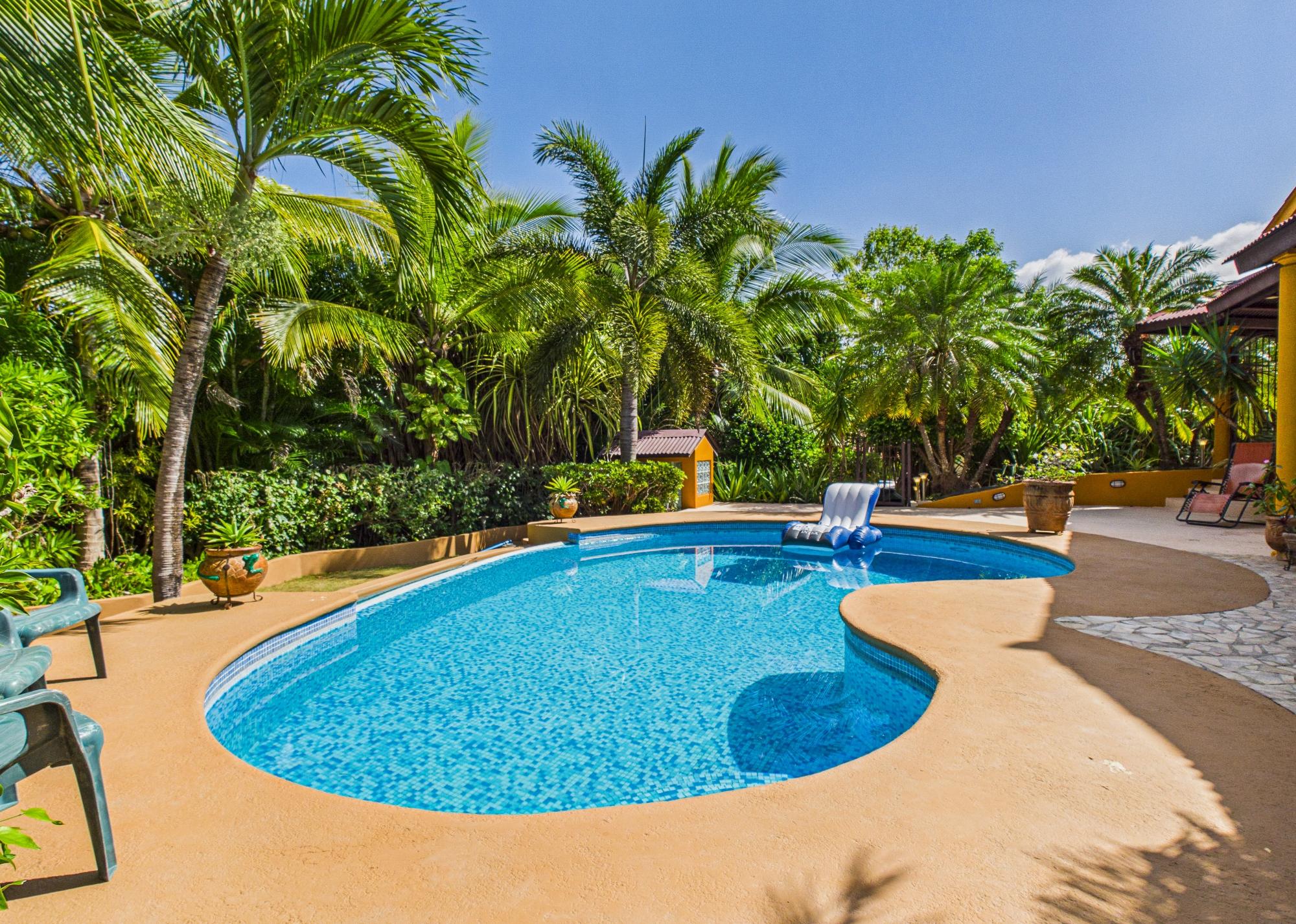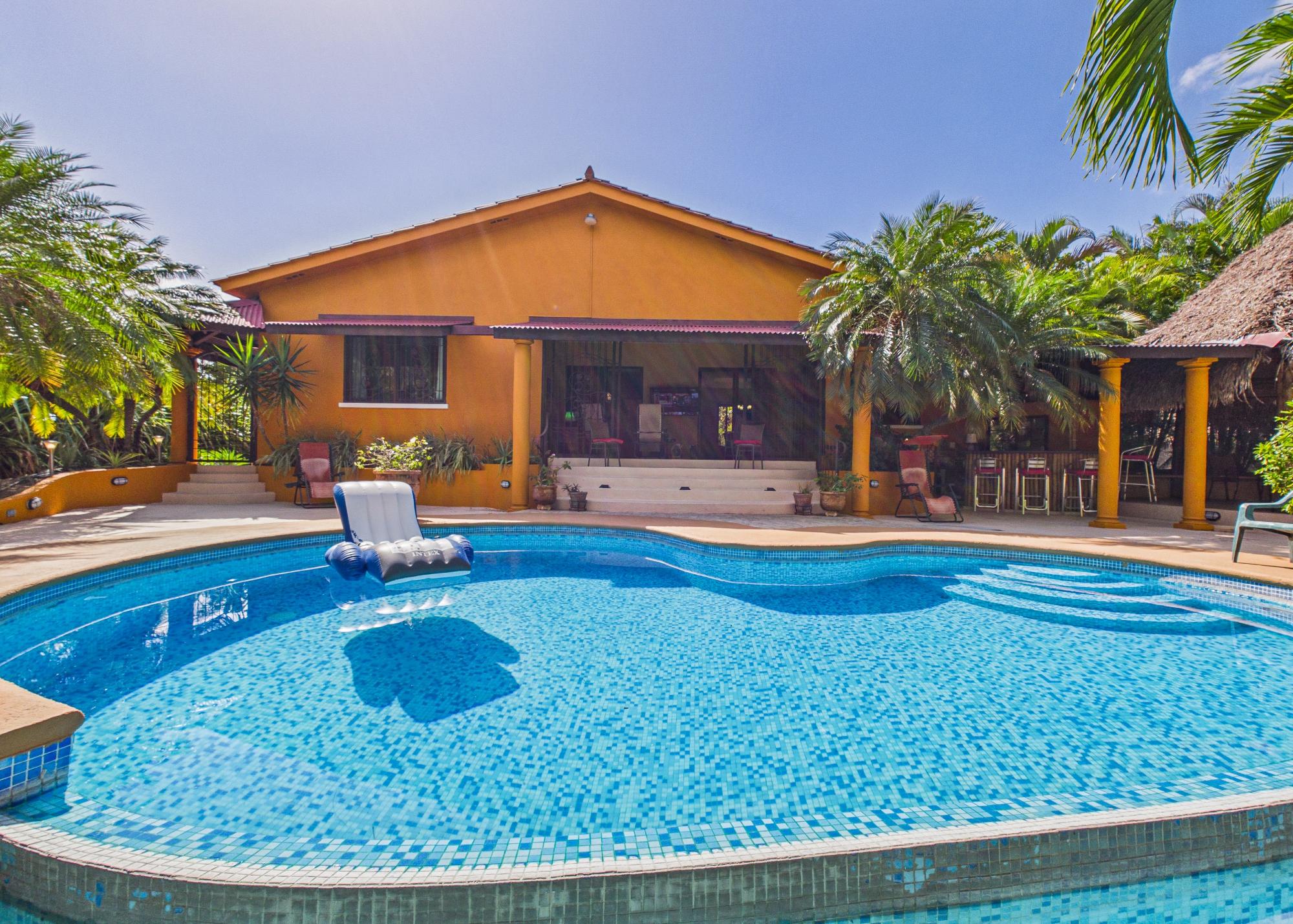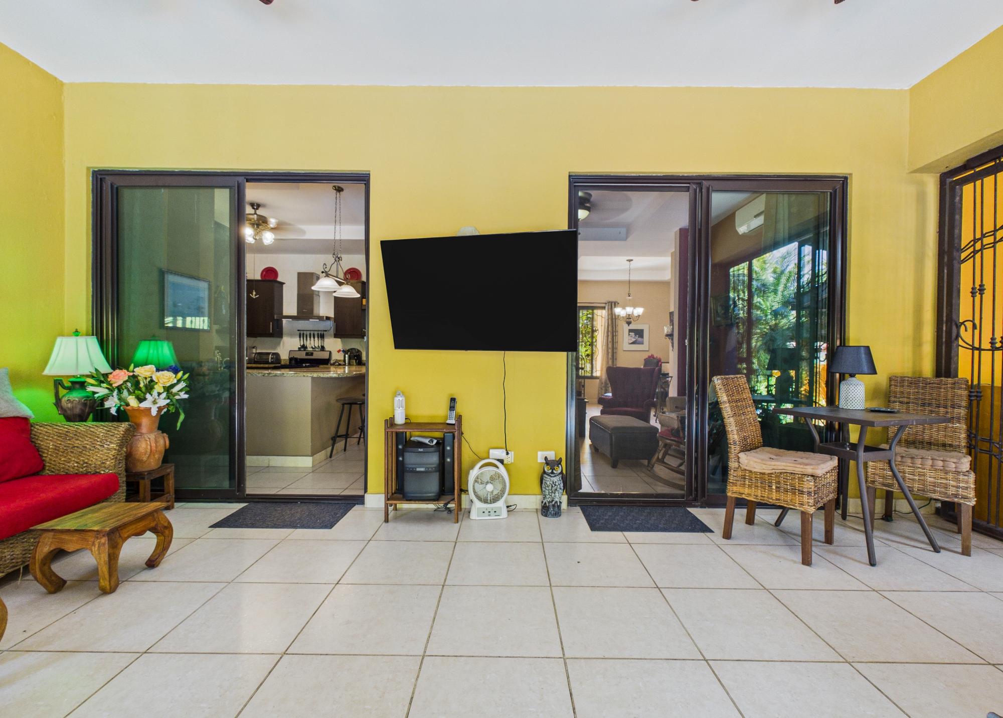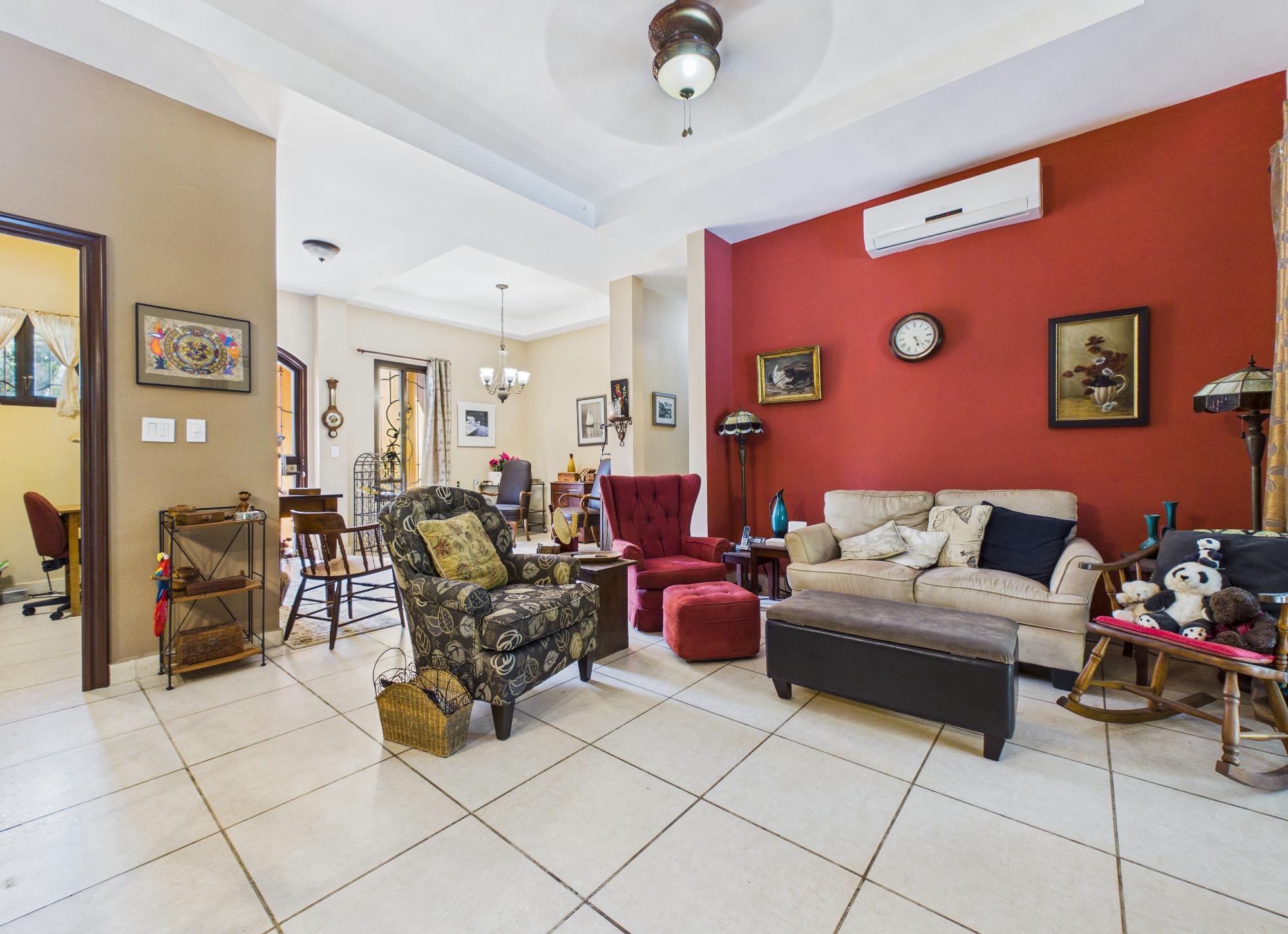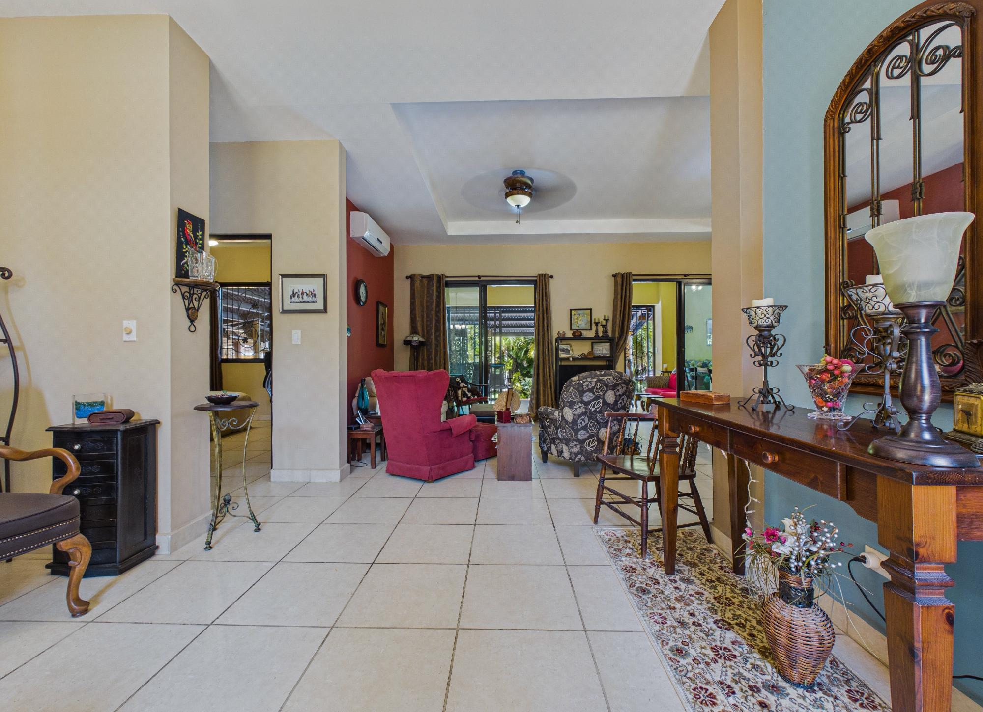 Beautiful fully furnished tropical estate located in the gated community of Hacienda Pacifica in San Carlos. This well-maintained home features an infinity-style pool, outdoor kitchen, bohío with teak columns, and lush landscaped grounds with mature fruit trees. The property offers a spacious layout with a primary suite, ensuite bathroom, and a versatile safe room that can be used as an additional bedroom or storage. Designed for indoor-outdoor living, the home includes a separate exterior building with washroom, outdoor bathroom, and additional storage spaces. Equipped with modern conveniences such as LED lighting, surge protection, and full appliances, this property is move-in ready. Enjoy privacy, security, and a relaxed lifestyle just minutes from the beach. Ideal as a full-time residence, vacation home, or investment property.
