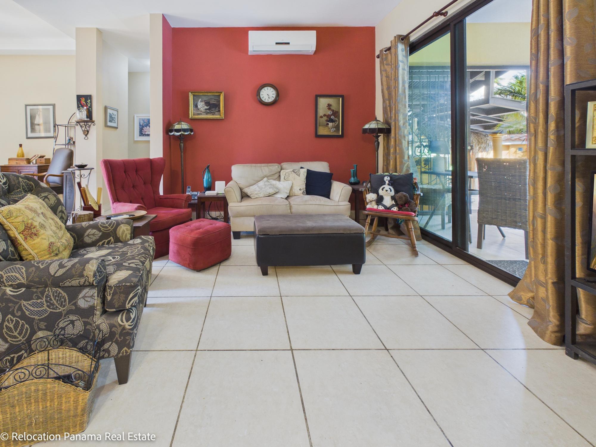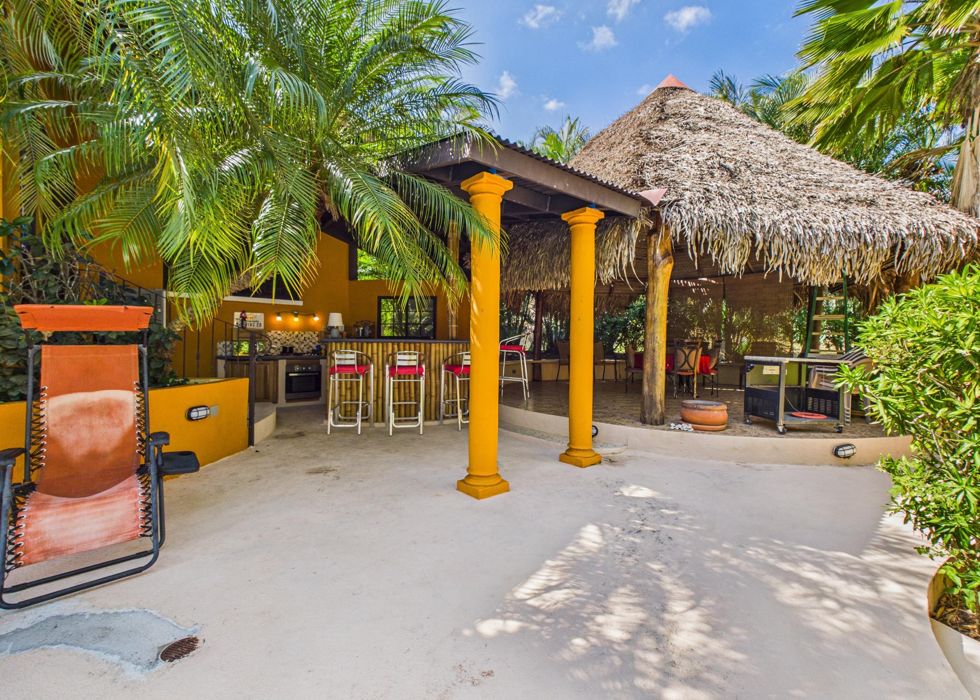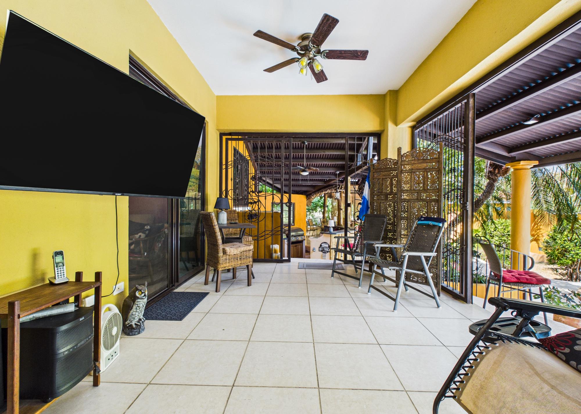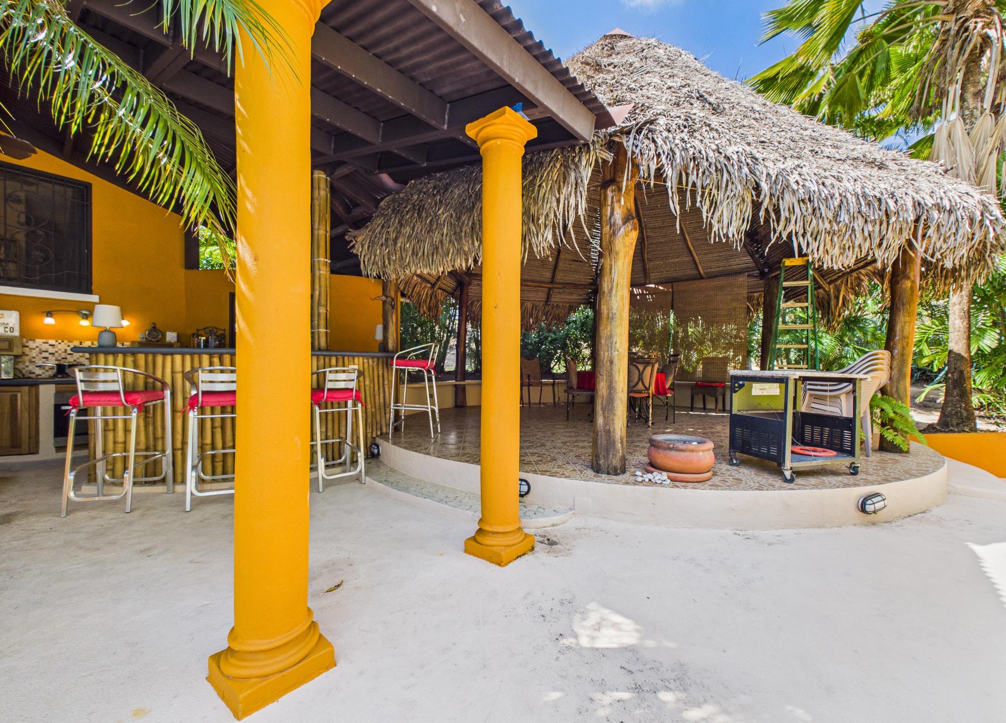 Beautiful fully furnished tropical estate located in the gated community of Hacienda Pacifica in San Carlos. This well-maintained home features an infinity-style pool, outdoor kitchen, bohío with teak columns, and lush landscaped grounds with mature fruit trees. The property offers a spacious layout with a primary suite, ensuite bathroom, and a versatile safe room that can be used as an additional bedroom or storage. Designed for indoor-outdoor living, the home includes a separate exterior building with washroom, outdoor bathroom, and additional storage spaces. Equipped with modern conveniences such as LED lighting, surge protection, and full appliances, this property is move-in ready. Enjoy privacy, security, and a relaxed lifestyle just minutes from the beach. Ideal as a full-time residence, vacation home, or investment property.