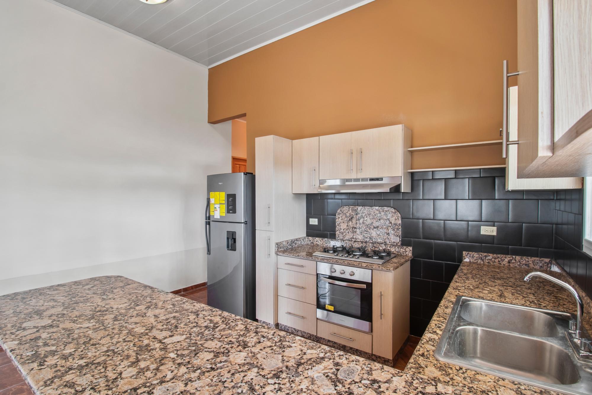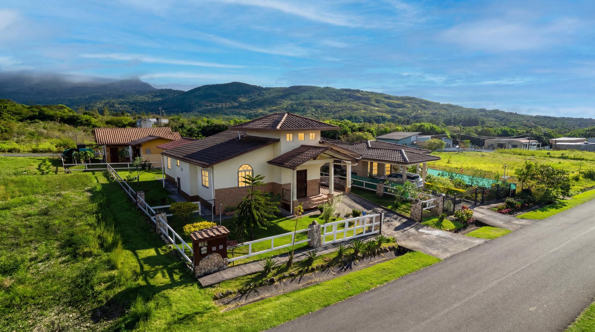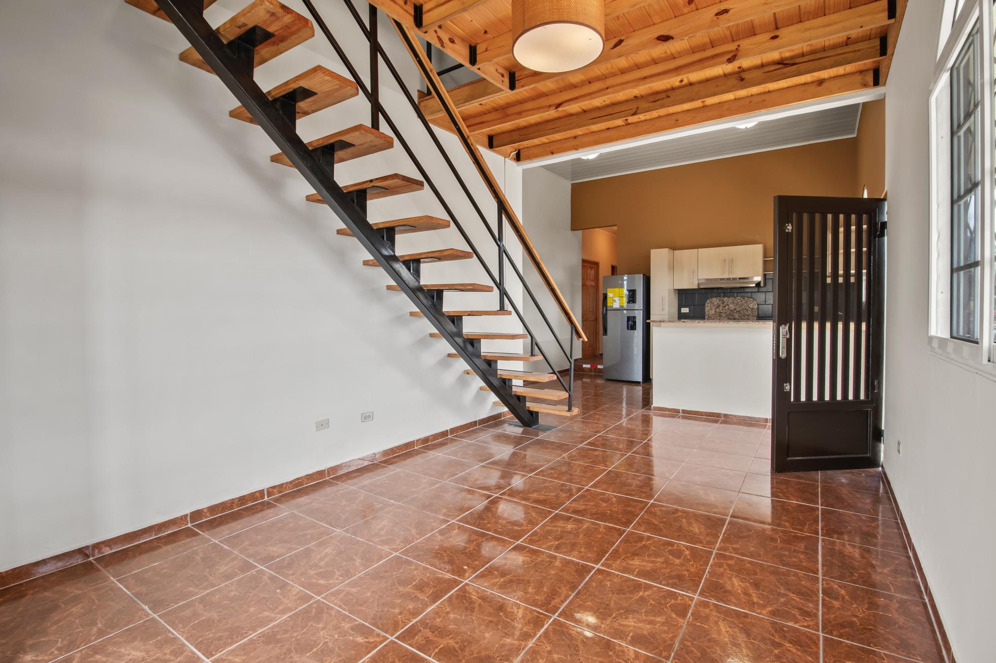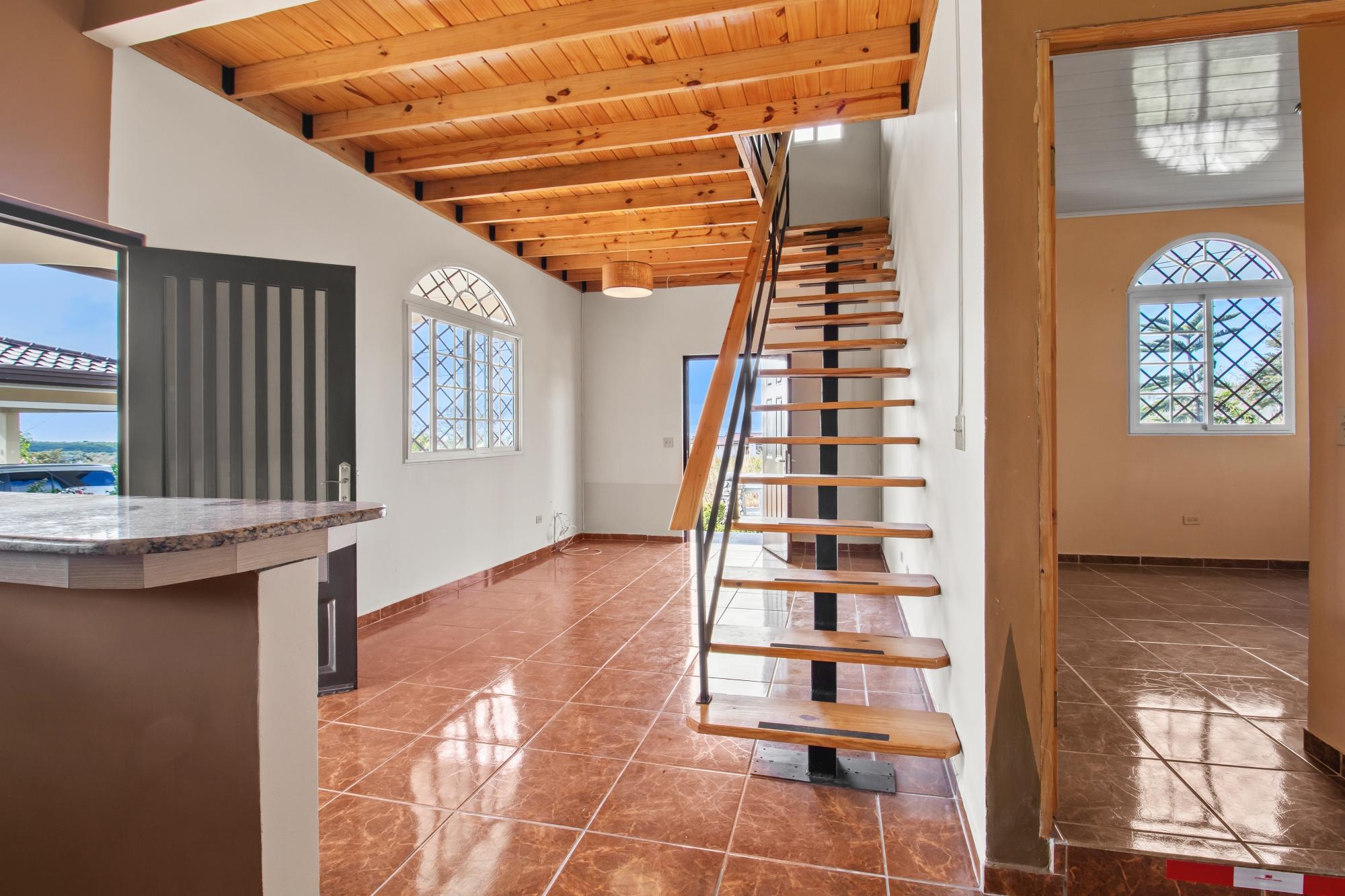 Located in a quiet and established residential area of Alto Boquete, this well-designed home offers comfort, functionality, and flexible living spaces on a 5,749 sq.ft. lot, with approximately 1,970 sq.ft. of construction. The home features three bedrooms and two full bathrooms. The primary bedroom includes a private bathroom and a walk-in closet, while the remaining two bedrooms share a full bathroom, providing a practical and well-balanced layout ideal for family living or hosting guests. A standout feature of the home is the loft area, accessed by a solid wooden staircase. This versatile space can be used as a home office, yoga or meditation area, creative studio, reading loft, or an optional fourth sleeping space, depending on the buyer’s needs. The interior highlights high ceilings, exposed wood details, and an open, airy layout, creating a warm and inviting atmosphere throughout the main living areas. The open kitchen is equipped with granite countertops, ample cabinetry, and includes a refrigerator and stove, connecting seamlessly to the living and dining spaces. Additional features include: Fiber optic internet access, ideal for remote work or streaming Hot water system Functional laundry/utility area Covered porch and outdoor living space Fully usable yard with room for gardening or outdoor seating The property is located in Alto Boquete, a desirable residential area known for its peaceful environment while remaining conveniently close to Boquete town, schools, supermarkets, and essential services. This home is ideal for buyers seeking a quiet lifestyle, modern connectivity, adaptable interior spaces, and a well-located property.