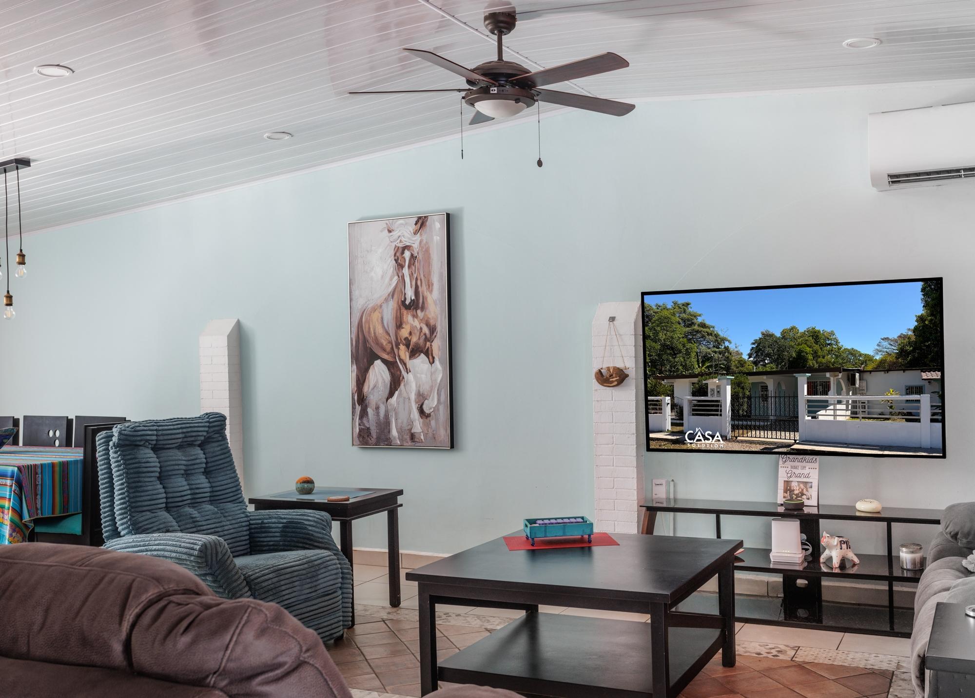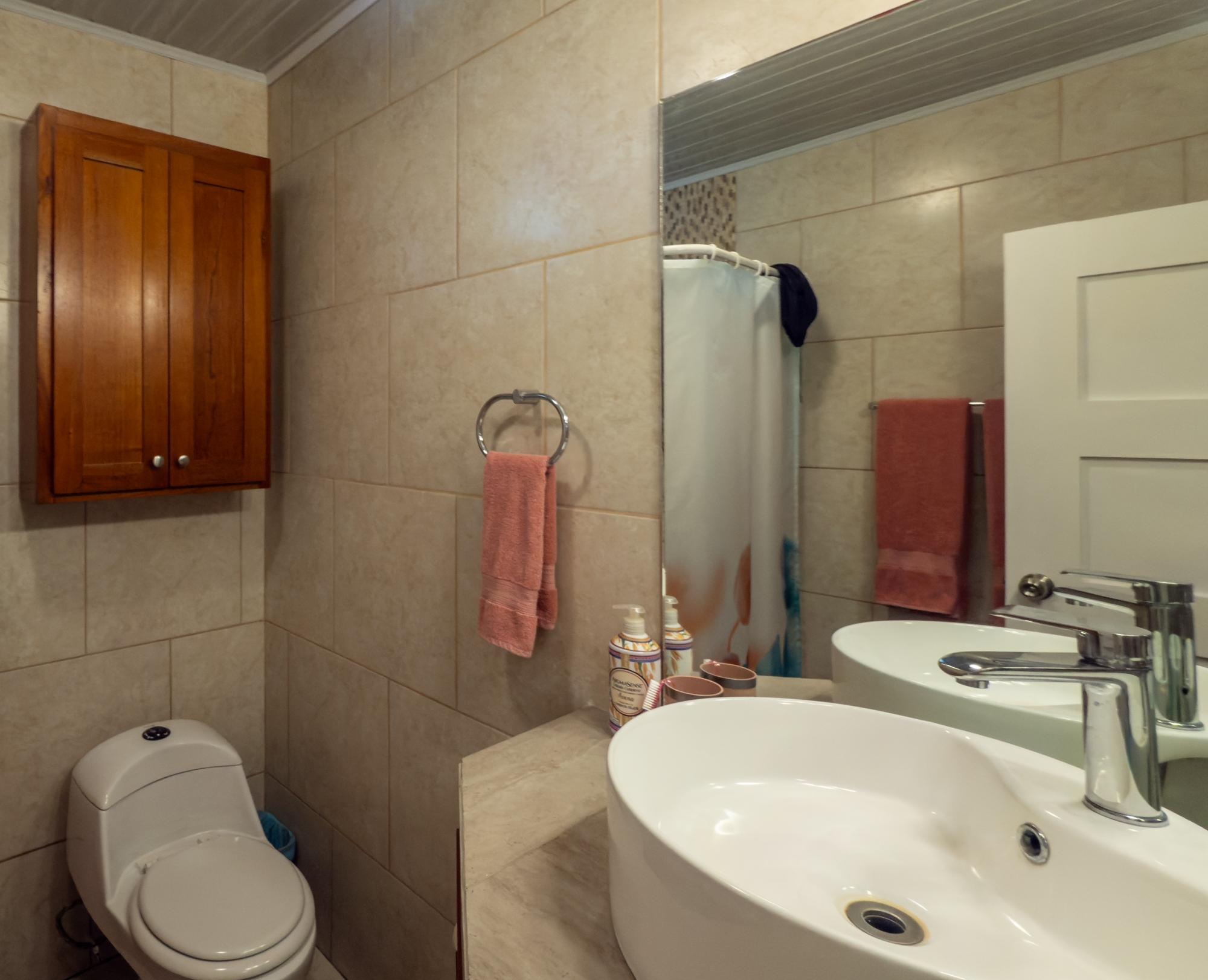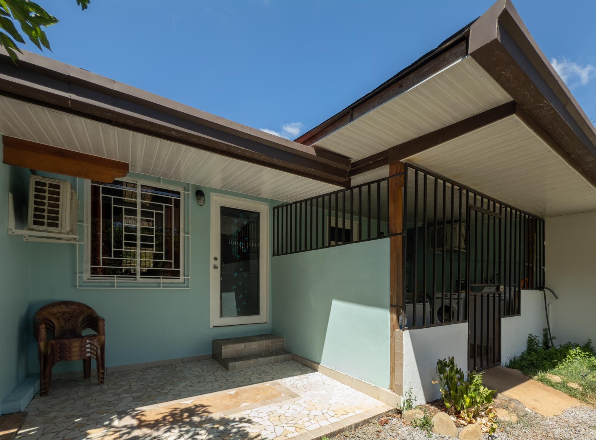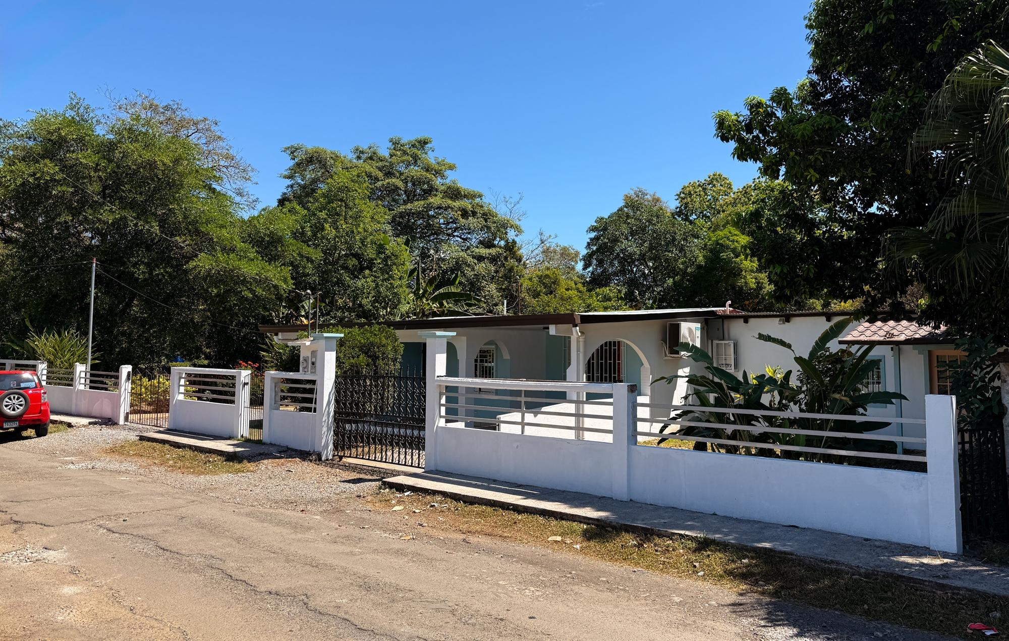 This property for sale in Dolega, Chiriquí, offers a total of 2,608 sqm of land and a 200 sqm construction. The main house offers 3 bedrooms and 2 bathrooms, while the additional guest house includes 1 bedroom and 1 bathroom, perfect for generating rental income. The property is conveniently located with only a short walk to town, and close to shopping centers, hospitals, and minutes to Boquete. Upon entering the property, you’ll find a spacious portal leading to the main house. Inside, there is an open layout combining the living room and dining area, offering a welcoming atmosphere. The kitchen is well defined, with a small window that allows communication with the dining area. The three bedrooms include wooden wardrobes, with the master bedroom offering the added convenience of a walk-in closet.