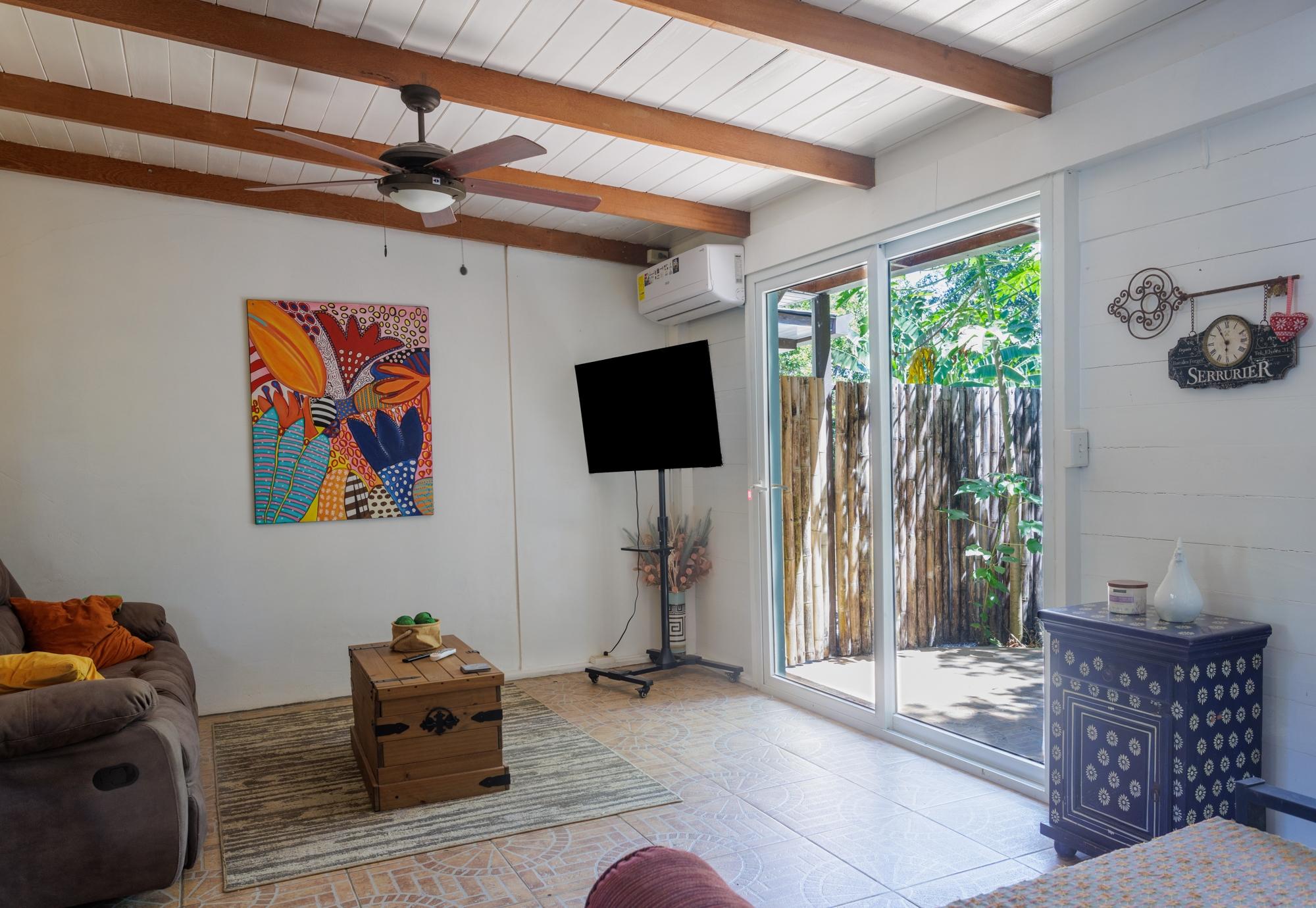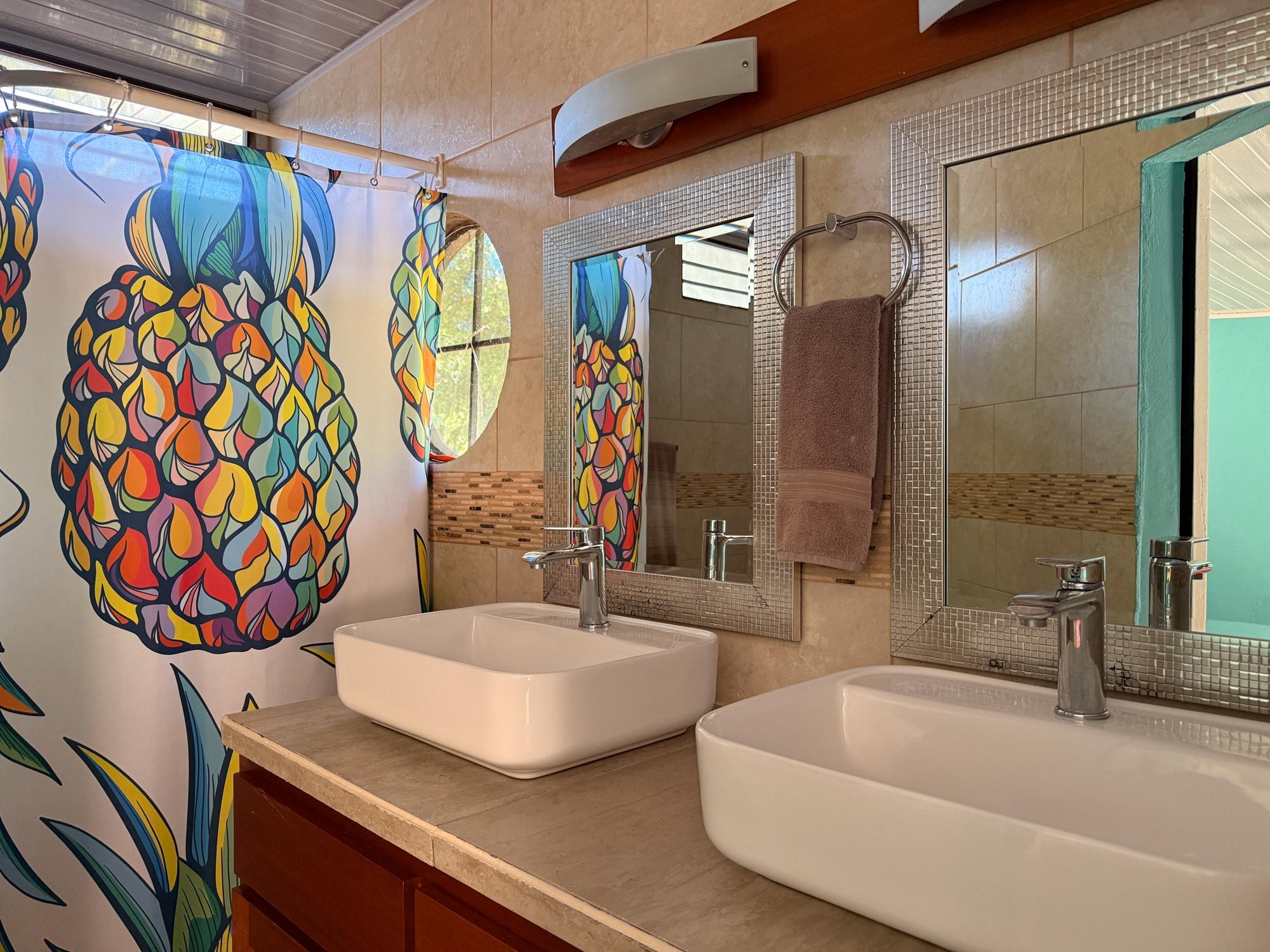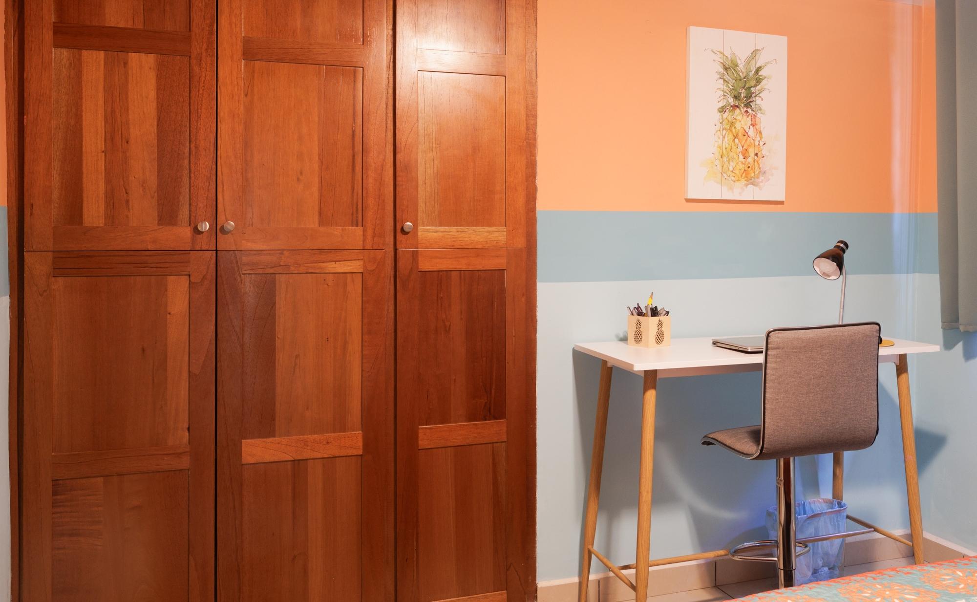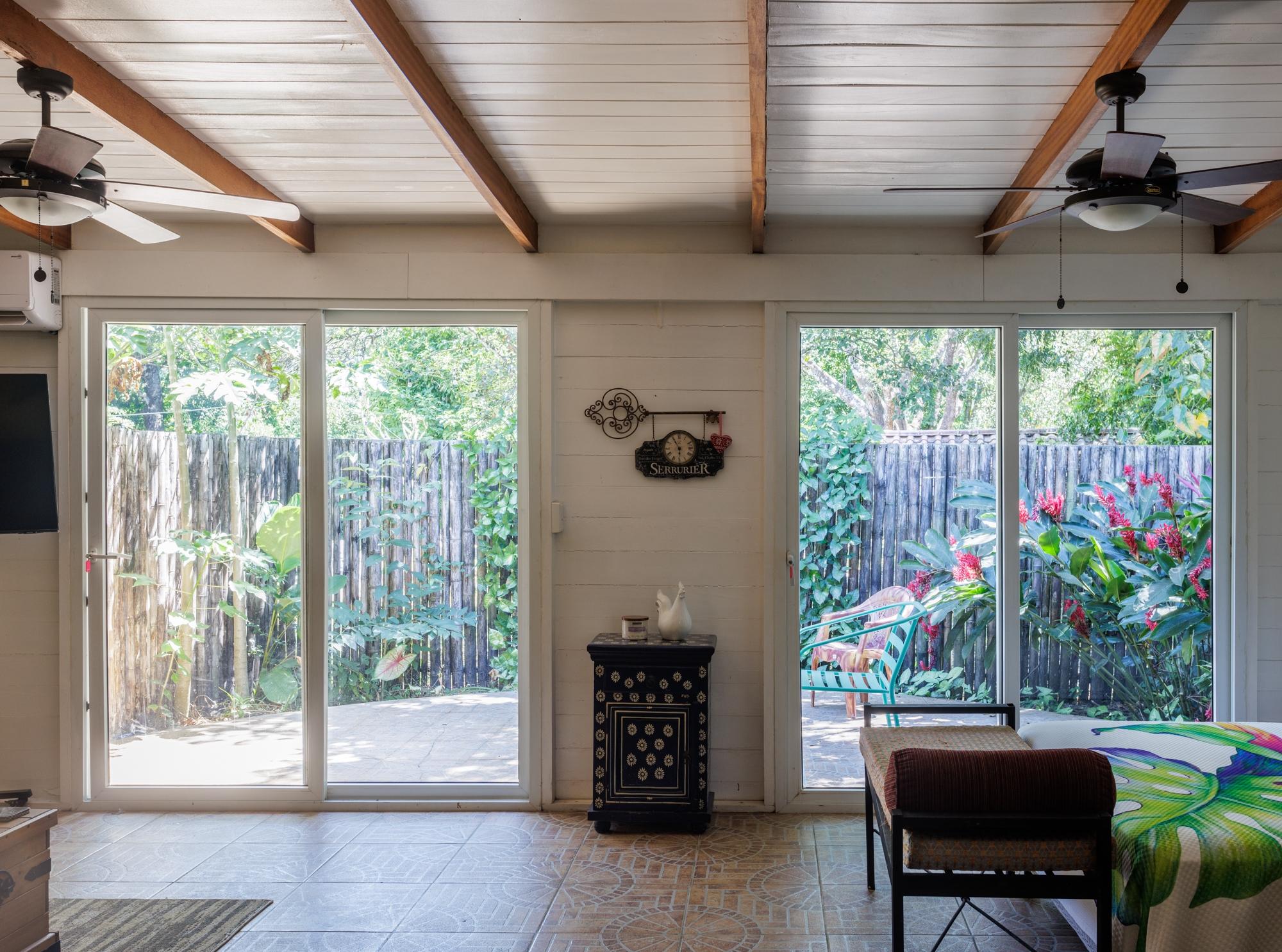 This property for sale in Dolega, Chiriquí, offers a total of 2,608 sqm of land and a 200 sqm construction. The main house offers 3 bedrooms and 2 bathrooms, while the additional guest house includes 1 bedroom and 1 bathroom, perfect for generating rental income. The property is conveniently located with only a short walk to town, and close to shopping centers, hospitals, and minutes to Boquete. Upon entering the property, you’ll find a spacious portal leading to the main house. Inside, there is an open layout combining the living room and dining area, offering a welcoming atmosphere. The kitchen is well defined, with a small window that allows communication with the dining area. The three bedrooms include wooden wardrobes, with the master bedroom offering the added convenience of a walk-in closet.