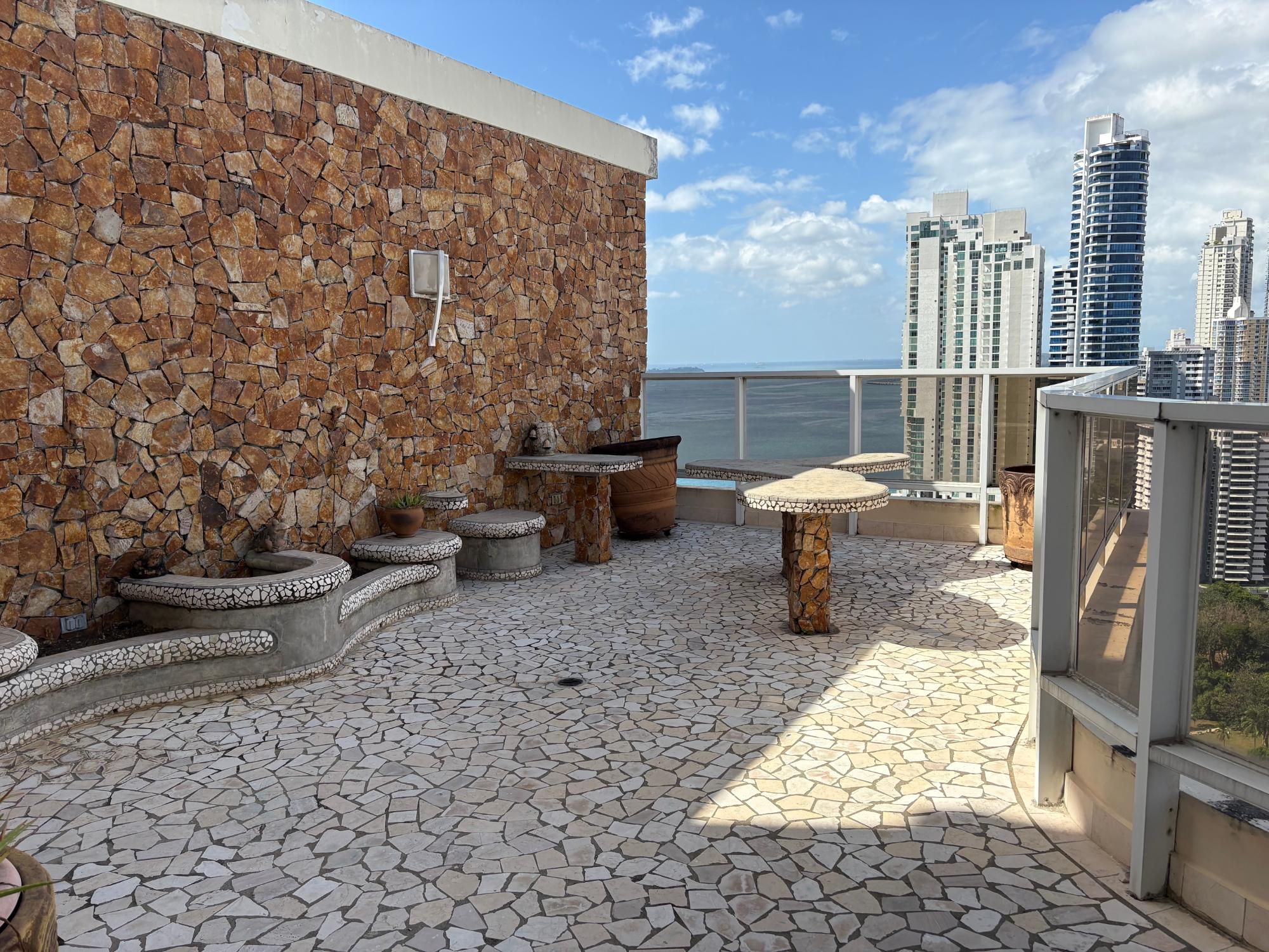 Beautiful two-level penthouse apartment located in one of Panama’s best areas, PH Pacific View in Punta Pacifica, very close to amenities such as supermarkets, gyms, pharmacies, and the beautiful Club Union de Panamá. This beautiful penthouse features 4 bedrooms, 4 bathrooms (each bedroom with its own ensuite bathroom), 1 maid’s room, 1 maid’s bathroom, 1 half-bathroom, terrace, family room, den/study, living room, walk-in closet, fully furnished, 471.58 square meters, and 2 storage units. High-quality HPH management with state-of-the-art security. For more information, please feel free to contact me.