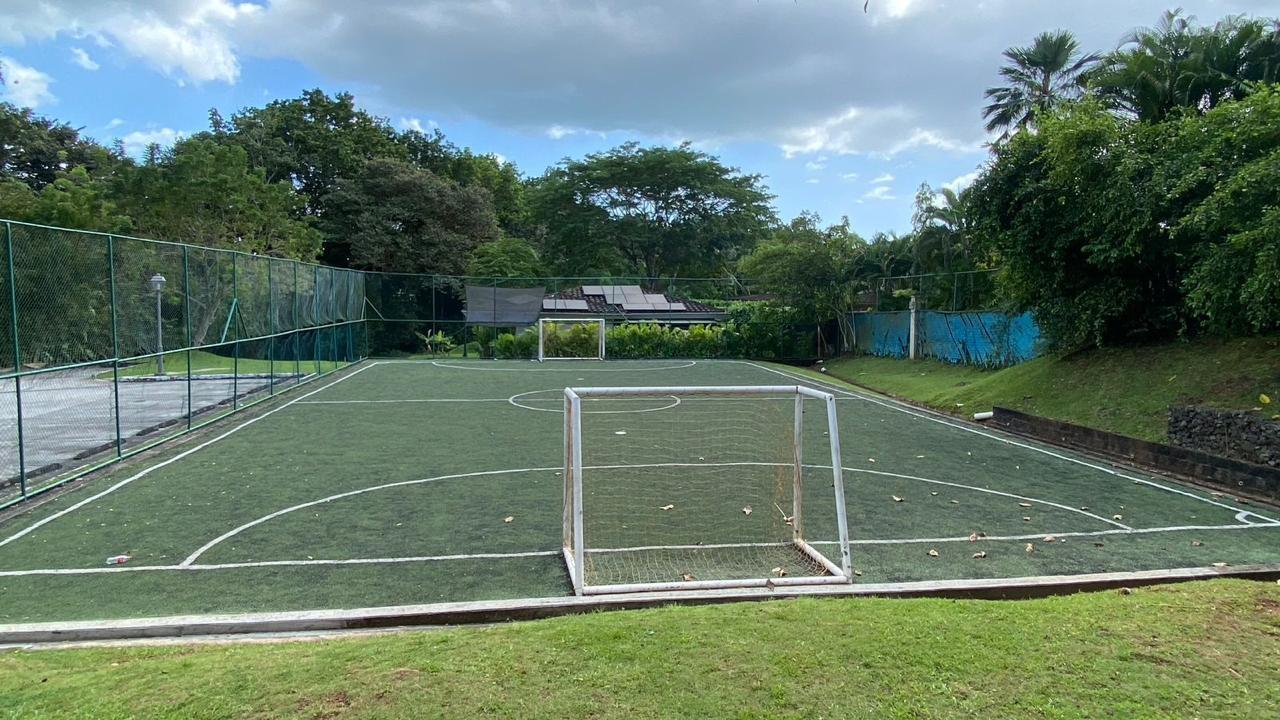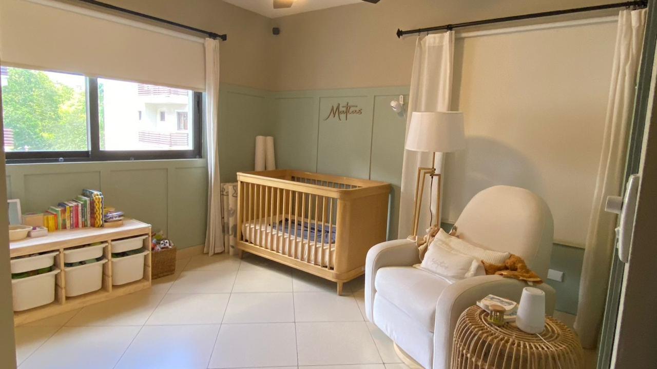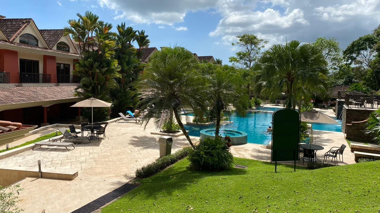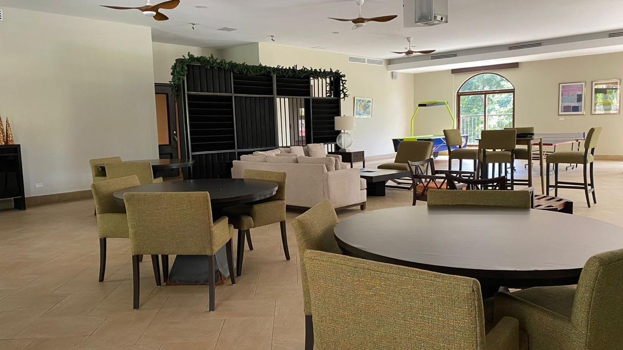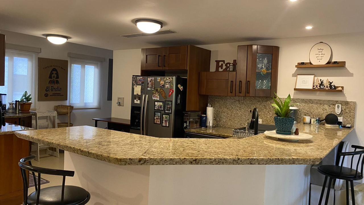 It has 2 bedrooms, 2 bathrooms, a guest half-bath, a maid’s room and bathroom, and 2 parking spaces.