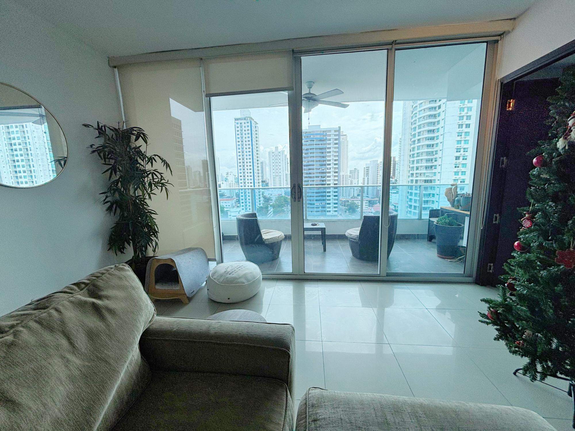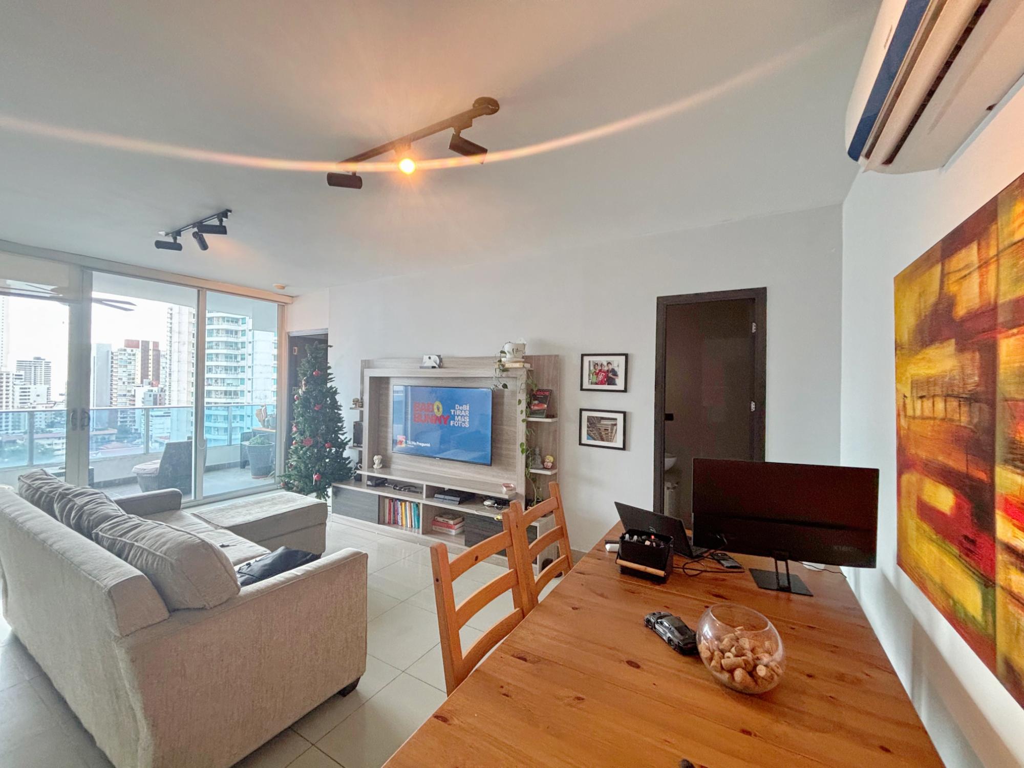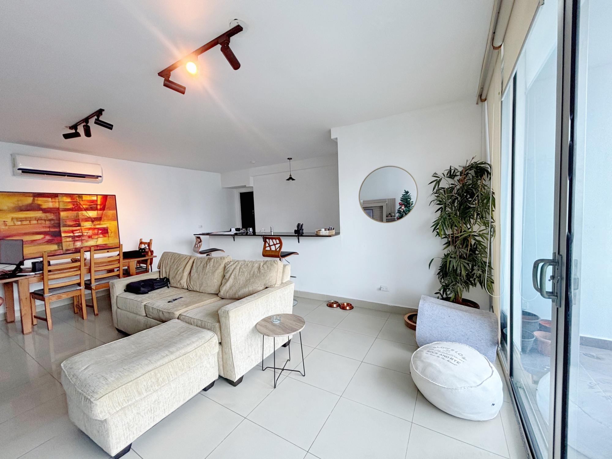 Live comfortably and stylishly in this beautiful 95 m² apartment, ideal for those seeking a well-distributed space with complete social areas and an excellent quality of life. Appliances included: gas stove, water heater, air conditioning, washer and dryer, a spacious bedroom with a walk-in closet, one full bathroom and a half-bath for guests—a perfect layout for everyday living and entertaining. The open kitchen with breakfast bar seamlessly integrates with the living-dining room, connecting to a balcony that provides natural light and ventilation. A perfect investment opportunity, as the apartment is currently rented. And if you’re looking to live here, there’s no problem, as the option to purchase is included in the lease agreement upon the tenant’s departure. Advantages of living in the San Francisco neighborhood: Strategic location in Panama City: close to shopping centers (like Multiplaza), parks, restaurants, supermarkets, banks, schools, and medical centers. Proximity to green spaces, especially the famous Omar Park, ideal for exercise, walks, family gatherings, and outdoor activities. Connectivity and easy access to the city’s main avenues and public transportation allow you to get anywhere faster. Urban living with residential comfort: San Francisco combines an urban atmosphere with residential tranquility, offering better options for living or investing. A wide range of services and entertainment: from cafes and diverse restaurants to gyms, cultural centers, and leisure spaces.