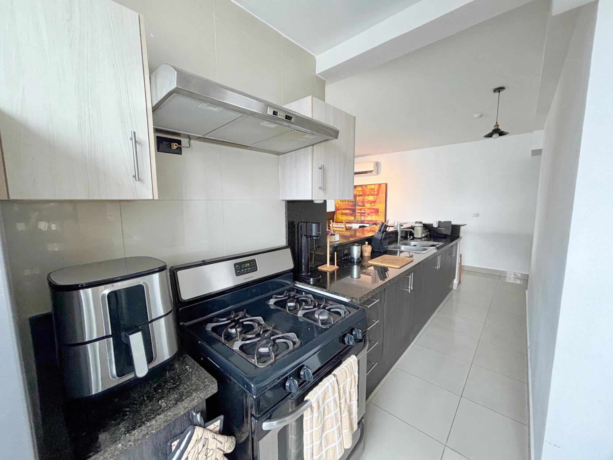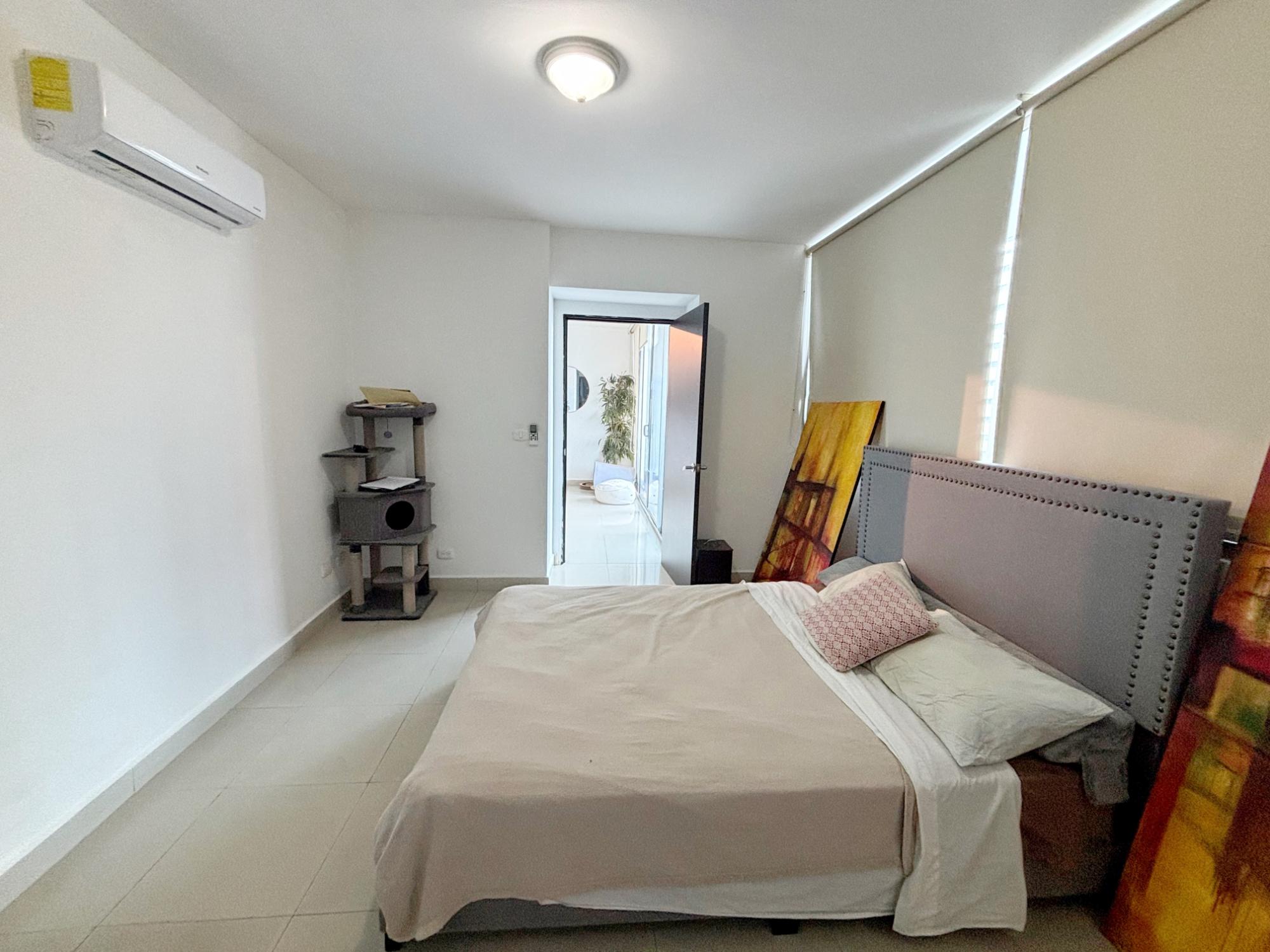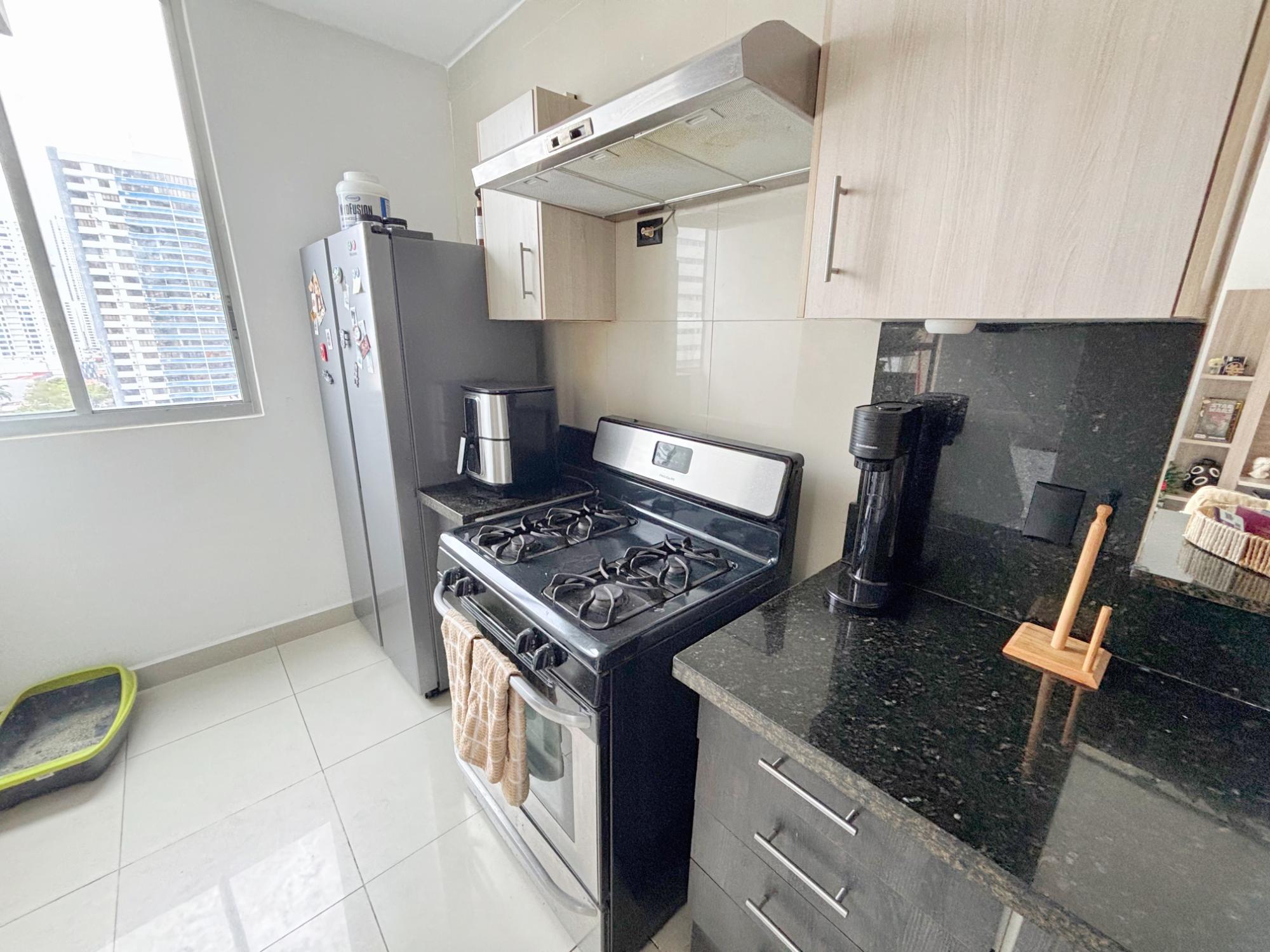 Live comfortably and stylishly in this beautiful 95 m² apartment, ideal for those seeking a well-distributed space with complete social areas and an excellent quality of life. Appliances included: gas stove, water heater, air conditioning, washer and dryer, a spacious bedroom with a walk-in closet, one full bathroom and a half-bath for guests—a perfect layout for everyday living and entertaining. The open kitchen with breakfast bar seamlessly integrates with the living-dining room, connecting to a balcony that provides natural light and ventilation. A perfect investment opportunity, as the apartment is currently rented. And if you’re looking to live here, there’s no problem, as the option to purchase is included in the lease agreement upon the tenant’s departure. Advantages of living in the San Francisco neighborhood: Strategic location in Panama City: close to shopping centers (like Multiplaza), parks, restaurants, supermarkets, banks, schools, and medical centers. Proximity to green spaces, especially the famous Omar Park, ideal for exercise, walks, family gatherings, and outdoor activities. Connectivity and easy access to the city’s main avenues and public transportation allow you to get anywhere faster. Urban living with residential comfort: San Francisco combines an urban atmosphere with residential tranquility, offering better options for living or investing. A wide range of services and entertainment: from cafes and diverse restaurants to gyms, cultural centers, and leisure spaces.