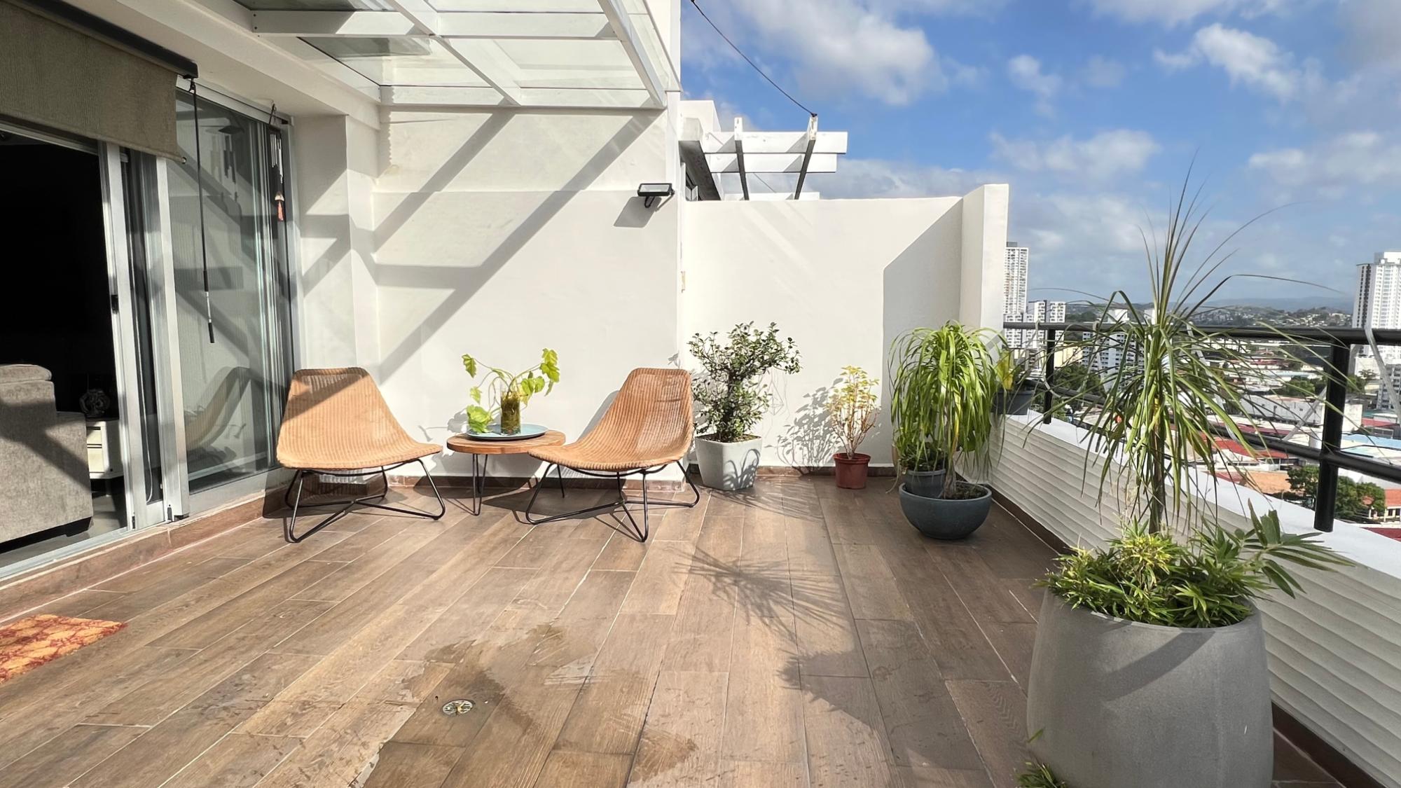 Enjoy the sunrise every day from the terrace of this apartment. Charming 194 m2 apartment available for sale in the prestigious area of San Francisco, Altos del Golf, located in the beautiful city of Panama. This property has 3 spacious and bright bedrooms and 4 full bathrooms, perfectly distributed. Without a doubt, an excellent opportunity to acquire a cozy and comfortable space for you and your family. Altos del Golf In the center of Panama City, is a residential neighborhood considered one of the best areas of Panama, with luxury homes with large gardens and a row of high-end buildings, adjacent to Omar Park. Close to avenues such as Vía Porras, Vía España, Cincuentenario, and with easy access to the Corredor Sur or Puente Centenario to the interior of the country. It belongs to the district of San Francisco, which has restaurants, a mall, supermarkets, banks, schools, etc. Omar Park: A former grassy golf course with scattered trees and shrubs, it boasts 55 hectares of green space The building features: A direct entrance to Omar Park. A swimming pool. A gym. A BBQ area. A children’s play area. A solarium. 24-hour security. Direct exit into Omar Park Water reserve tank Power plant Visitor parking WiFi in social area GROUND FLOOR APARTMENT Living – Dining Room Kitchen with pantry Laundry Den (can be converted into a maid’s quarters) Large Terrace Full Bathroom UPSTAIRS 3 Bedrooms 3 Bathrooms Balcony Storage 2 Ample Parking Spaces Complete Appliances Air Conditioning Curtains Beautiful View of the Park and the Ocean
