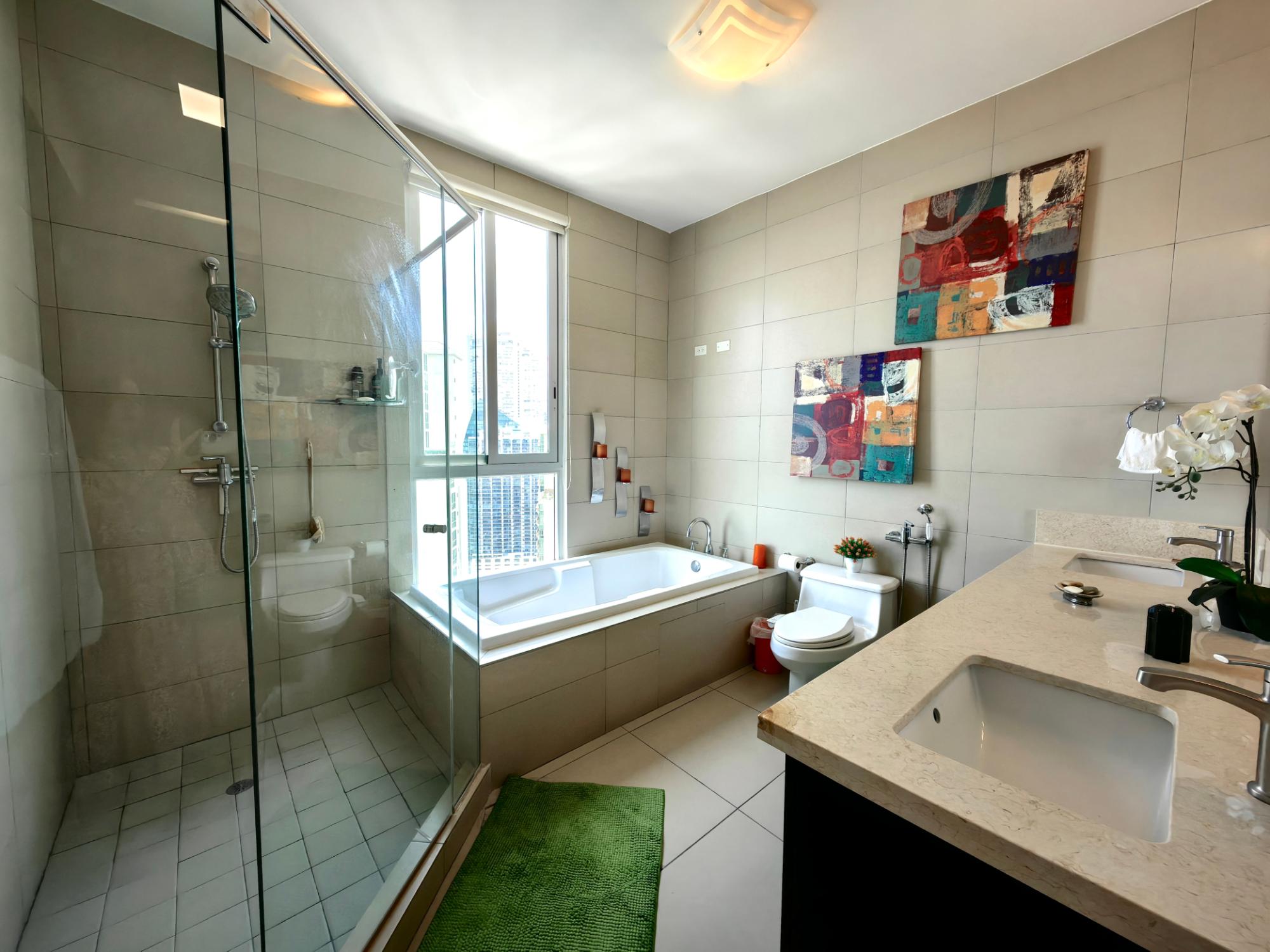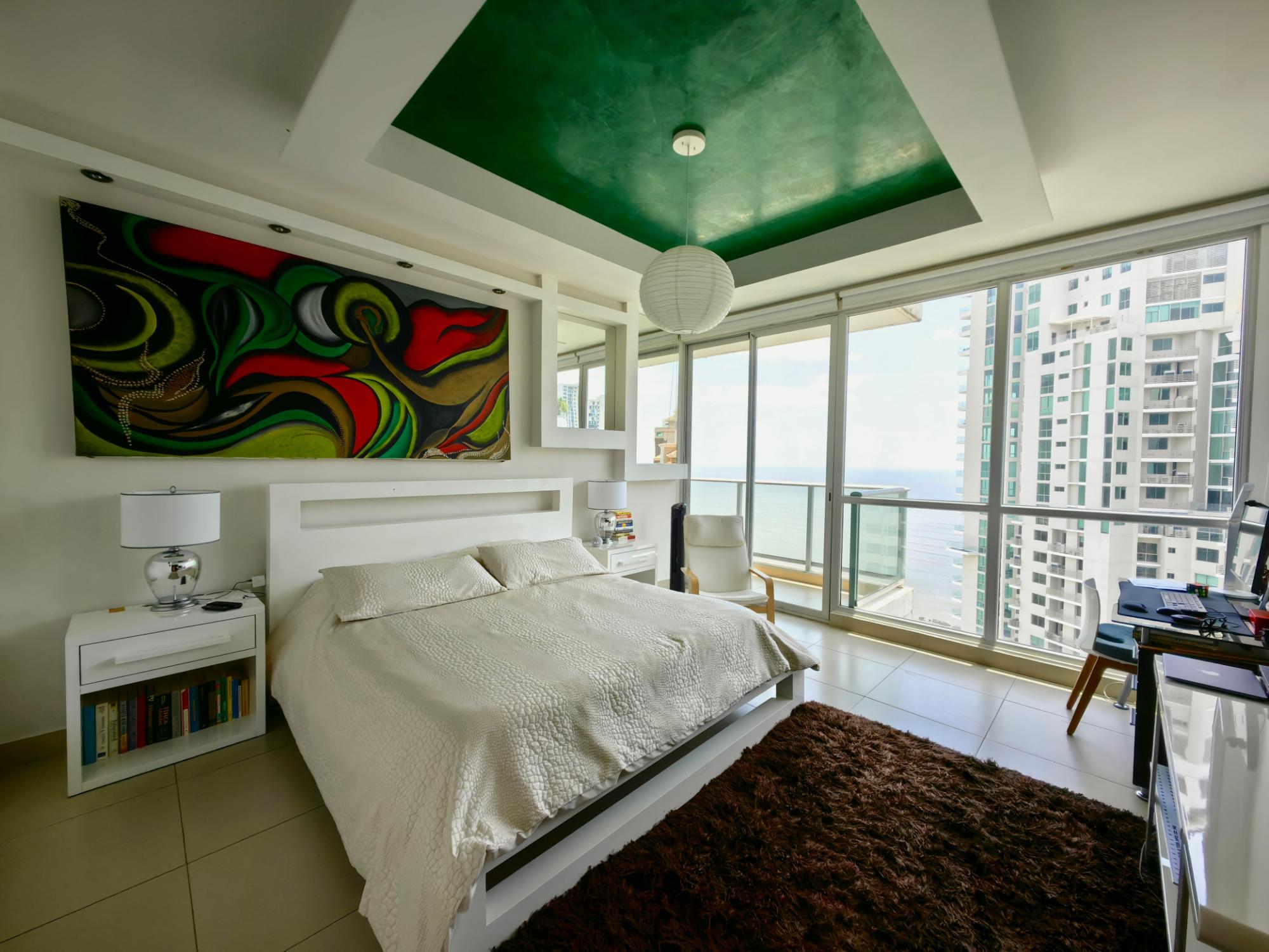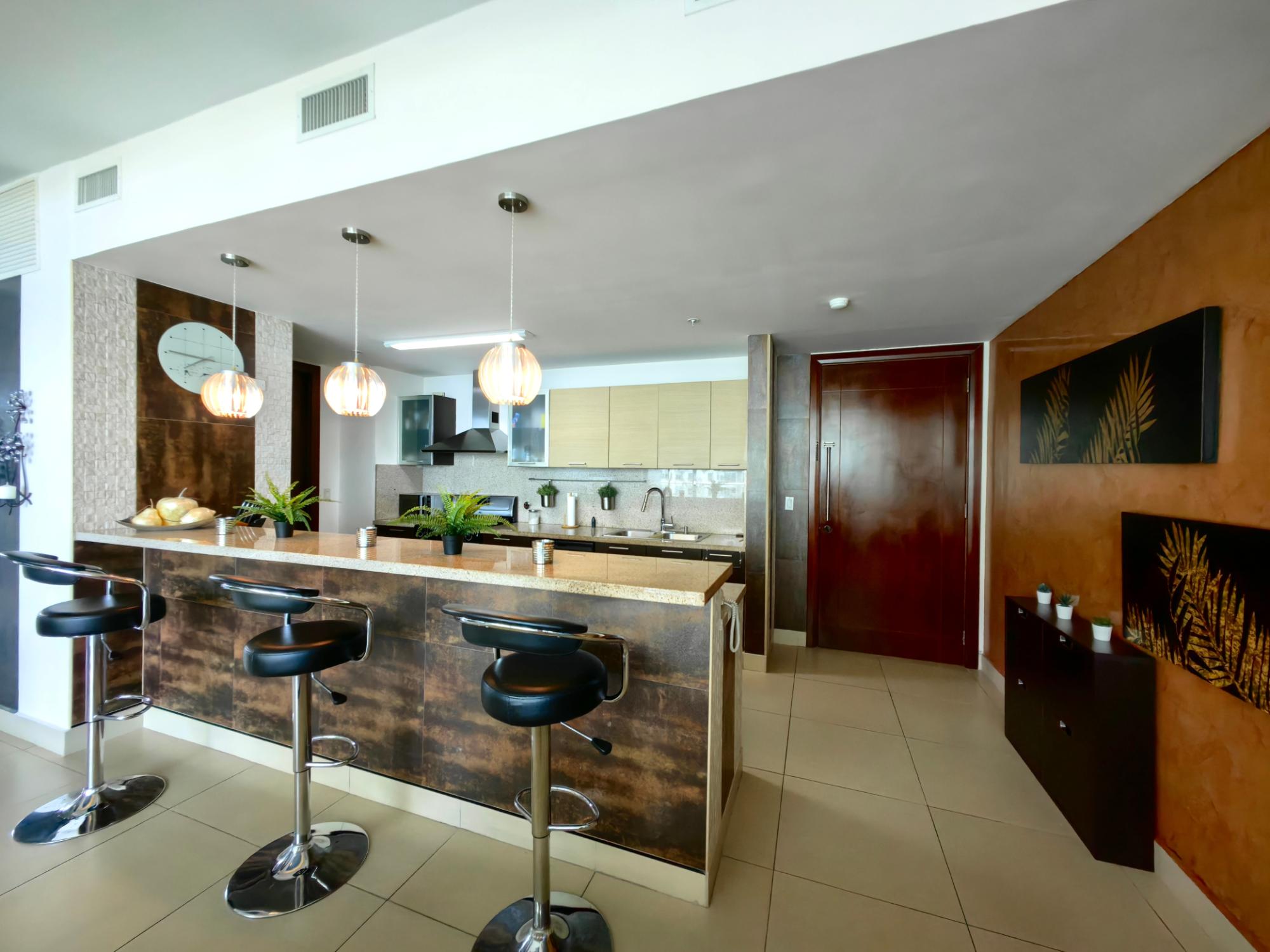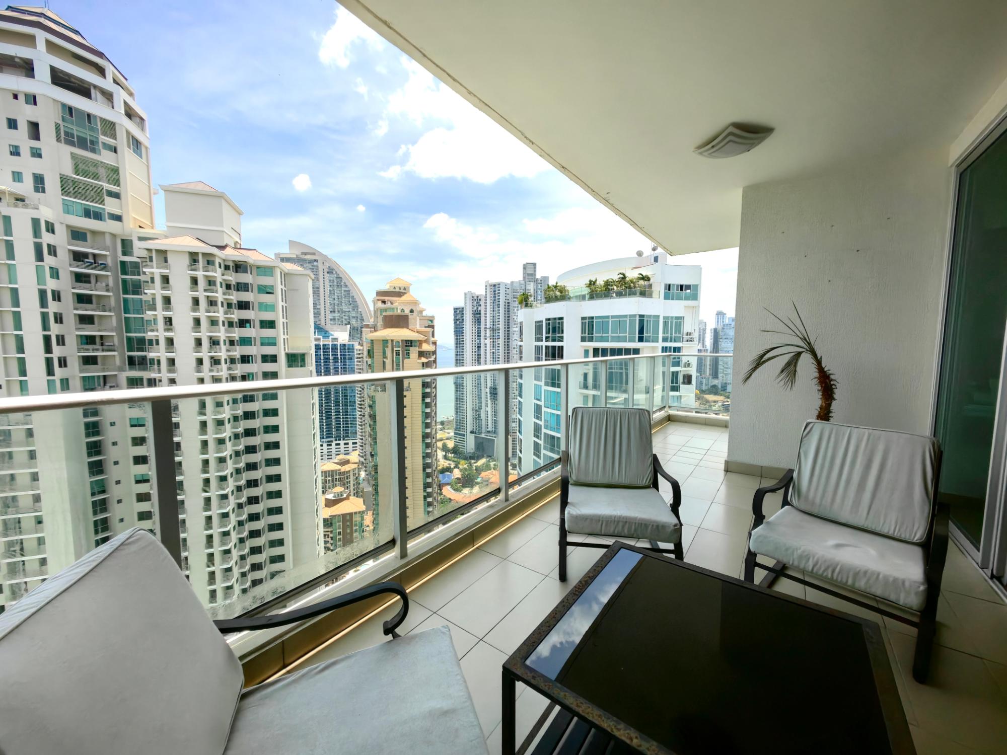 In the heart of one of Panama City’s most exclusive neighborhoods, surrounded by supermarkets, restaurants, top private clinics, and the iconic Multiplaza Mall, stands this impressive building with access via a private street and excellent space distribution. Tucked away behind a private entrance, it offers impeccable and sophisticated design. Upon entering the apartment, you are greeted by breathtaking views of the sea and the urban skyline. This fully move-in ready apartment epitomizes refined living, meticulously furnished, tastefully decorated, and equipped with top-of-the-line appliances and central air conditioning. Your sanctuary includes: Spacious living-dining area Large terrace with direct sea view Fully equipped open kitchen with breakfast bar Two bedrooms: the master with a spacious private bathroom with tub and shower, and the second with a full external bathroom that also serves as a guest bathroom. The building features a complete social area including a pool, gym, party room, children’s play area, and squash court. Soon, both the social area and the spacious lobby will be remodeled with a luxurious, contemporary design. HOA Monthly Fees: US$209.00, Yearly Land Tax: US$1,000.00