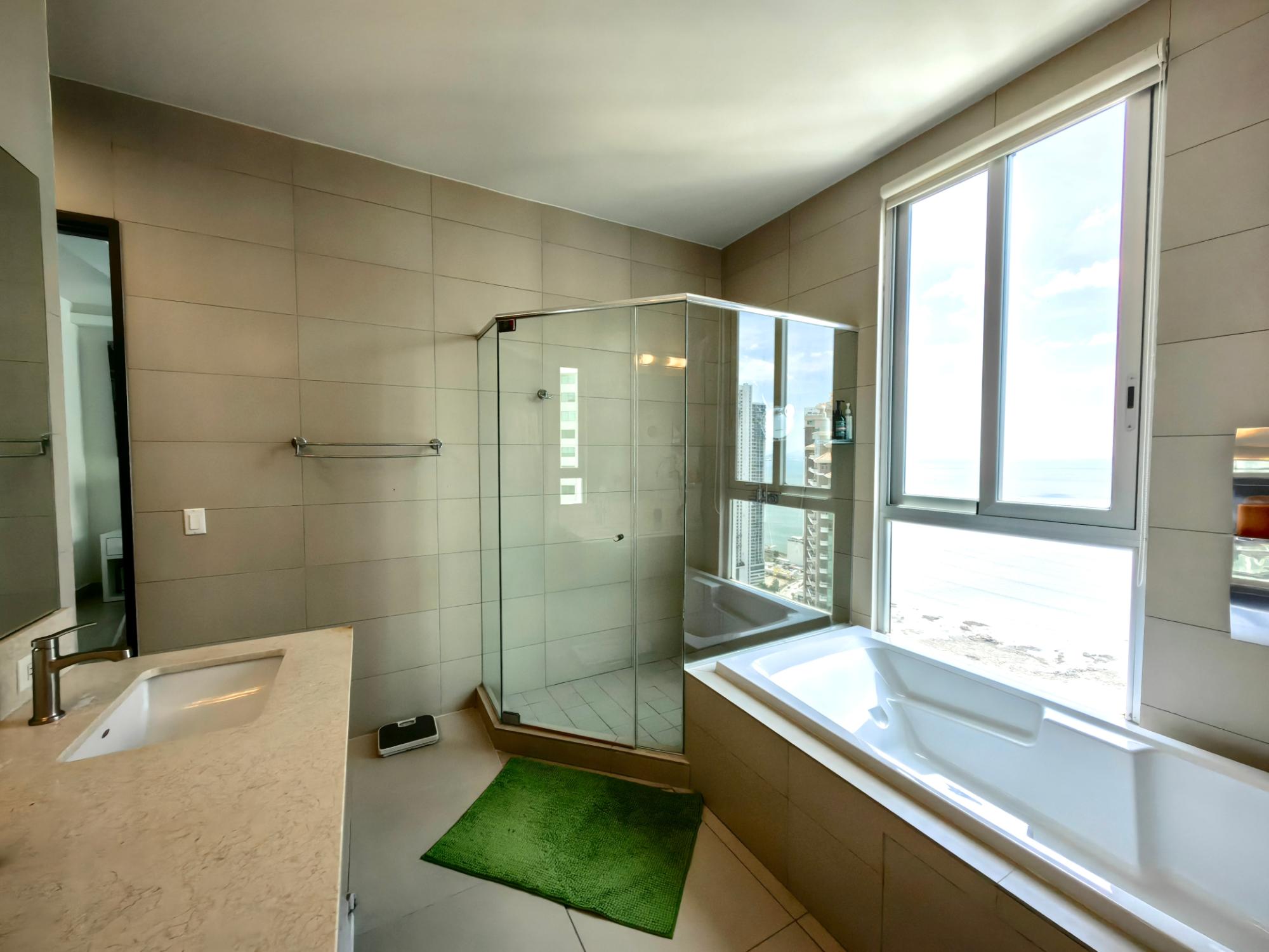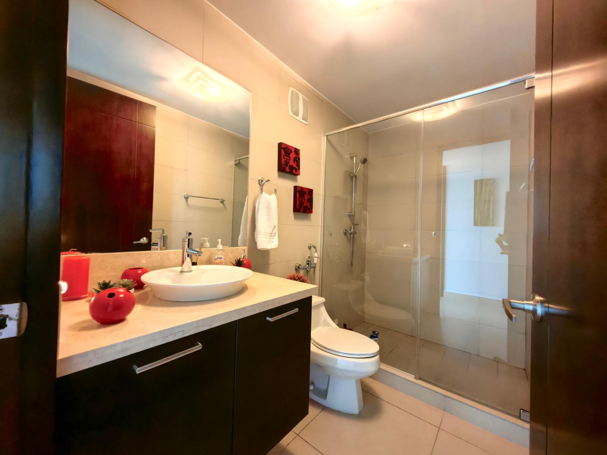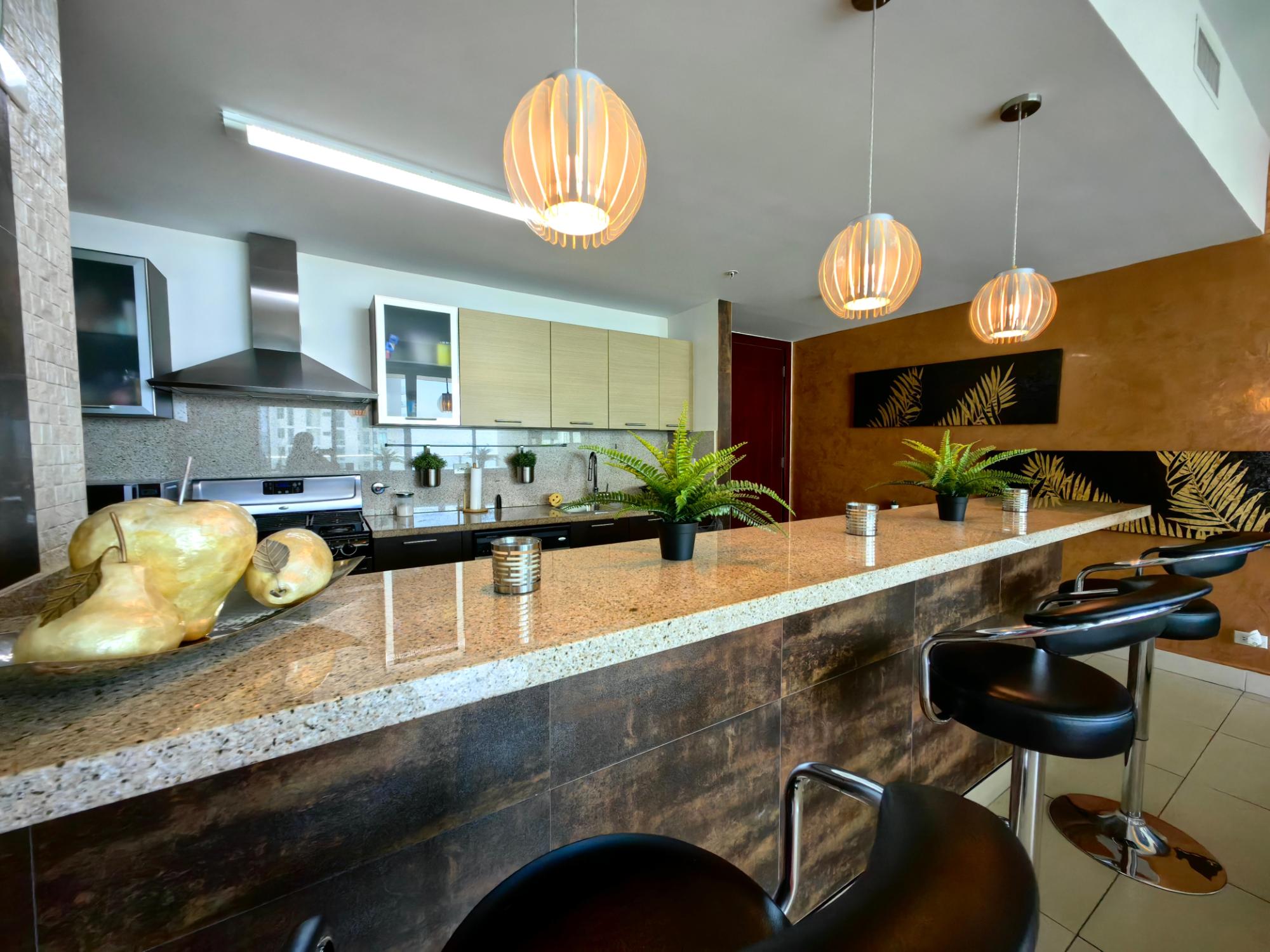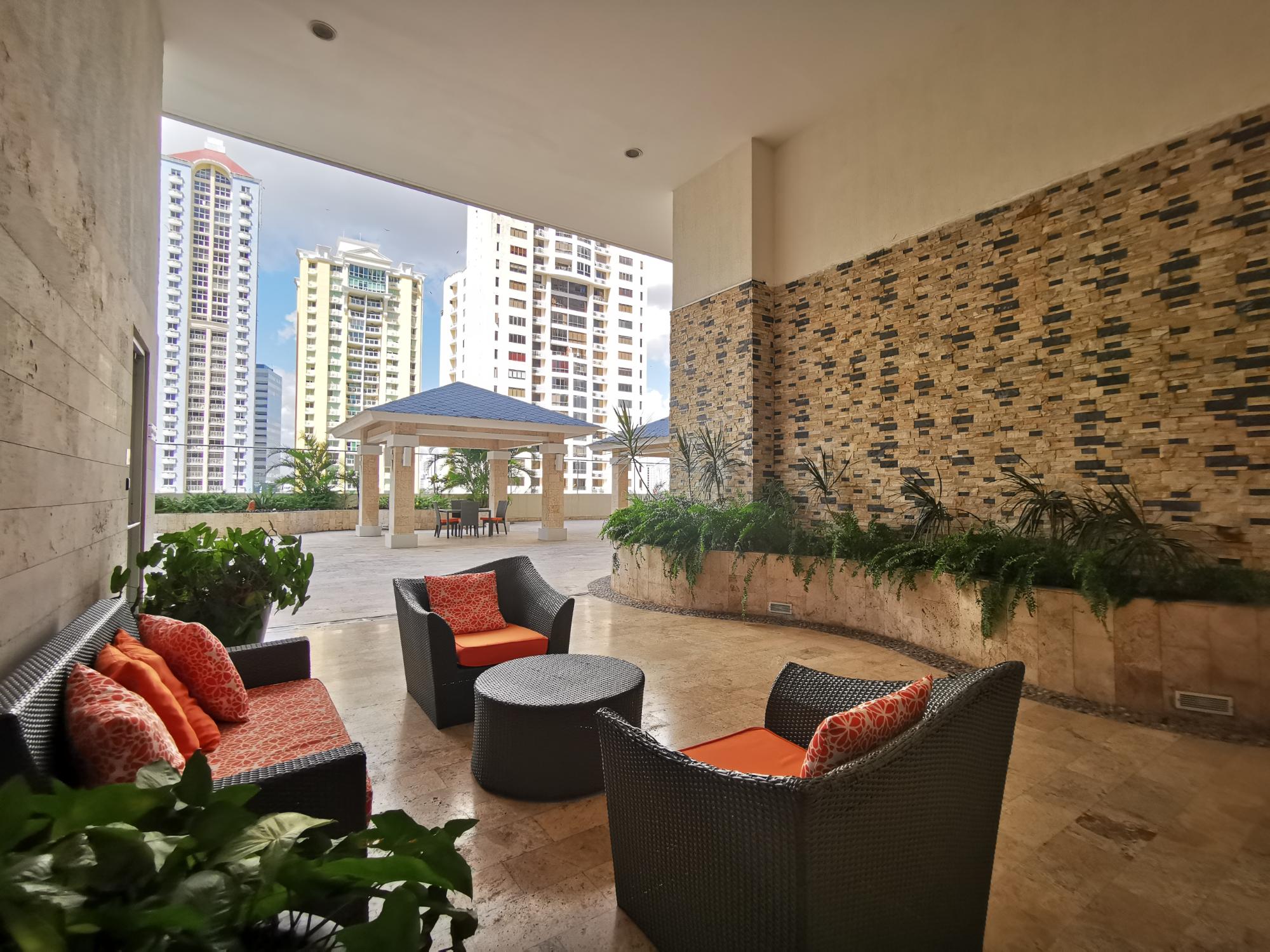 In the heart of one of Panama City’s most exclusive neighborhoods, surrounded by supermarkets, restaurants, top private clinics, and the iconic Multiplaza Mall, stands this impressive building with access via a private street and excellent space distribution. Tucked away behind a private entrance, it offers impeccable and sophisticated design. Upon entering the apartment, you are greeted by breathtaking views of the sea and the urban skyline. This fully move-in ready apartment epitomizes refined living, meticulously furnished, tastefully decorated, and equipped with top-of-the-line appliances and central air conditioning. Your sanctuary includes: Spacious living-dining area Large terrace with direct sea view Fully equipped open kitchen with breakfast bar Two bedrooms: the master with a spacious private bathroom with tub and shower, and the second with a full external bathroom that also serves as a guest bathroom. The building features a complete social area including a pool, gym, party room, children’s play area, and squash court. Soon, both the social area and the spacious lobby will be remodeled with a luxurious, contemporary design. HOA Monthly Fees: US$209.00, Yearly Land Tax: US$1,000.00