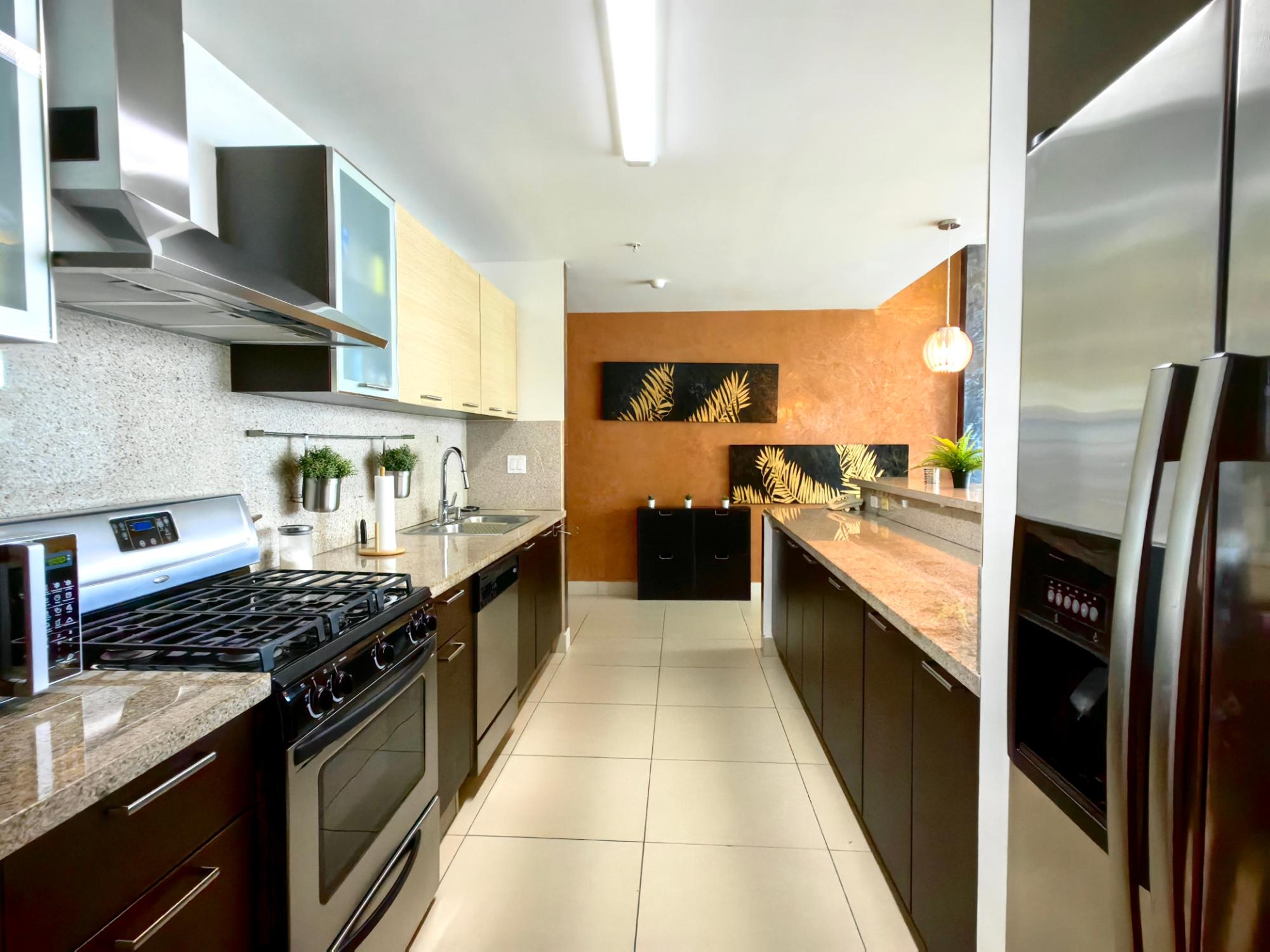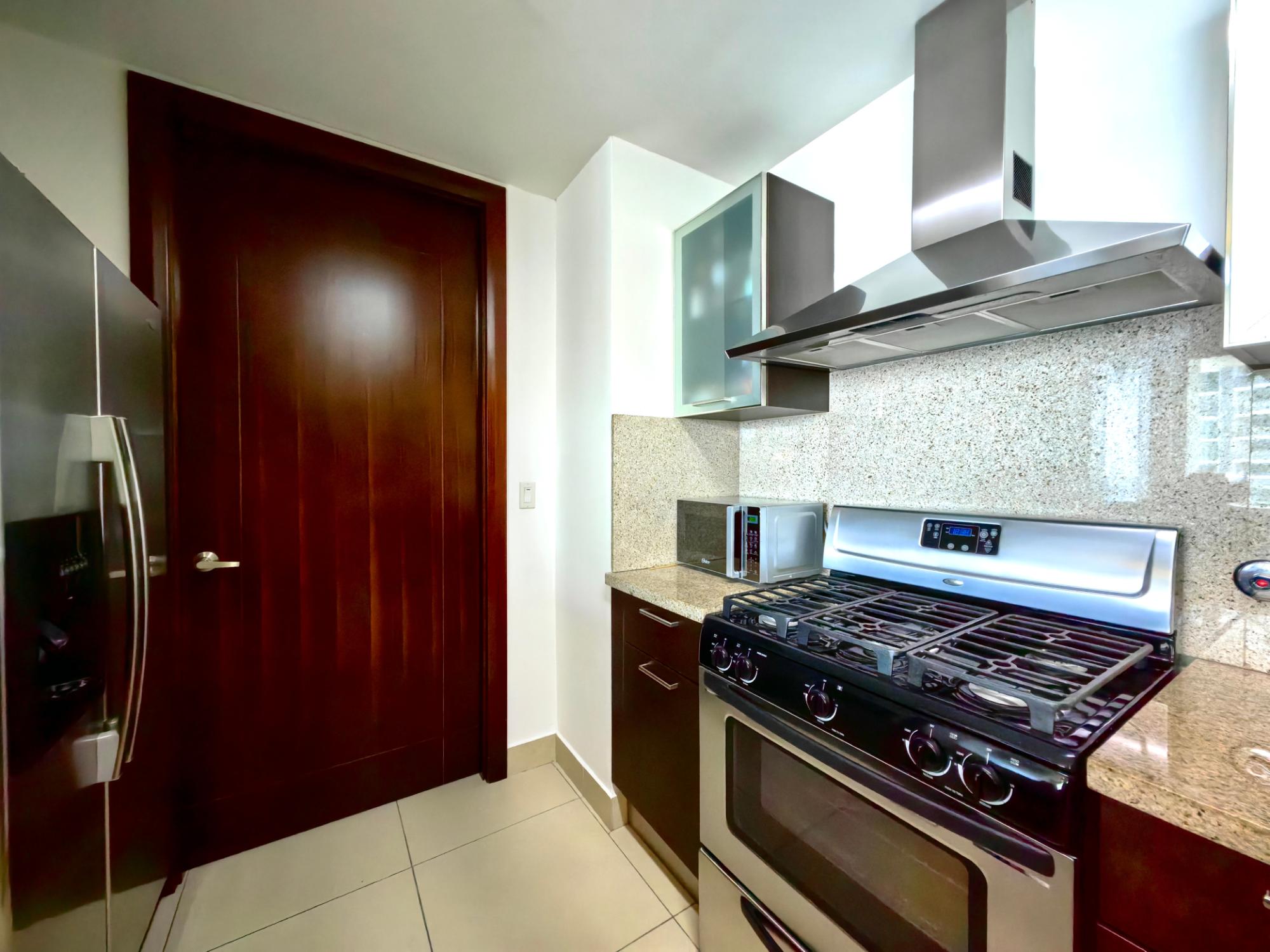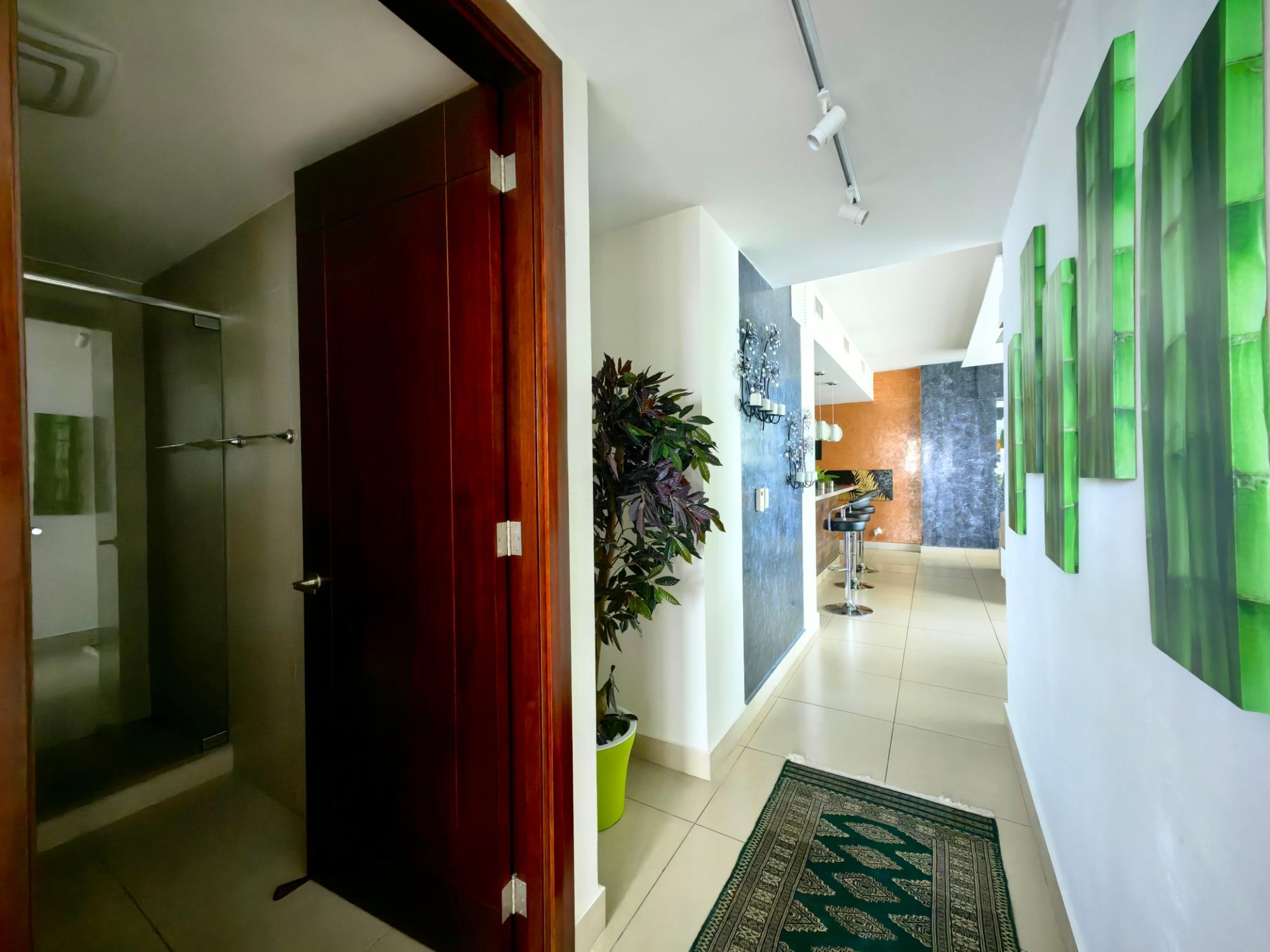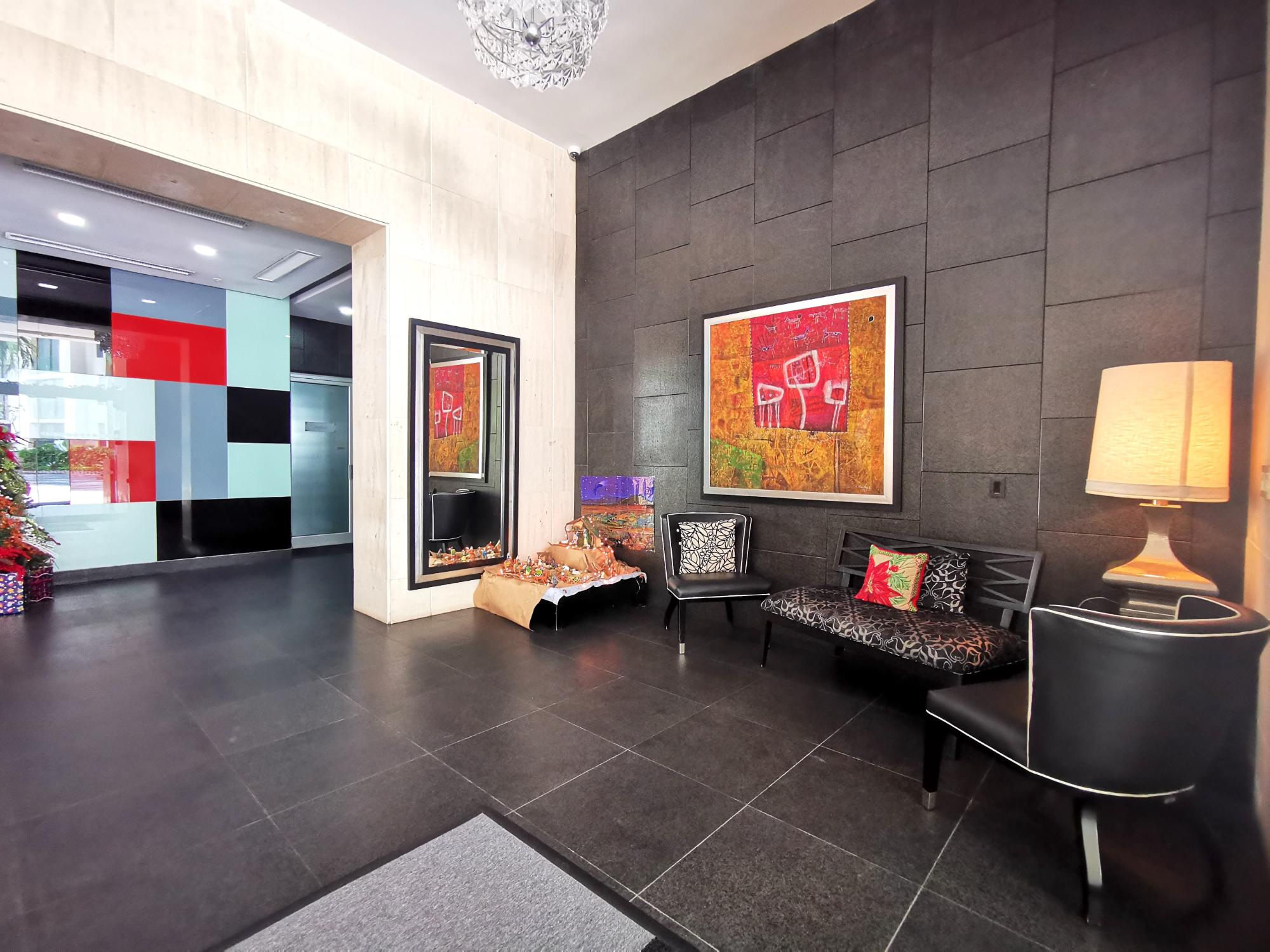 In the heart of one of Panama City’s most exclusive neighborhoods, surrounded by supermarkets, restaurants, top private clinics, and the iconic Multiplaza Mall, stands this impressive building with access via a private street and excellent space distribution. Tucked away behind a private entrance, it offers impeccable and sophisticated design. Upon entering the apartment, you are greeted by breathtaking views of the sea and the urban skyline. This fully move-in ready apartment epitomizes refined living, meticulously furnished, tastefully decorated, and equipped with top-of-the-line appliances and central air conditioning. Your sanctuary includes: Spacious living-dining area Large terrace with direct sea view Fully equipped open kitchen with breakfast bar Two bedrooms: the master with a spacious private bathroom with tub and shower, and the second with a full external bathroom that also serves as a guest bathroom. The building features a complete social area including a pool, gym, party room, children’s play area, and squash court. Soon, both the social area and the spacious lobby will be remodeled with a luxurious, contemporary design. HOA Monthly Fees: US$209.00, Yearly Land Tax: US$1,000.00