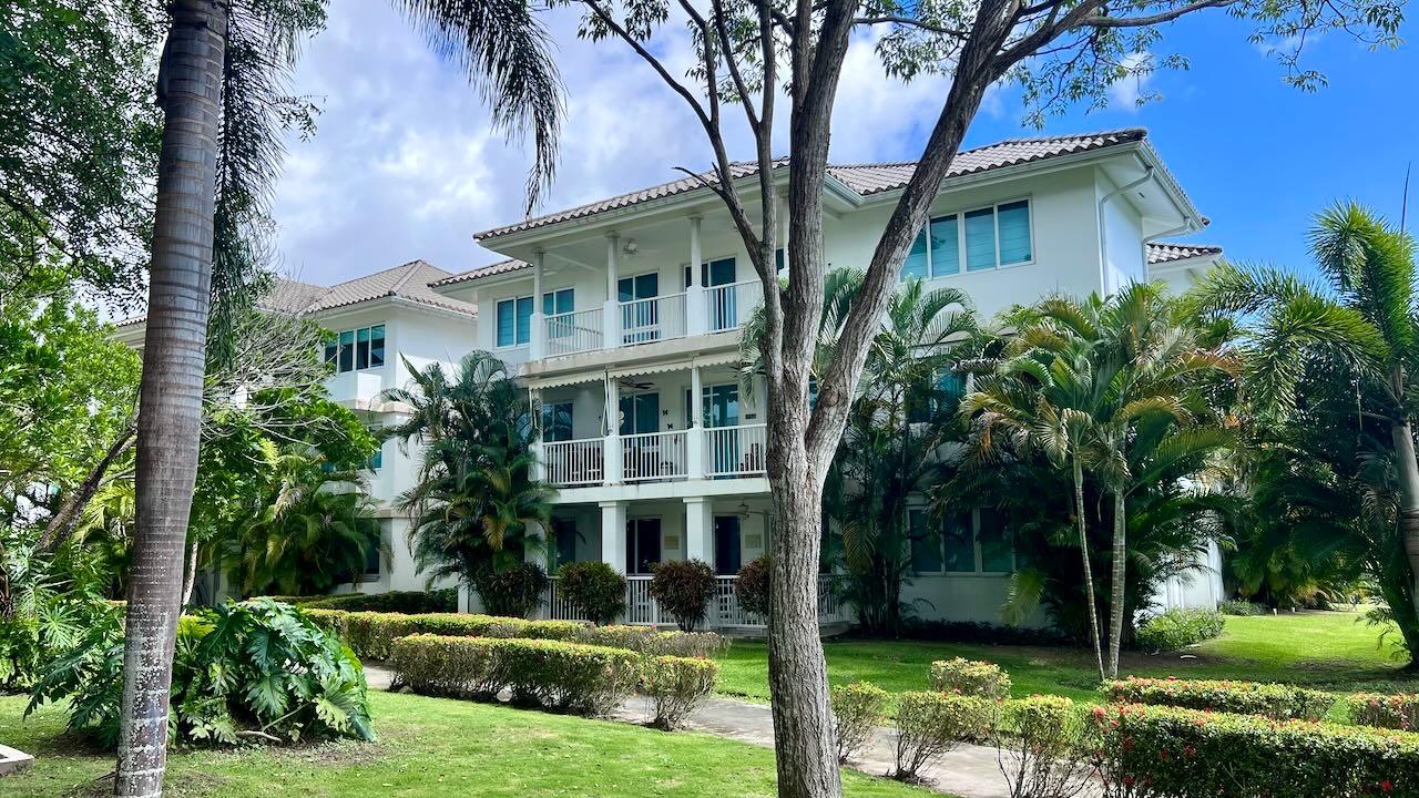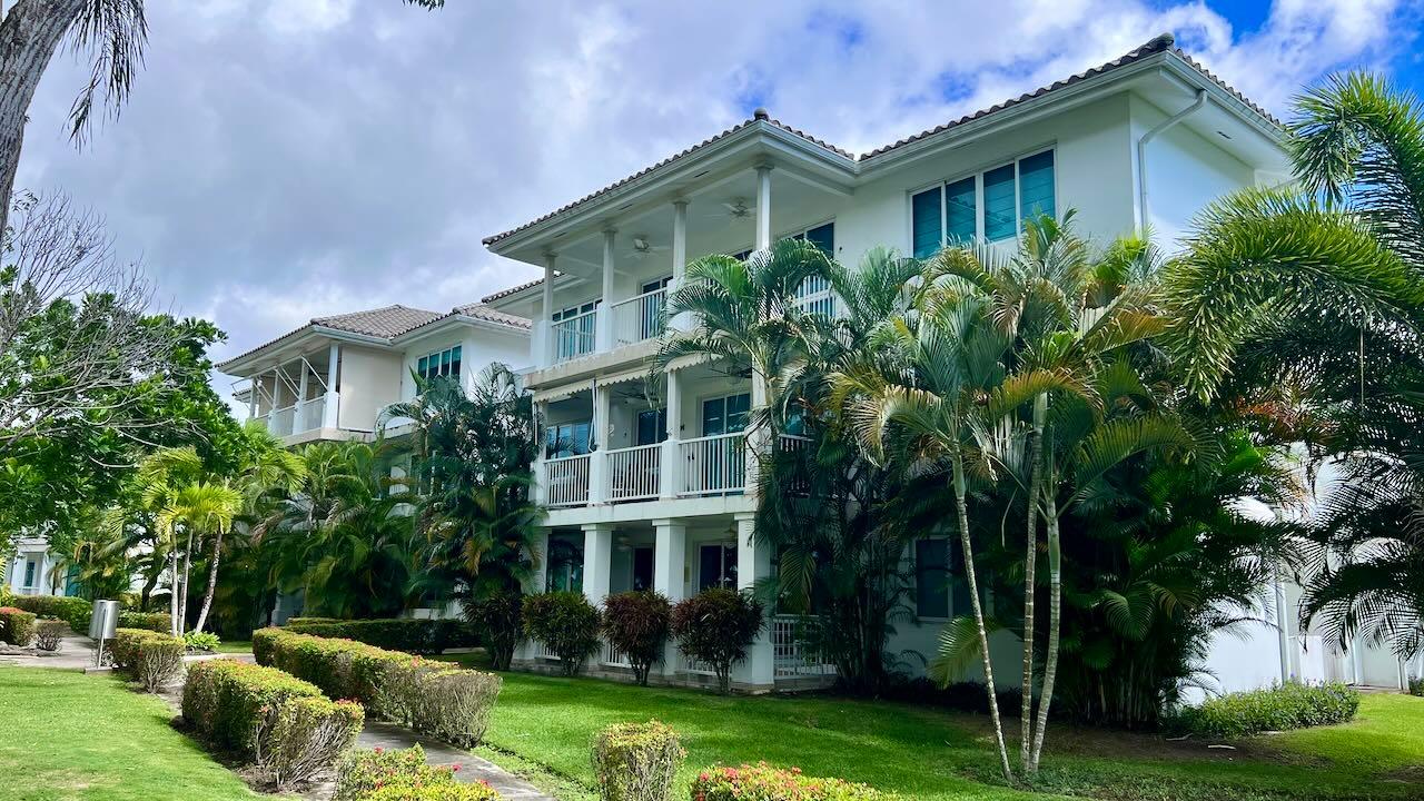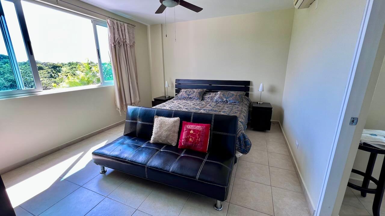 This comfortable apartment is located in the beautiful Gorgas section of the Bijao beach community. This two-bedroom apartment has a large covered terrace with a wonderful view of the golf course. This luxurious resort complex is made up of several luxury sections, each named after those of the turn-of-the-century Panama Canal Zone. The design and layout of the villas and apartments in the various sections are largely inspired by those of the former Panama Canal Zone, albeit modernized and improved. Residents of the Bijao Resort have access to a wide range of amenities, including several restaurants, a beautiful Beach Club, the Bijao Golf Course, a recreation club, a chapel, and an intricate network of trails that interconnects the various neighborhoods. The 294-room Grand Evenia Bijao Hotel is also part of the complex. This spacious apartment consists of 115 m2 of floor space and a balcony/terrace, with an open living-dining room, kitchen, two bedrooms, two bathrooms, and dedicated parking. The apartment comes partially furnished and with a full line of appliances, including a dishwasher, built-in gas stove, oven, refrigerator, microwave, washer and dryer, and split air conditioning units. Ceiling fans are included in the main living area and all other rooms, as well as the terrace and master bedroom. The private terrace offers a very pleasant shaded area; it’s a great place to enjoy the morning sun, the breeze, and the incredible view of the golf course. This apartment is one of the few units available in this luxury section. This beautiful apartment is also available for rent. Contact the agent for more information.
