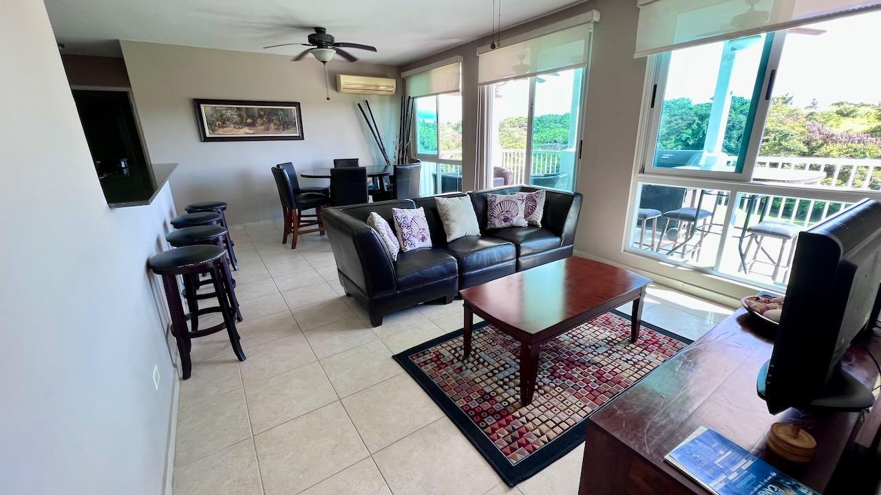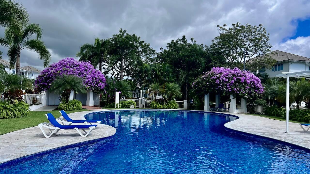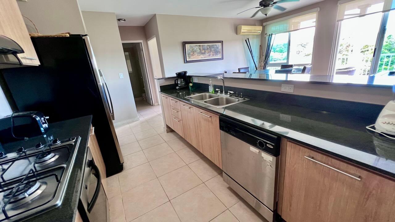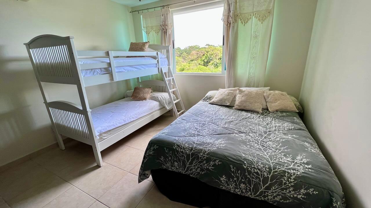 This comfortable apartment is located in the beautiful Gorgas section of the Bijao beach community. This two-bedroom apartment has a large covered terrace with a wonderful view of the golf course. This luxurious resort complex is made up of several luxury sections, each named after those of the turn-of-the-century Panama Canal Zone. The design and layout of the villas and apartments in the various sections are largely inspired by those of the former Panama Canal Zone, albeit modernized and improved. Residents of the Bijao Resort have access to a wide range of amenities, including several restaurants, a beautiful Beach Club, the Bijao Golf Course, a recreation club, a chapel, and an intricate network of trails that interconnects the various neighborhoods. The 294-room Grand Evenia Bijao Hotel is also part of the complex. This spacious apartment consists of 115 m2 of floor space and a balcony/terrace, with an open living-dining room, kitchen, two bedrooms, two bathrooms, and dedicated parking. The apartment comes partially furnished and with a full line of appliances, including a dishwasher, built-in gas stove, oven, refrigerator, microwave, washer and dryer, and split air conditioning units. Ceiling fans are included in the main living area and all other rooms, as well as the terrace and master bedroom. The private terrace offers a very pleasant shaded area; it’s a great place to enjoy the morning sun, the breeze, and the incredible view of the golf course. This apartment is one of the few units available in this luxury section. This beautiful apartment is also available for rent. Contact the agent for more information.