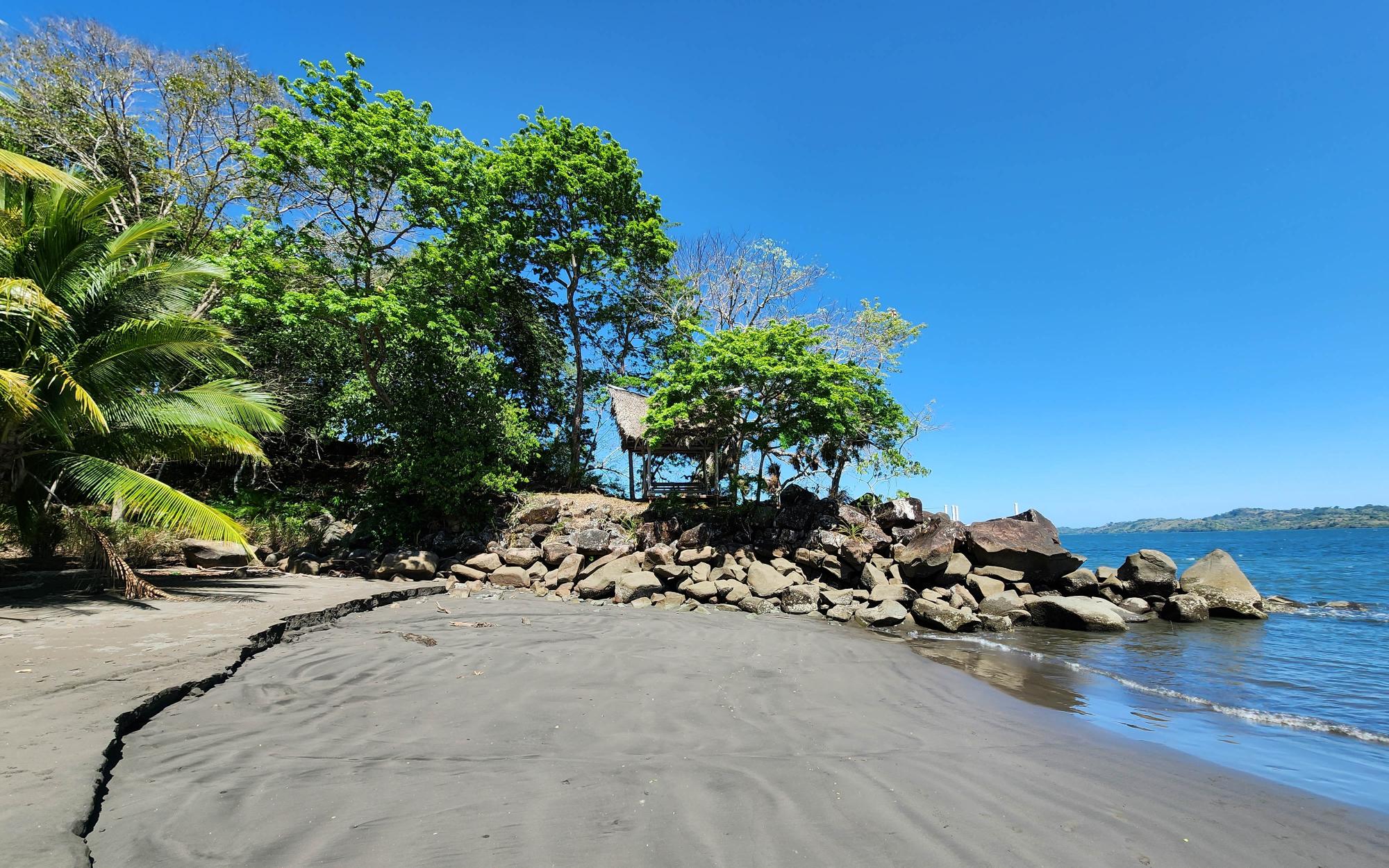 This beach lot is one of only 5 on Isla Muertos which has sandy shores, it is a special one! The 6050 m2 beach property is Right of Possession and is located on the South facing beach of Isla Muertos, (Island of the dead ) it’s still a mystery to us why the island has this name, and an intriguing one at that! Maybe because the island is just sooo relaxing? The property slopes up from the beach, and within its boundaries are lots of fruiting trees, mixed in with the natural jungle. The property is a fresh slate for you to carve out your Tropical escape, and leave the rest to nature! The Beach Lot on Isla Muertos is an easy investment for a number of reasons. First, the fact that the property is currently ROP means that you don’t have to pay property taxes! (but a Title could certainly be applied for). Secondly, though the island feels extremely remote it is only 10 minutes by boat from the nearest mainland port of Chorcha, and from there half an hour to David which is the capital of the Chiriqui Province, add an extra 10 minutes of travel to access the Enrique Malek International Airport. The third reason this pretty beach lot is an easy investment is that the island has a full time caretaker who lives at the end of the beach, and who will provide transport from the mainland to your future cabin, if you don’t want to invest in a boat.