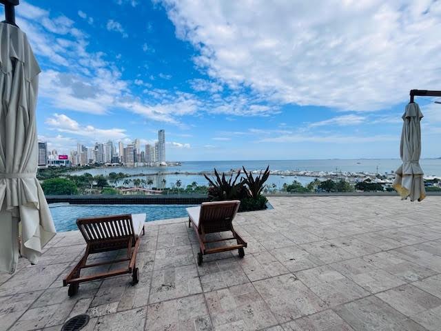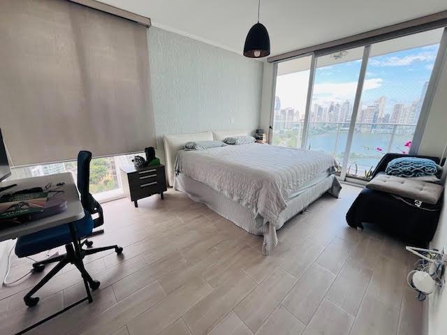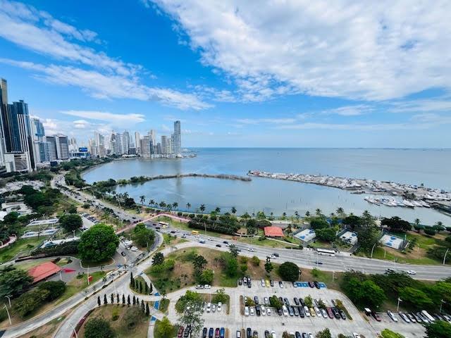 Beautifully furnished apartment for rent facing the bay. The 169 sqm (1,600 sq ft) apartment has 3 bedrooms, 3 bathrooms, a living-dining room, a kitchen with a dishwasher, a laundry area, a balcony, 2 parking spaces, and a storage unit. The building offers security, a concierge, and a complete social area with a swimming pool, jacuzzi, party room, children’s playroom, tennis court, and multi-purpose court. The building is located near Urraca Park and is close to banks, pharmacies, and supermarkets. Showings are available Monday, Wednesday, and Friday mornings; Thursday afternoons; and Saturdays. All visits must be scheduled in advance. Visit without obligation.