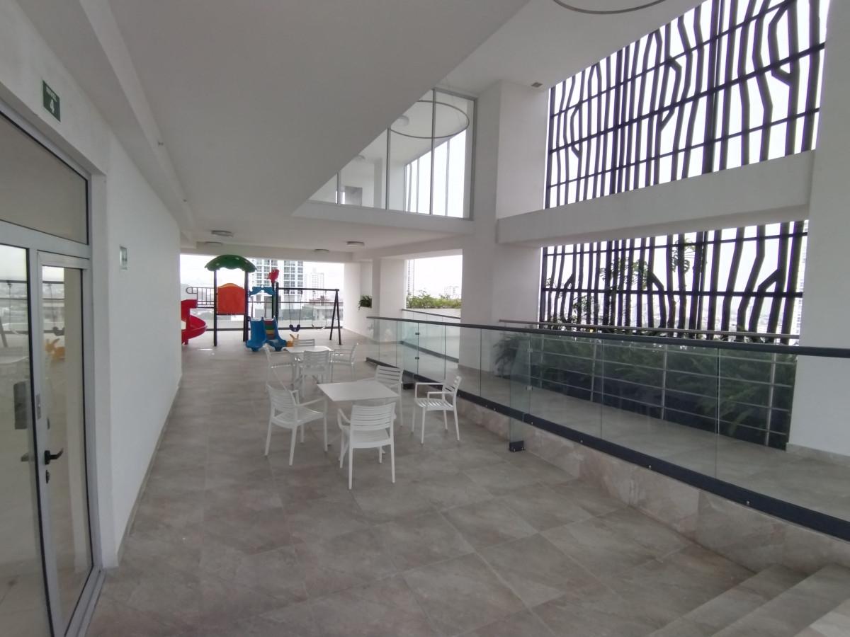 New apartment located at the highest point of Hato Pintado in the city center on a cul-de-sac, a few meters from 12 de Octubre Avenue, the Metro station, and numerous businesses such as Arrocha, Smart Fit, El Rey Supermarket, and Do It Center. The project features visitor parking, a luxurious lobby, a gym, a party room, a children’s play area, a pet park, and a beautiful pool with city views. The apartment features an open kitchen, living/dining room, laundry room, two bedrooms, two full bathrooms, light fixtures, roller shades, appliances, Panasonic inverter air conditioners, and a parking space on level S2. It is ready for immediate occupancy with its electricity installed.