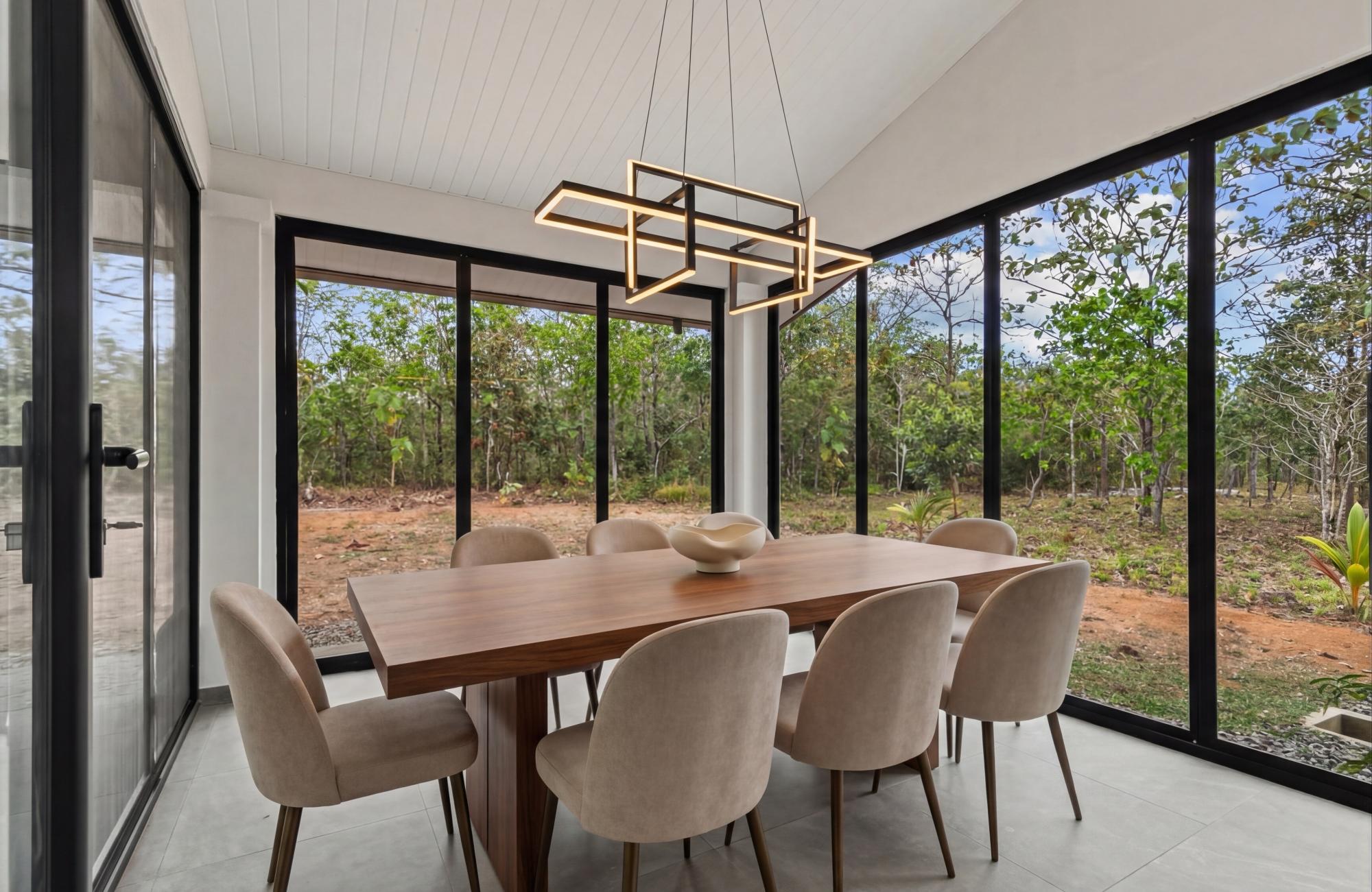 This exquisitely designed and newly constructed villa is located within Istana/Rincon Beach Estates—widely regarded as the jewel of Boca Chica. Offering a luxurious yet tranquil lifestyle, the home overlooks the Gulf of Chiriquí, its pristine islands, and an expansive sandy beach where dolphins are known to play. Thoughtfully designed to embrace its natural surroundings, the villa maximizes natural light, cooling ocean breezes, and the soothing sounds of lapping waves, birdsong, and monkey calls. The result is an inviting, peaceful atmosphere that blends seamlessly with the beauty of the beach and nearby islands. The spacious open-concept living, dining, and kitchen areas feature high ceilings and generous windows, creating a bright, airy space where every day feels like you’re living your best life. The home offers approximately 1,750 sq ft of interior space, with three bedrooms and two bathrooms, perfectly sized for comfort and ease. Expansive terraces enhance the indoor-outdoor lifestyle, including a screen-enclosed area ideal for dining or lounging year-round. Whether relaxing quietly or entertaining friends, this home is designed for it all. A covered two-vehicle garage adds practicality and convenience. All of this is set within a friendly, gated community offering both sporting and social activities. Nature trails begin right at your back door, and residents enjoy amenities such as pickleball and disc golf, plus a charming boutique hotel—perfect for evenings when you don’t feel like cooking. ****This property has been virtually staged. It is being sold unfurnished.****