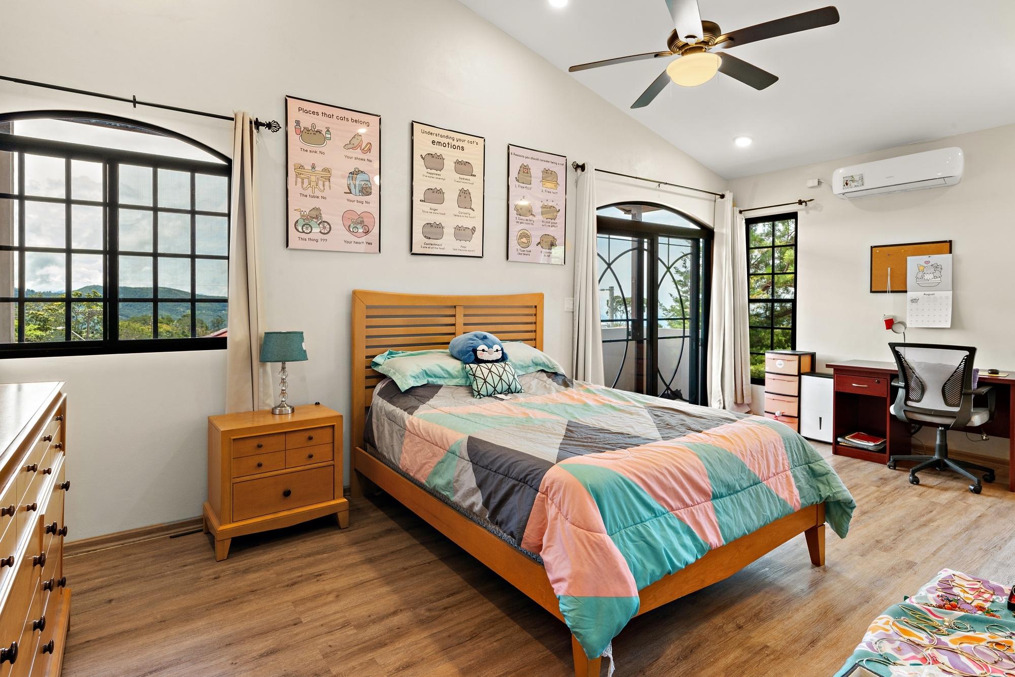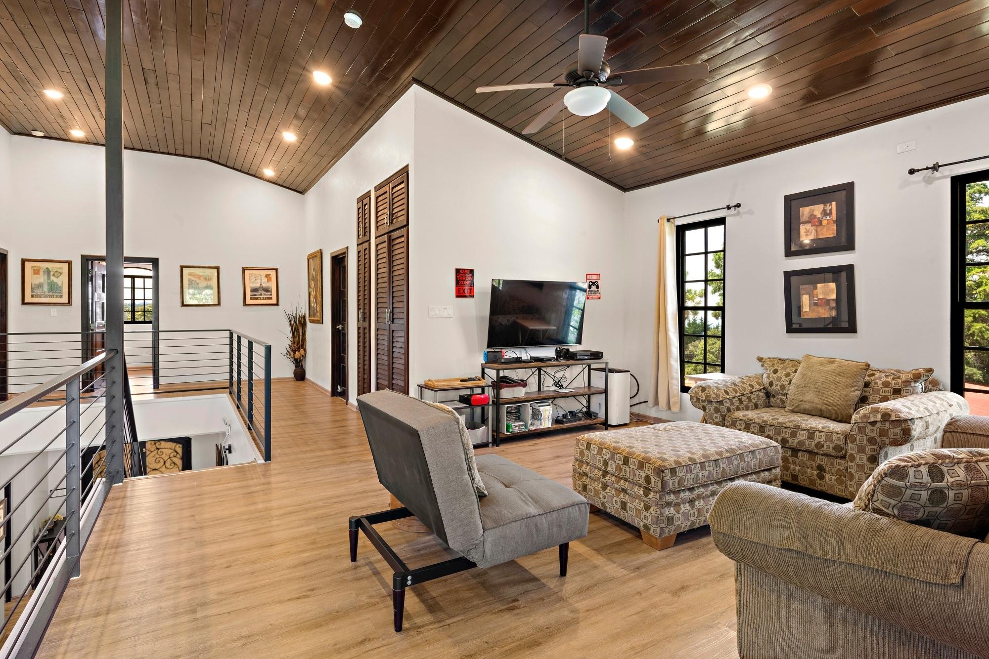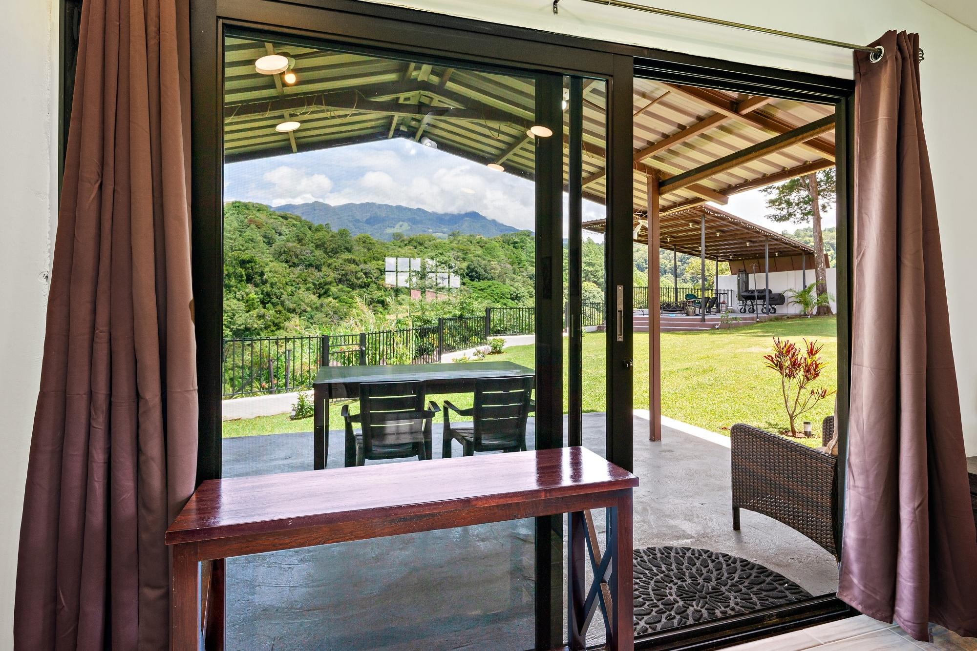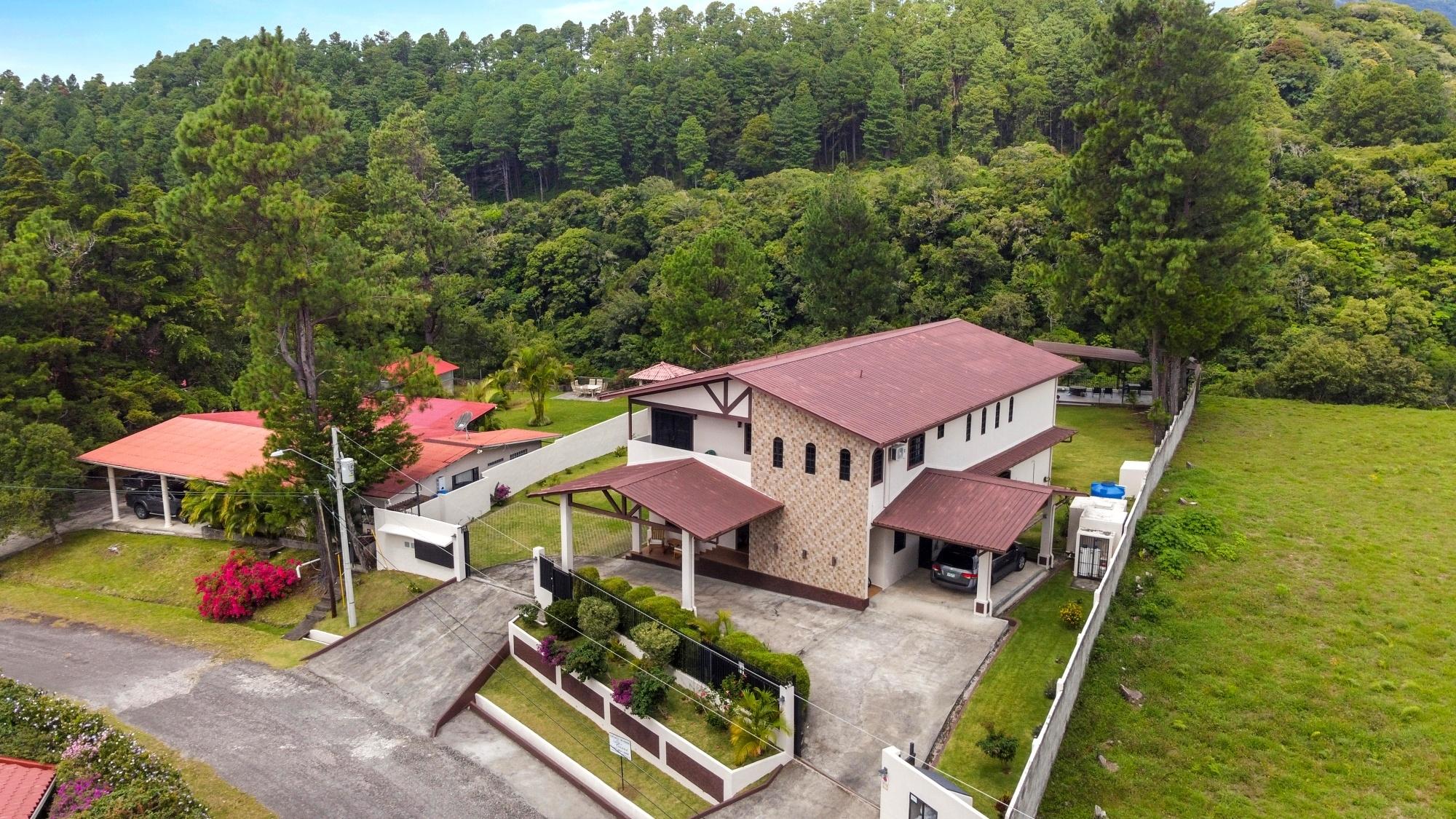 Property Measurements Main House: 4,184 sq ft / 388.71 m² Casita: 494 sq ft / 45.89 m² Storage Container: 40 ft Welcome to this move-in ready residence, perfectly blending luxury, comfort, and natural beauty in a private setting. With breathtaking canyon and Volcán Barú views, exceptional finishes, and fully furnished interiors, this turnkey property is a must-see. Main House 4 bedrooms, 4 bathrooms Master suite with ensuite, walk-in closet, and patio access Downstairs guest bedroom/office with full bath and tub Open-plan kitchen with solid wood cabinets, granite counters, and top appliances Upstairs lounge, balcony, and 2 bedrooms with ensuites and shared balcony Soaring ceilings, abundant natural light, and built-in storage throughout Outdoor Living & Extras Casita with full kitchen and bath — ideal for guests or rental income 40-ft storage container with lighting and outlets Expansive terrace with gas fireplace and BBQ area overlooking the canyon Electric gates, undercover parking, and access to scenic walking trails Construction & Systems Built in 2023 with premium materials Water system: 686-gal primary + 1,650-gal secondary tanks with reverse osmosis filtration 40-gal gas water heater + on-demand backup (pre-wired for electric options) This home offers refined living, modern systems, and unmatched views. Schedule your private tour today!
