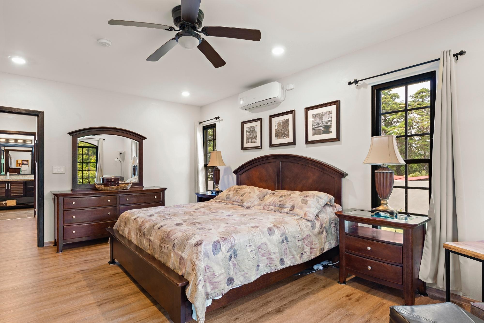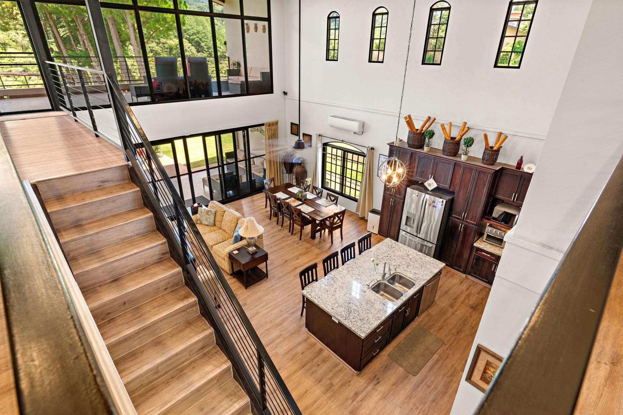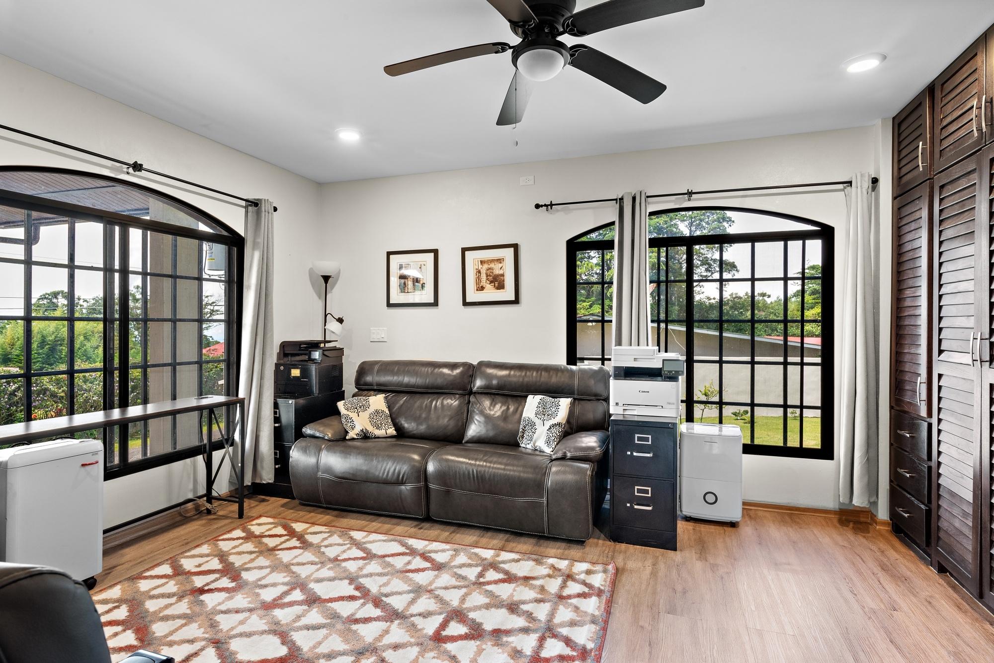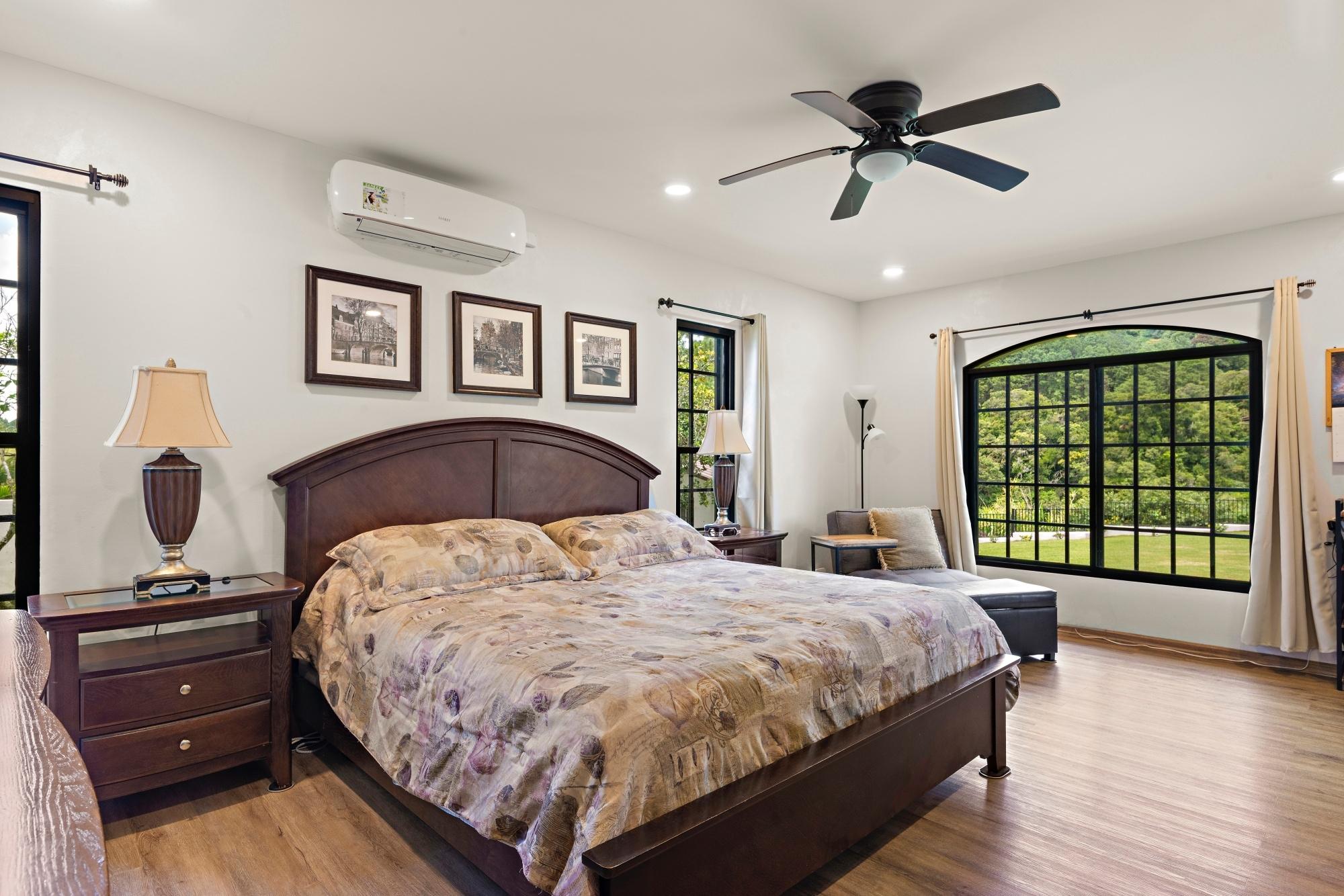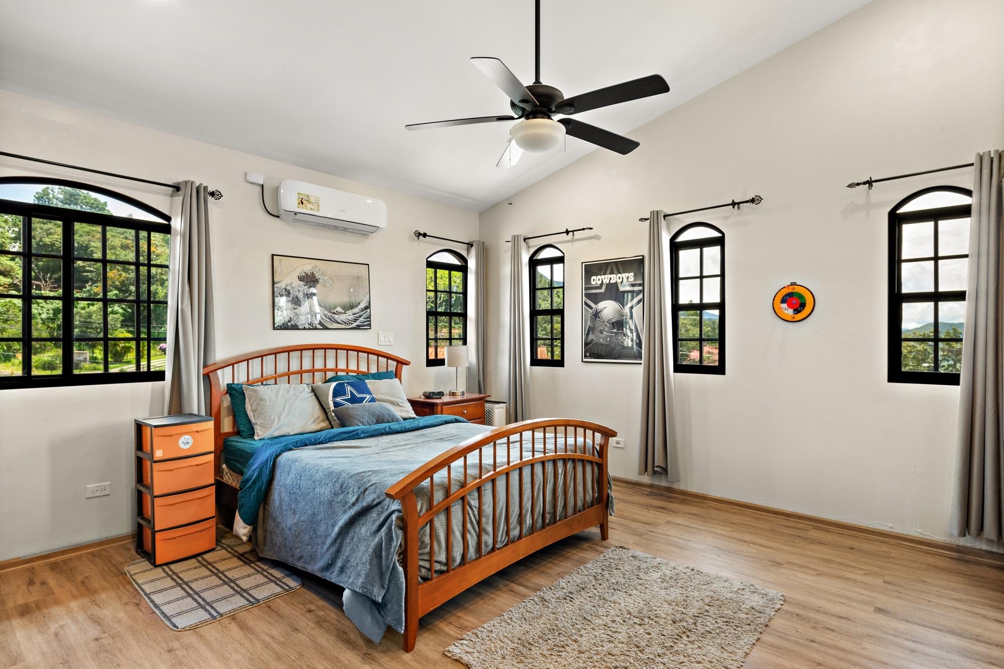 Property Measurements Main House: 4,184 sq ft / 388.71 m² Casita: 494 sq ft / 45.89 m² Storage Container: 40 ft Welcome to this move-in ready residence, perfectly blending luxury, comfort, and natural beauty in a private setting. With breathtaking canyon and Volcán Barú views, exceptional finishes, and fully furnished interiors, this turnkey property is a must-see. Main House 4 bedrooms, 4 bathrooms Master suite with ensuite, walk-in closet, and patio access Downstairs guest bedroom/office with full bath and tub Open-plan kitchen with solid wood cabinets, granite counters, and top appliances Upstairs lounge, balcony, and 2 bedrooms with ensuites and shared balcony Soaring ceilings, abundant natural light, and built-in storage throughout Outdoor Living & Extras Casita with full kitchen and bath — ideal for guests or rental income 40-ft storage container with lighting and outlets Expansive terrace with gas fireplace and BBQ area overlooking the canyon Electric gates, undercover parking, and access to scenic walking trails Construction & Systems Built in 2023 with premium materials Water system: 686-gal primary + 1,650-gal secondary tanks with reverse osmosis filtration 40-gal gas water heater + on-demand backup (pre-wired for electric options) This home offers refined living, modern systems, and unmatched views. Schedule your private tour today!