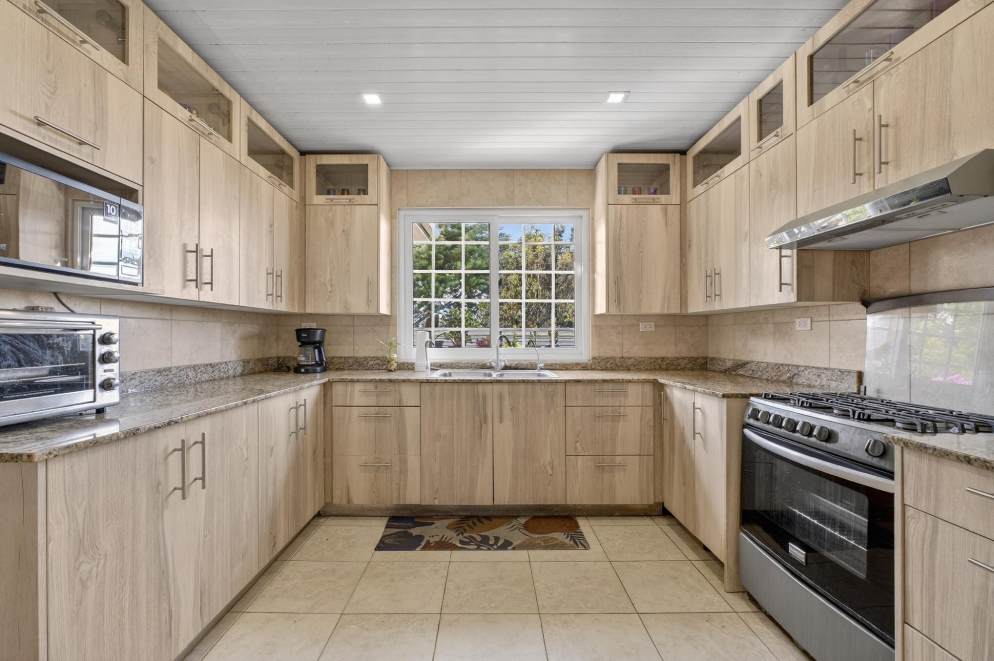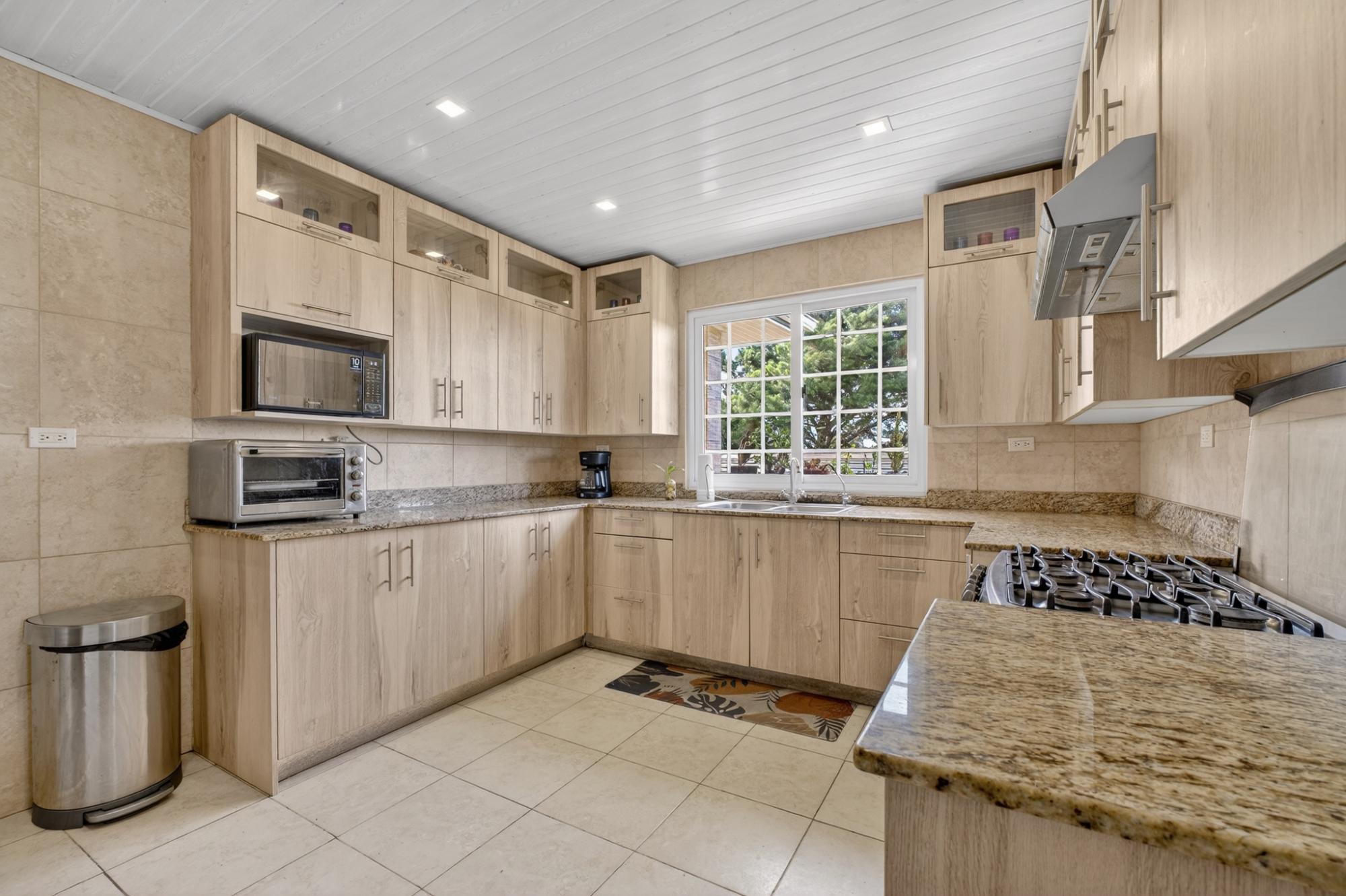 Located in Alto Boquete, just five minutes from downtown, this lovely 2-bedroom, 2.5-bath home offers comfort, light, and beautifully designed living spaces in a secure and friendly neighborhood. The spacious living room features a fireplace and large patio doors that bring in abundant natural light. A generous modern kitchen offers ample cabinetry, granite countertops, and excellent workspace. The primary bedroom is impressively large with an ensuite bath, walk-in closet, and custom cabinetry with built-in drawers. The guest bedroom also features a custom wardrobe with excellent storage. A large laundry area with additional cabinetry adds convenience. Outdoor living is highlighted by a covered terrace overlooking a fenced and gated yard with magnificent gardens. Lovely mountain views are enjoyed from the front of the home. Very secure, peaceful, and ideally located close to town, this property is perfect for full-time living or a Boquete retreat.