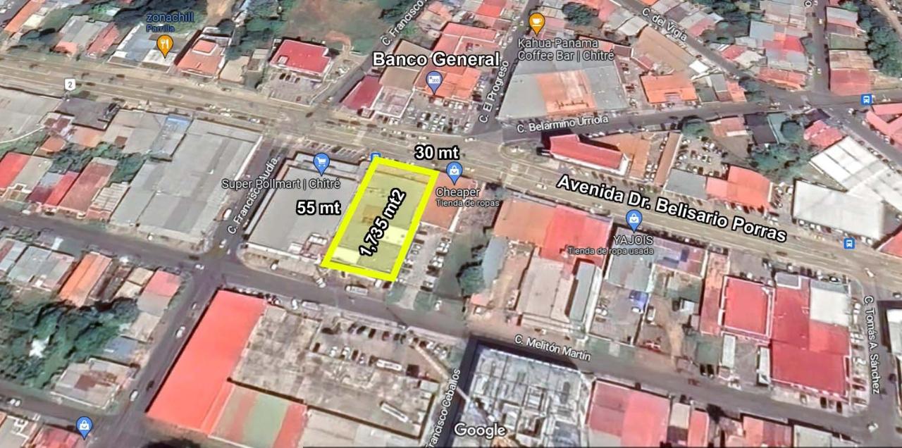 Commercial premises of 1,735 m2 in the center of the City of Chitré, in front of Ave. Dr. Belisario Porras, one of the most important in Chitré, it is ideal for supermarkets, warehouses, hardware stores, among others. Sale price: $2,000,000.00 Rental price: $12,000.00 For more information contact us. www.grupogestiones.com