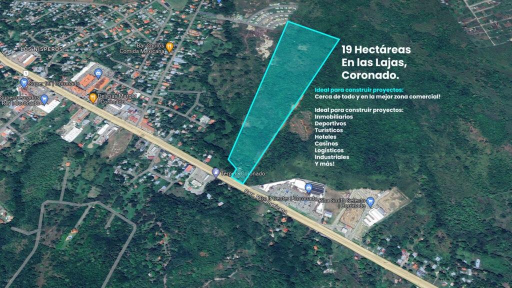 For sale: a spacious 19-hectare (12-acre) rectangular, flat lot with an excellent location on the Inter-American Highway, a major thoroughfare, just 2 minutes from the entrance to Coronado and only 10 minutes from the beach. The property boasts a strategic location next to Plaza Terrazas de Coronado and close to other shopping centers, supermarkets, well-known businesses, a gas station, resorts, hotels, and more—everything you need is within easy reach. Ideal for residential development, a gated community, or a tourism project. The lot features existing vegetation and some fruit trees. The frontage includes approximately 5,000 square meters (5,000 m²) of well-maintained land with a small house. It features: • 188,394.80 m2 • Strategic location facing the street, the Inter-American Highway and next to a major plaza • Direct access to the main road with easy connection to other areas • Flat surface • Completed entrance access • Water, electricity and sewage services already installed and functioning (in the front part) • The incorporation of a plot of land of about 600 m2 in the front area can be evaluated. Excellent opportunity for developers.