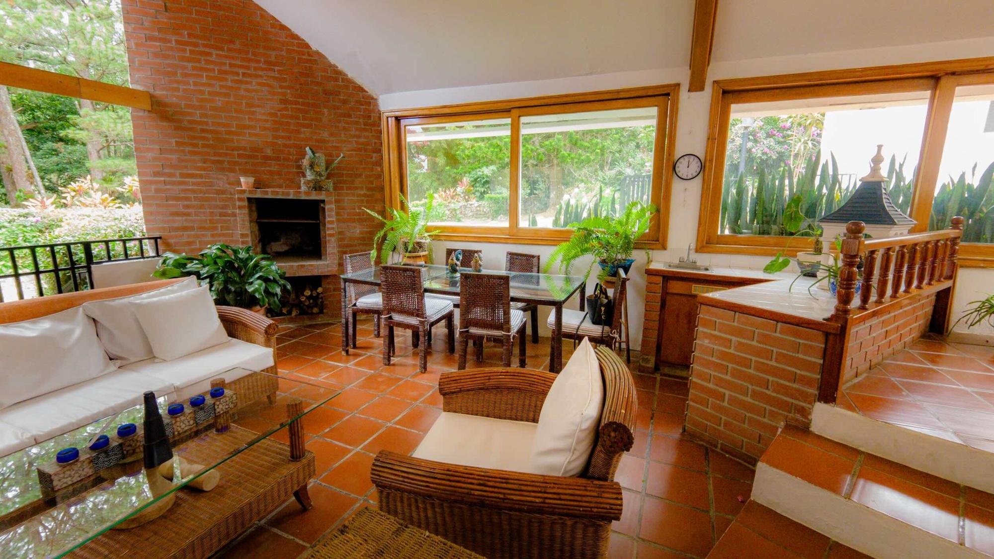 Comfortable mountain cottage, with two bedrooms and two and a half bathrooms, den, study and dining room, terrace, and an informal living room. Open kitchen with direct access to the dining room. It has an attached cabin with a bedroom and bathroom, and an adjacent living room, and an informal room between the house and the cabin. The garage has two parking spaces. The property has an extensive land of 2,1024.39 m2, with a large garden.
