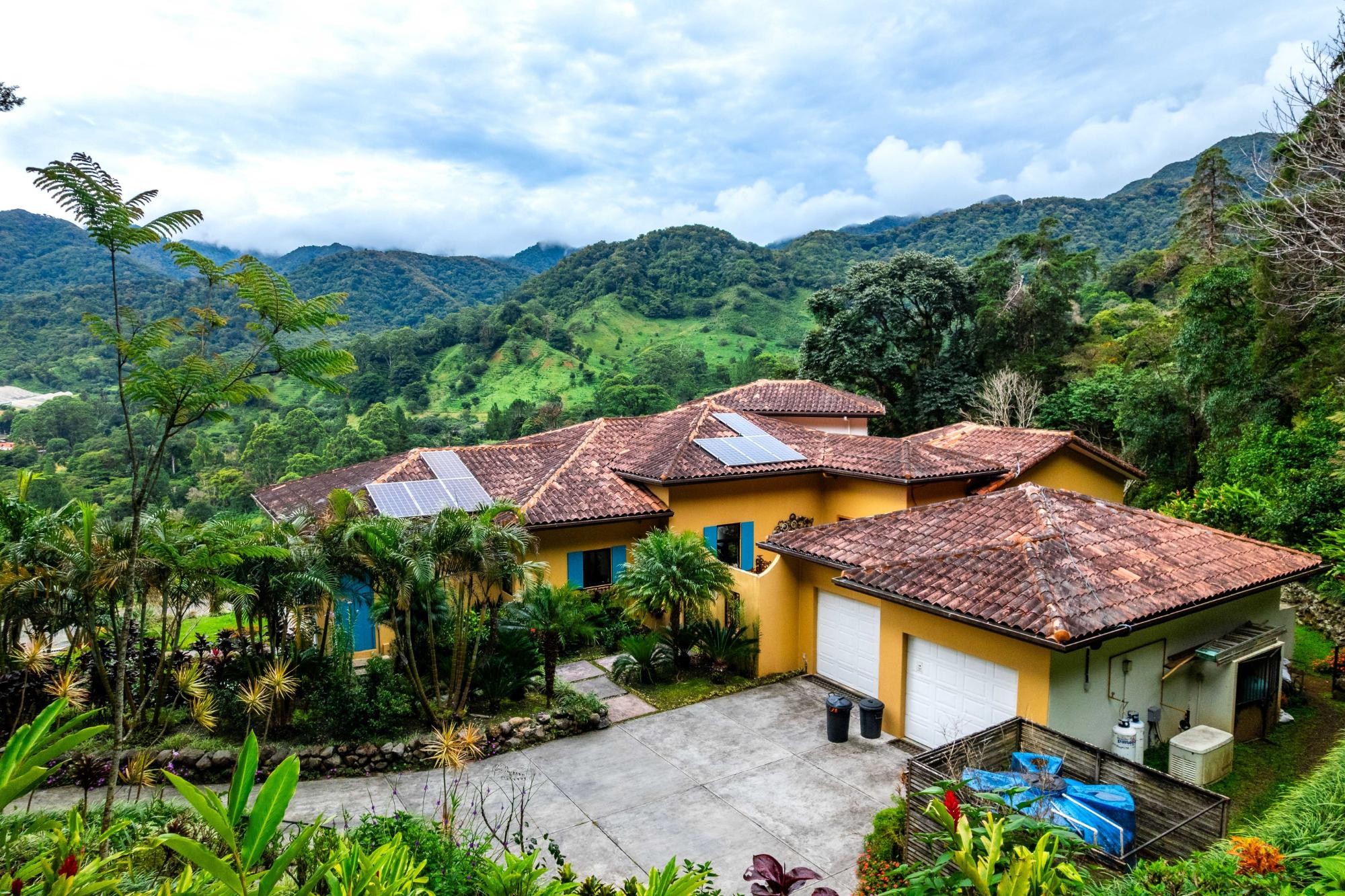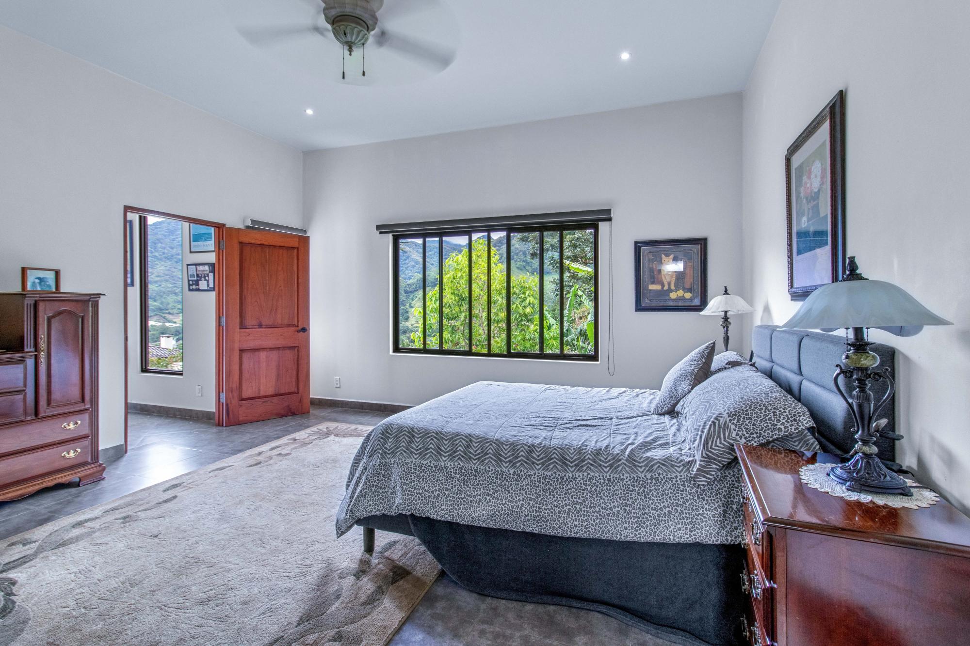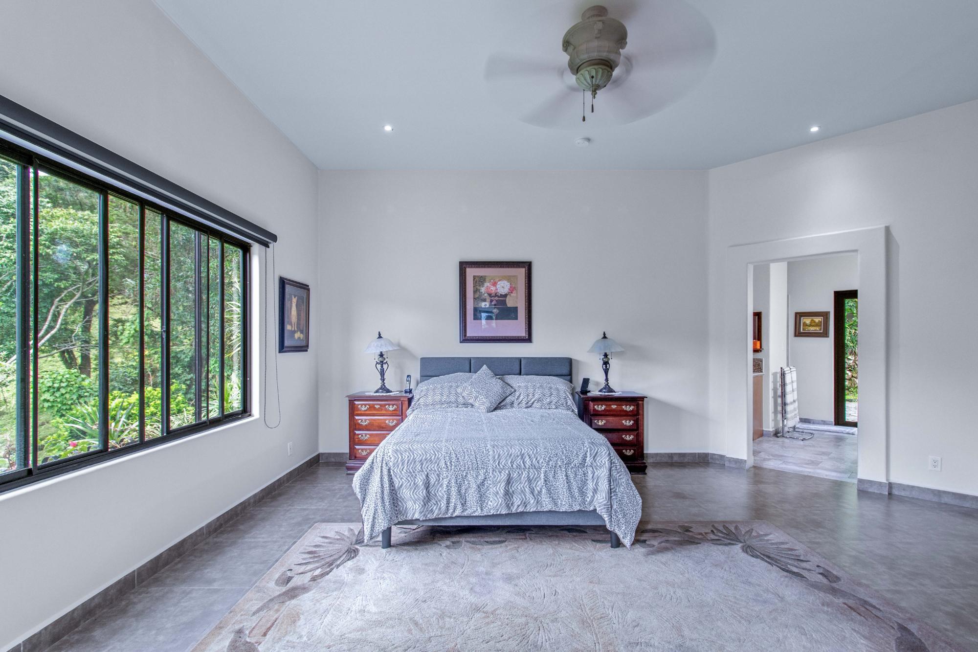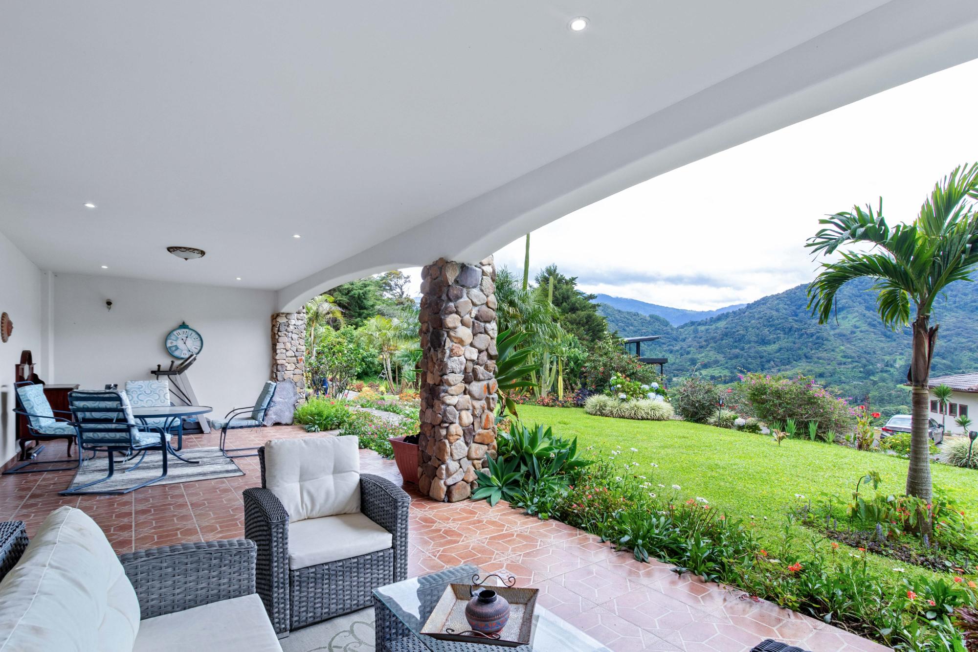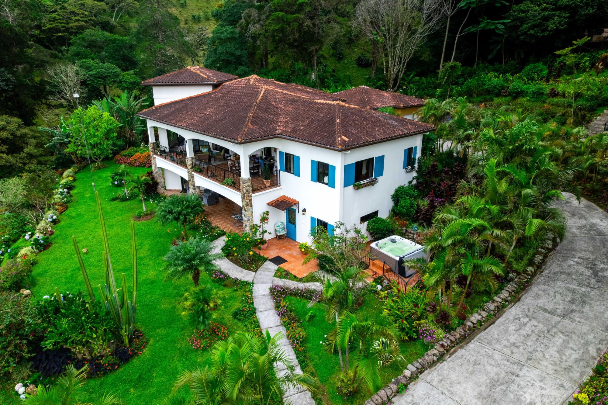 Tucked into the lush, elevated landscapes of Boquete, this fully furnished 4-bedroom estate with a dedicated office space offers panoramic elegance, natural serenity, and resilient, future-ready design. Located within The Springs — a gated and friendly HOA community backed by protected National Park land — the home is just minutes from town and Boquete’s finest dining, offering convenience without sacrificing tranquility. This two-story residence embraces light, space, and comfort. High ceilings and oversized windows on both levels create an atmosphere of openness, while thoughtfully placed terraces and garden paths invite seamless indoor-outdoor living. The main level features a wide, open-concept layout anchored by a warm, spacious kitchen, flowing into expansive living and dining areas and out to a covered terrace with stunning views of the surrounding mountains. Downstairs offers additional bedrooms, a secondary living space, and a private kitchenette, perfect for extended guests, multigenerational living, or income potential. A dedicated office room provides the ideal space to work remotely or convert into a creative studio, library, or flex room. This estate includes a fully enclosed two-car garage, plus two dehumidified storage rooms — one on each floor — giving you plenty of secure space for storage and seasonal items. And what truly sets this home apart is its smart, self-sufficient infrastructure: A computerized lithium battery system with whole-home surge protection automatically activates during outages — powering the entire home silently for up to 12 hours.