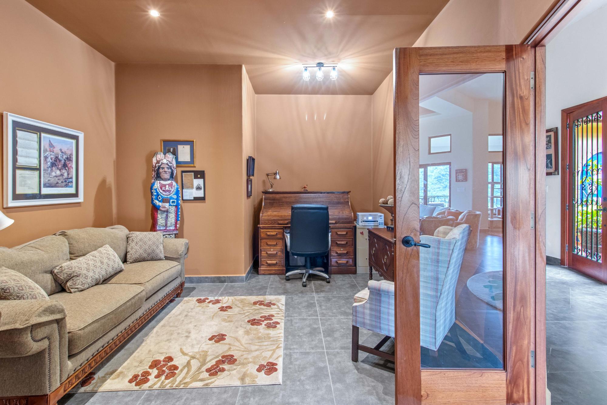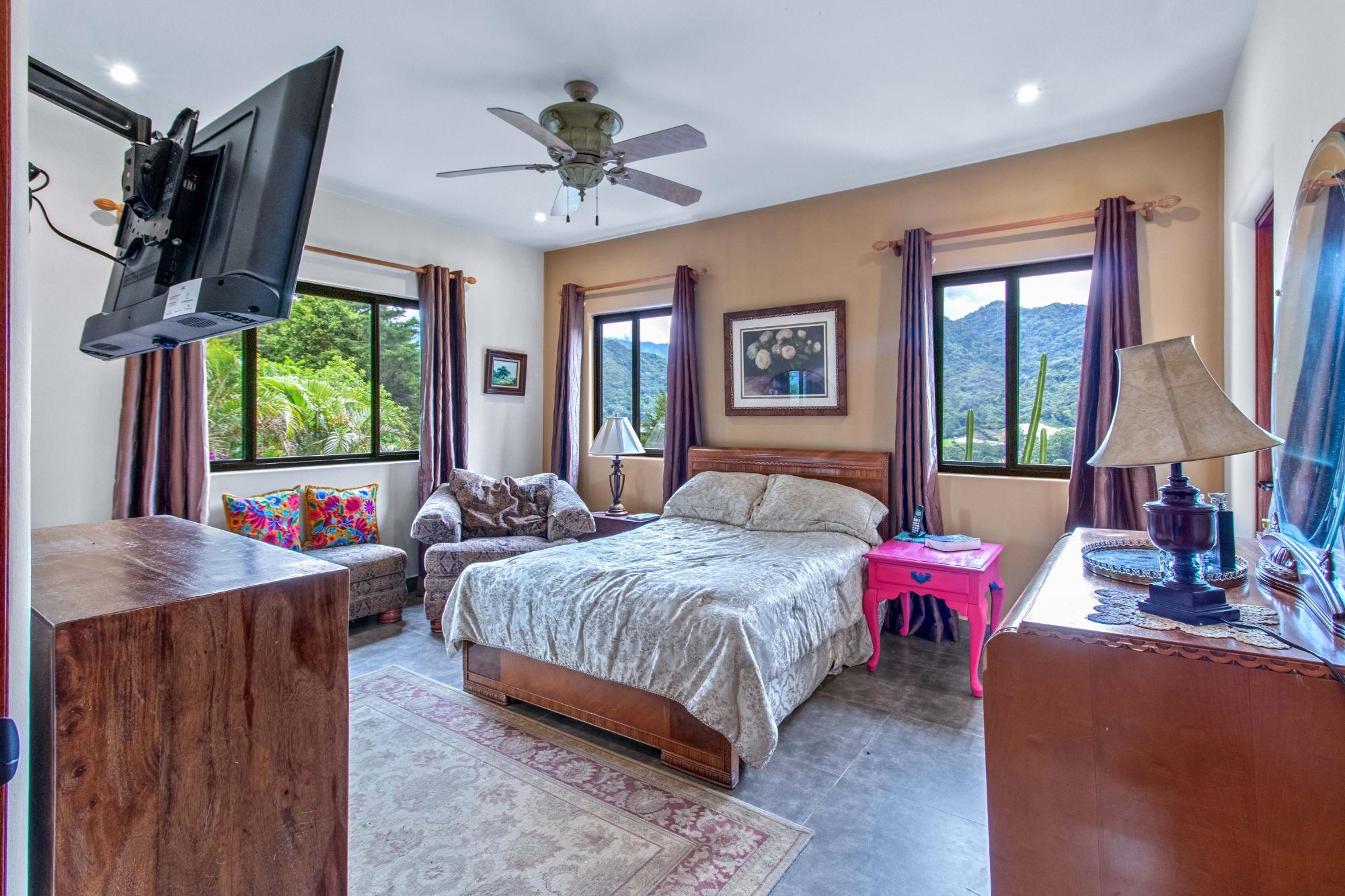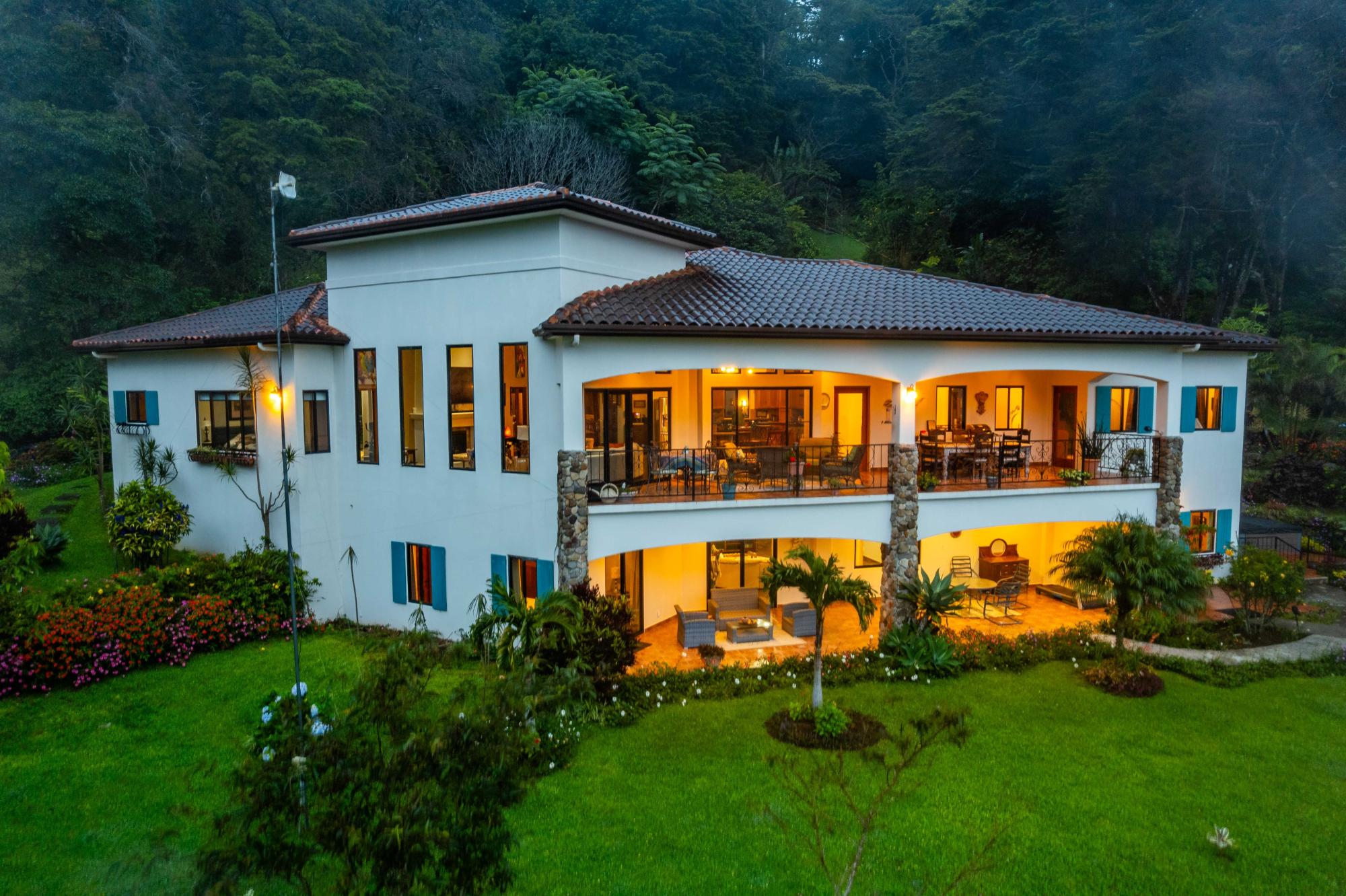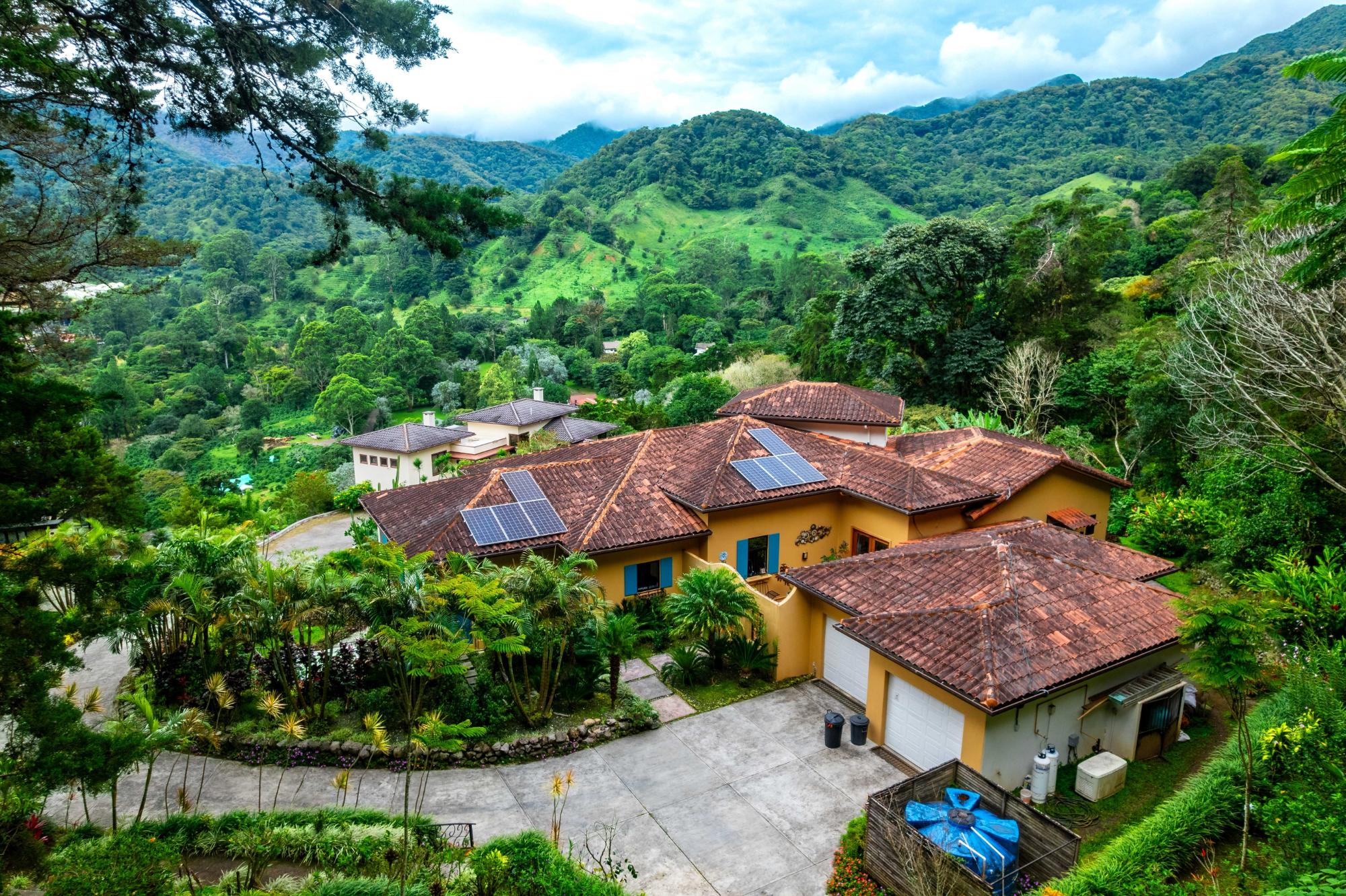 Tucked into the lush, elevated landscapes of Boquete, this fully furnished 4-bedroom estate with a dedicated office space offers panoramic elegance, natural serenity, and resilient, future-ready design. Located within The Springs — a gated and friendly HOA community backed by protected National Park land — the home is just minutes from town and Boquete’s finest dining, offering convenience without sacrificing tranquility. This two-story residence embraces light, space, and comfort. High ceilings and oversized windows on both levels create an atmosphere of openness, while thoughtfully placed terraces and garden paths invite seamless indoor-outdoor living. The main level features a wide, open-concept layout anchored by a warm, spacious kitchen, flowing into expansive living and dining areas and out to a covered terrace with stunning views of the surrounding mountains. Downstairs offers additional bedrooms, a secondary living space, and a private kitchenette, perfect for extended guests, multigenerational living, or income potential. A dedicated office room provides the ideal space to work remotely or convert into a creative studio, library, or flex room. This estate includes a fully enclosed two-car garage, plus two dehumidified storage rooms — one on each floor — giving you plenty of secure space for storage and seasonal items. And what truly sets this home apart is its smart, self-sufficient infrastructure: A computerized lithium battery system with whole-home surge protection automatically activates during outages — powering the entire home silently for up to 12 hours.