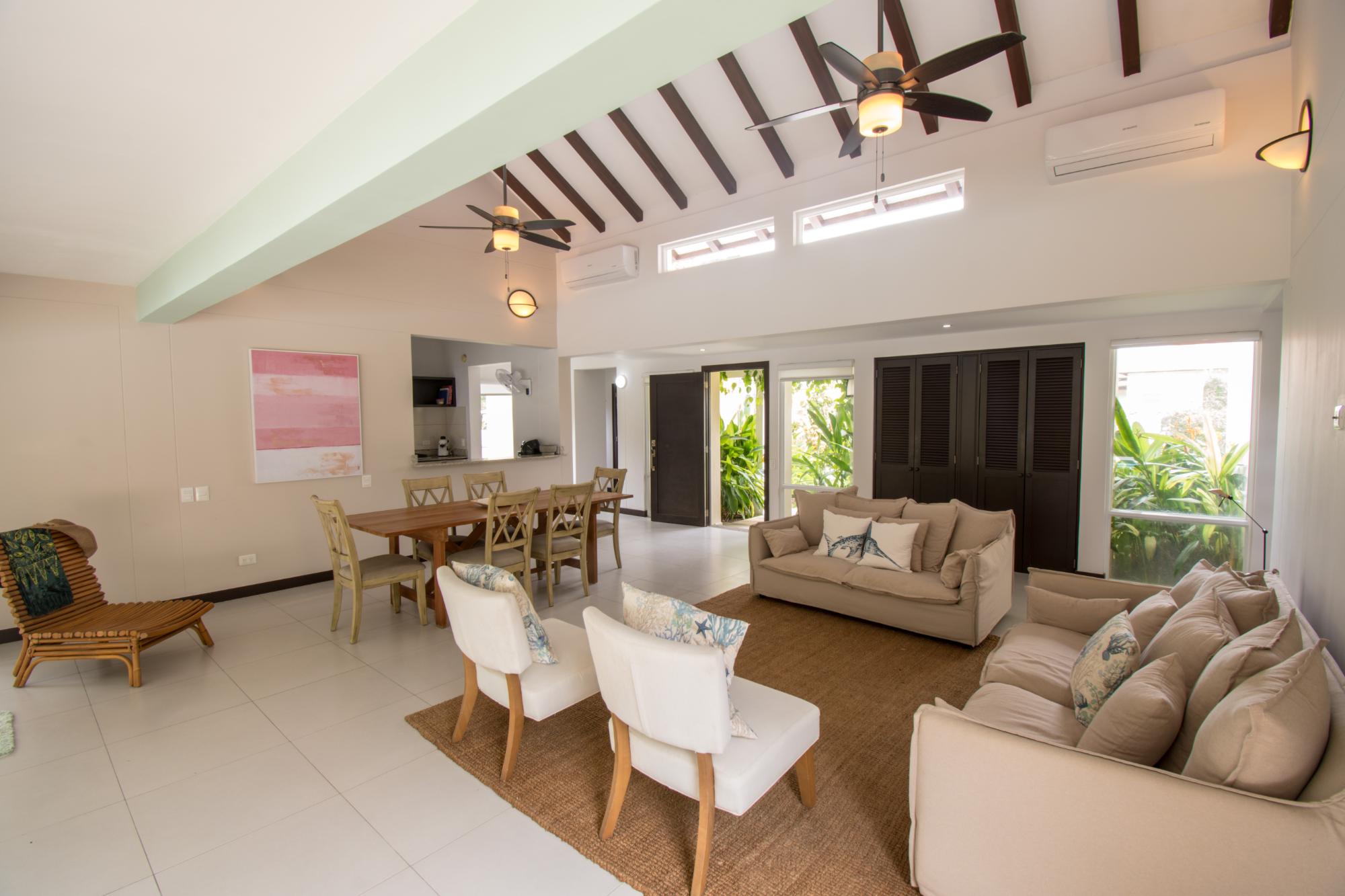 Luxury 3-Bedroom Villa in Costa Blanca Golf & Villas – Farallón, Río Ato, Coclé, Panama Discover the lifestyle you deserve with this elegant 3-bedroom villa of 306 m² (3,293 sq ft) built on over 1,700 m² (18,299 sq ft) of land, nestled in the prestigious Costa Blanca Golf & Villas (Decameron area), within the exclusive Mantarraya Golf Club, in Farallón, Río Ato, Coclé Province, Panama. The home features three en-suite bedrooms, each with a private bathroom, built-in closets, and sliding glass doors opening to lush private gardens. A spacious family room opens to a covered terrace that leads to the garden and private pool. The dining area is adjacent to a modern, functional kitchen—perfect for daily life and entertaining. It includes a maid’s quarter with a bathroom, three parking spaces, and is delivered fully furnished in a contemporary style. The gated community offers 24/7 security, controlled access, Mantarraya golf membership, a private beach club, and complete maintenance services. The location is outstanding: just five minutes from Farallón Beach, with easy access to Playa Blanca, and close to Coronado—a well-developed coastal community offering complete services, commercial areas, and strong residential appeal. Coronado lies about one hour from Panama City and is known for its beach lifestyle and modern infrastructure. Living here offers the ultimate blend of nature, beach, golf, and peace. Act now and make this dream home yours.