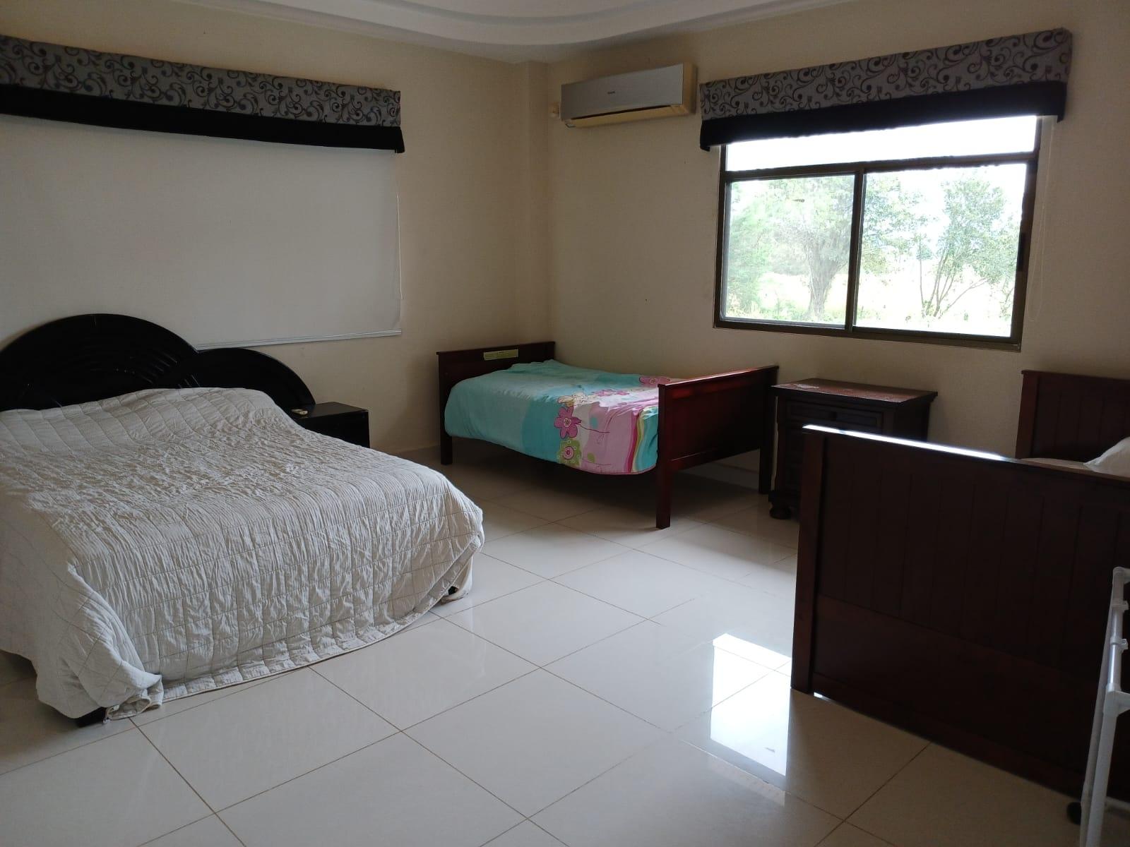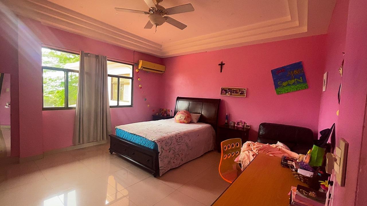 This spacious, fully fenced, two-story home offers a smart layout. On the ground floor, you’ll find a welcoming, double-height living room flooded with natural light, a dining room, a modern and fully equipped kitchen, a study, a guest room with its own bathroom, a laundry room, and a two-car garage with space for four cars. Privacy awaits upstairs, where the second floor houses four spacious bedrooms, each with its own full bathroom and walk-in closet. The property also features a rooftop terrace with a bar, a swimming pool, and a large garden. It’s the perfect option for families seeking comfort and convenience.