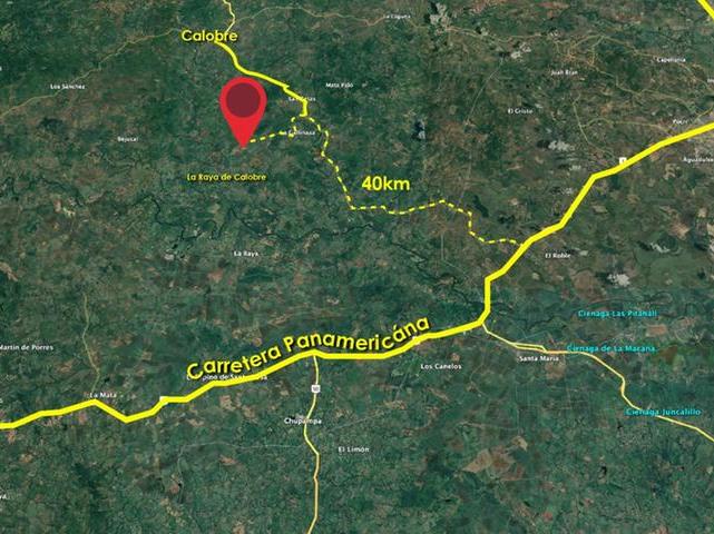 Farm in the Raya de Calobre, Veraguas. Semi-flat terrain and has a ravine in its back.
