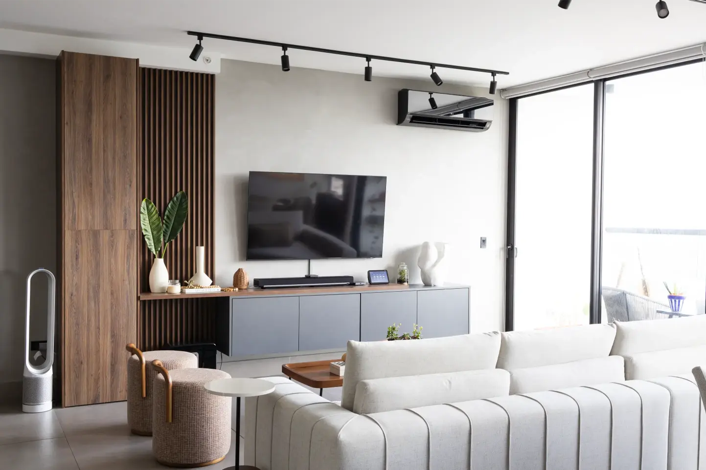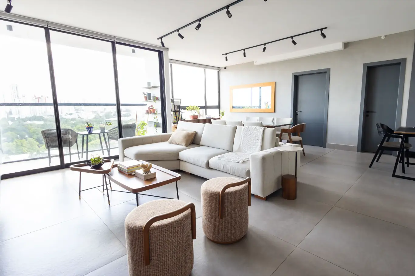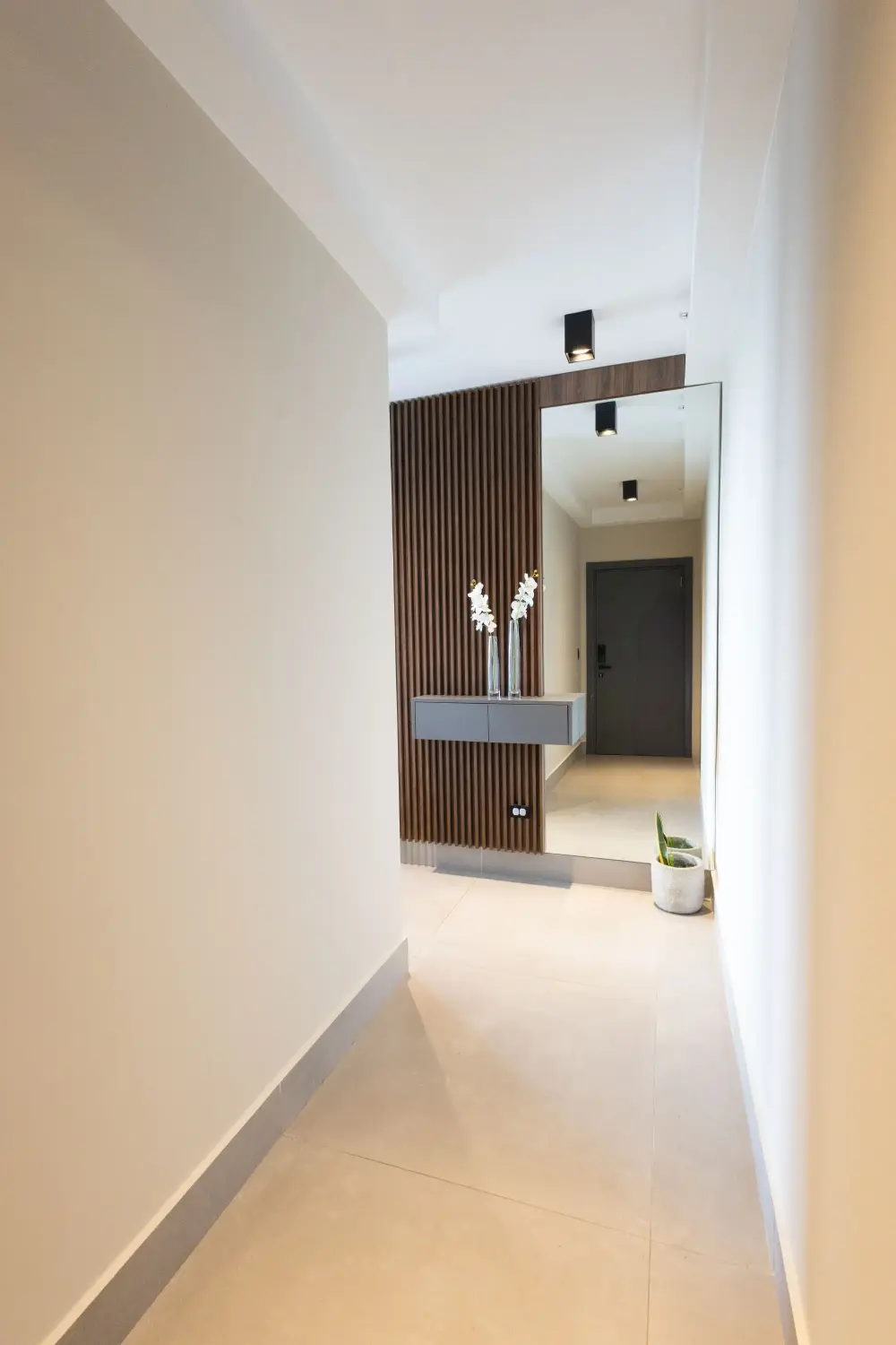 With 115 m² (1,238 ft²) of well-distributed space, the apartment features two spacious bedrooms, two full bathrooms, and a separate maid’s room with its own bathroom, offering flexibility and comfort. The interiors boast modern finishes, including a stylish microcement coating in the living and dining area, custom built-in furniture in the TV area and entryway, and high-quality roller blinds throughout. The kitchen comes equipped with modern appliances, and air conditioning units are already installed. The unit is unfurnished, allowing you to bring your personal style to this beautiful home, and it includes two dedicated parking spaces. The monthly rent also covers building maintenance and gas, adding extra value.