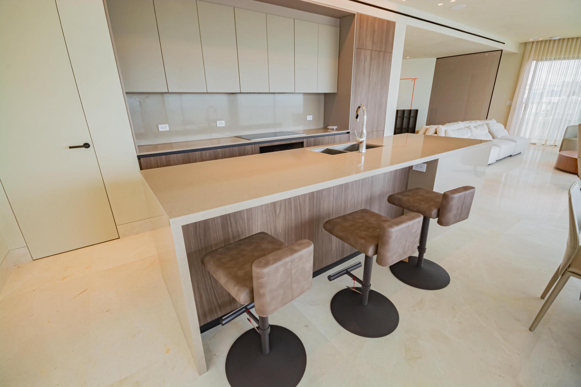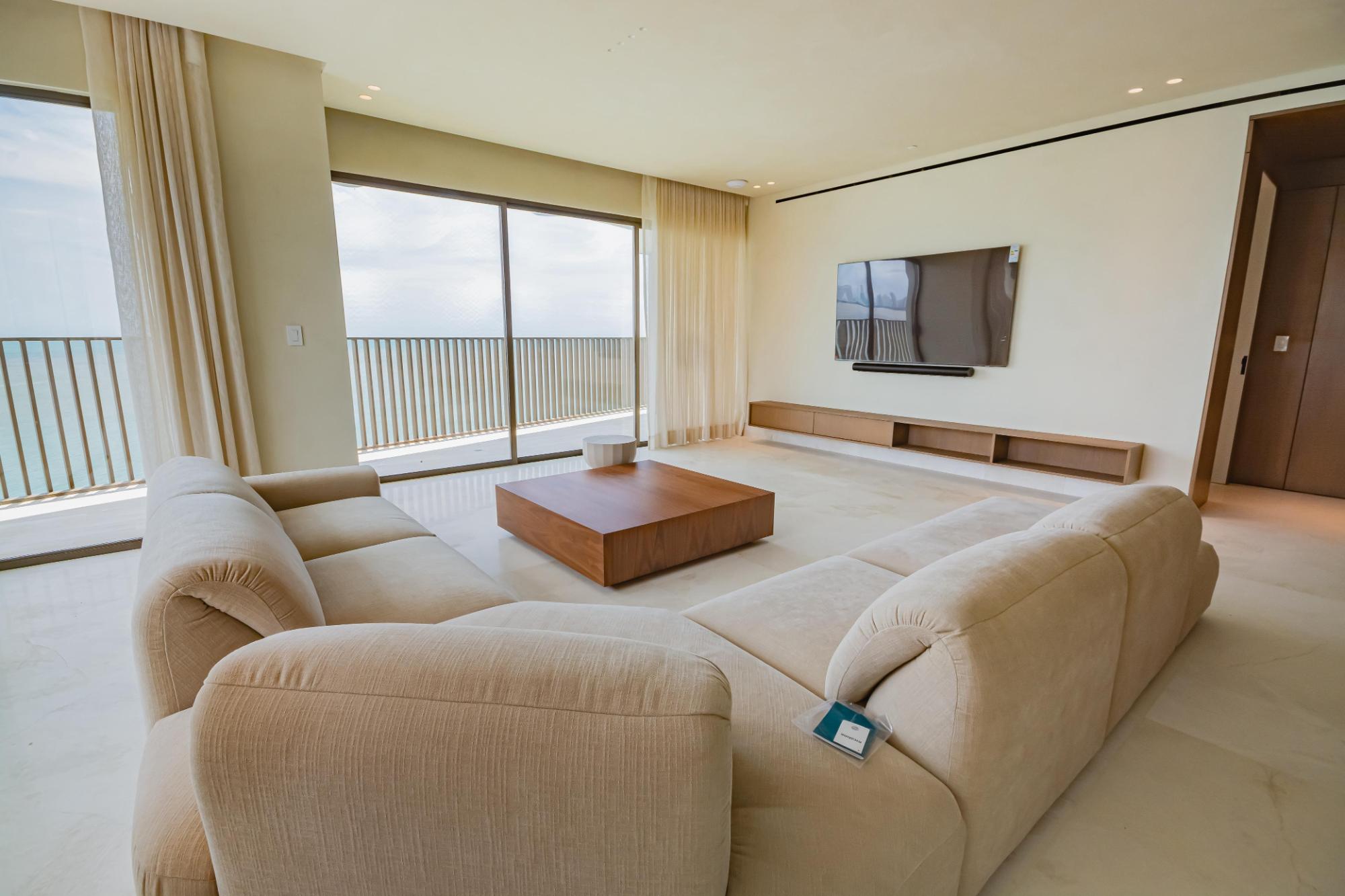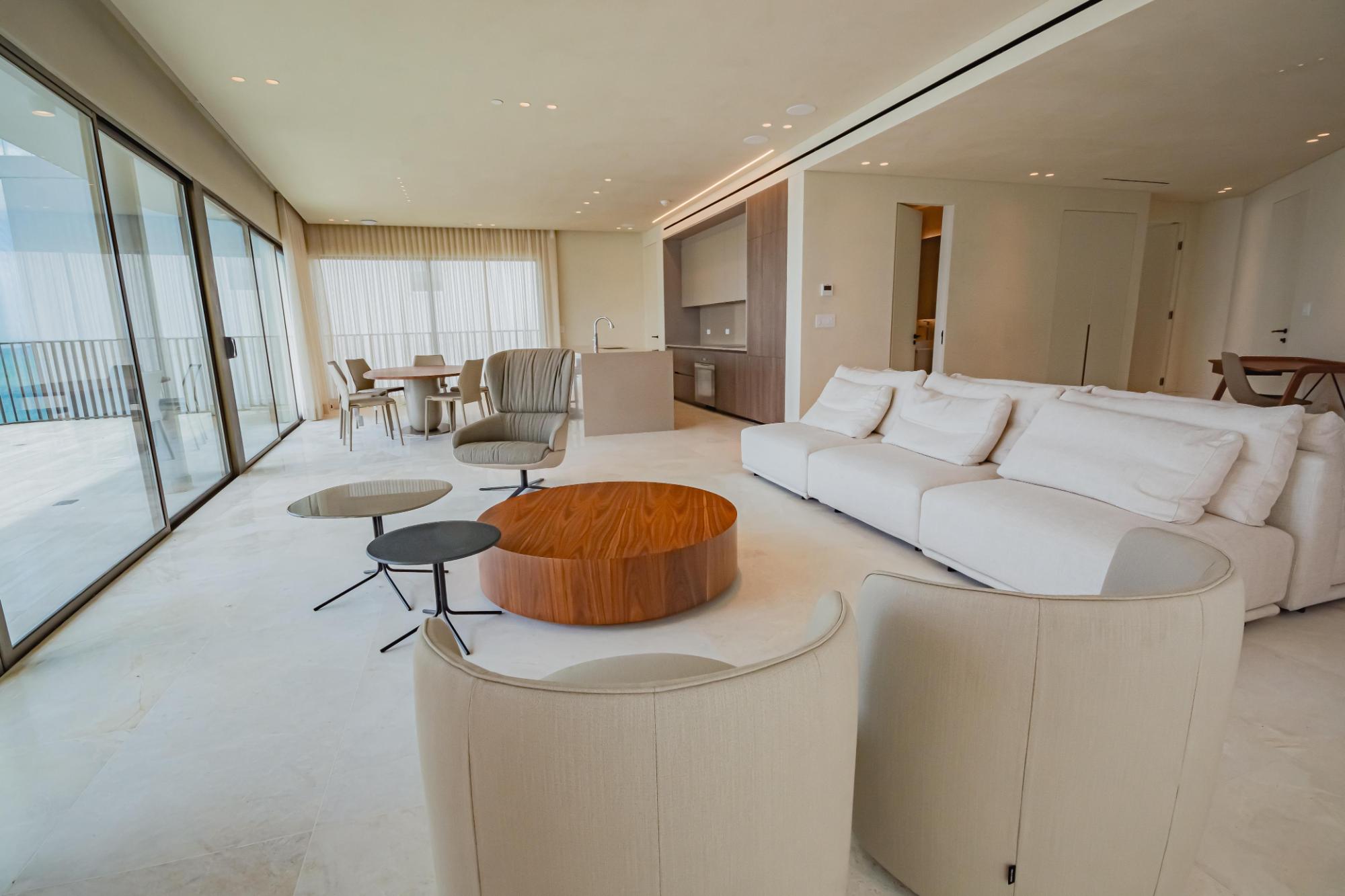 Discover this stunning duplex penthouse for sale in the prestigious Ocean Reef community. This one-of-a-kind two-story penthouse is a masterpiece of custom upgrades and interior design, offering an unparalleled living experience. Featuring 3 bedrooms plus a maid’s quarters, and 3.5 bathrooms, this spacious residence is perfect for those seeking luxury and comfort. The home boasts two independent kitchens, both equipped with top-of-the-line Miele appliances, catering to all your culinary needs. One of the standout features is the wrap-around balcony, providing panoramic ocean and city views that create a serene and picturesque backdrop to your daily life. The expansive outdoor space is perfect for relaxing and entertaining, offering breathtaking views from every angle.