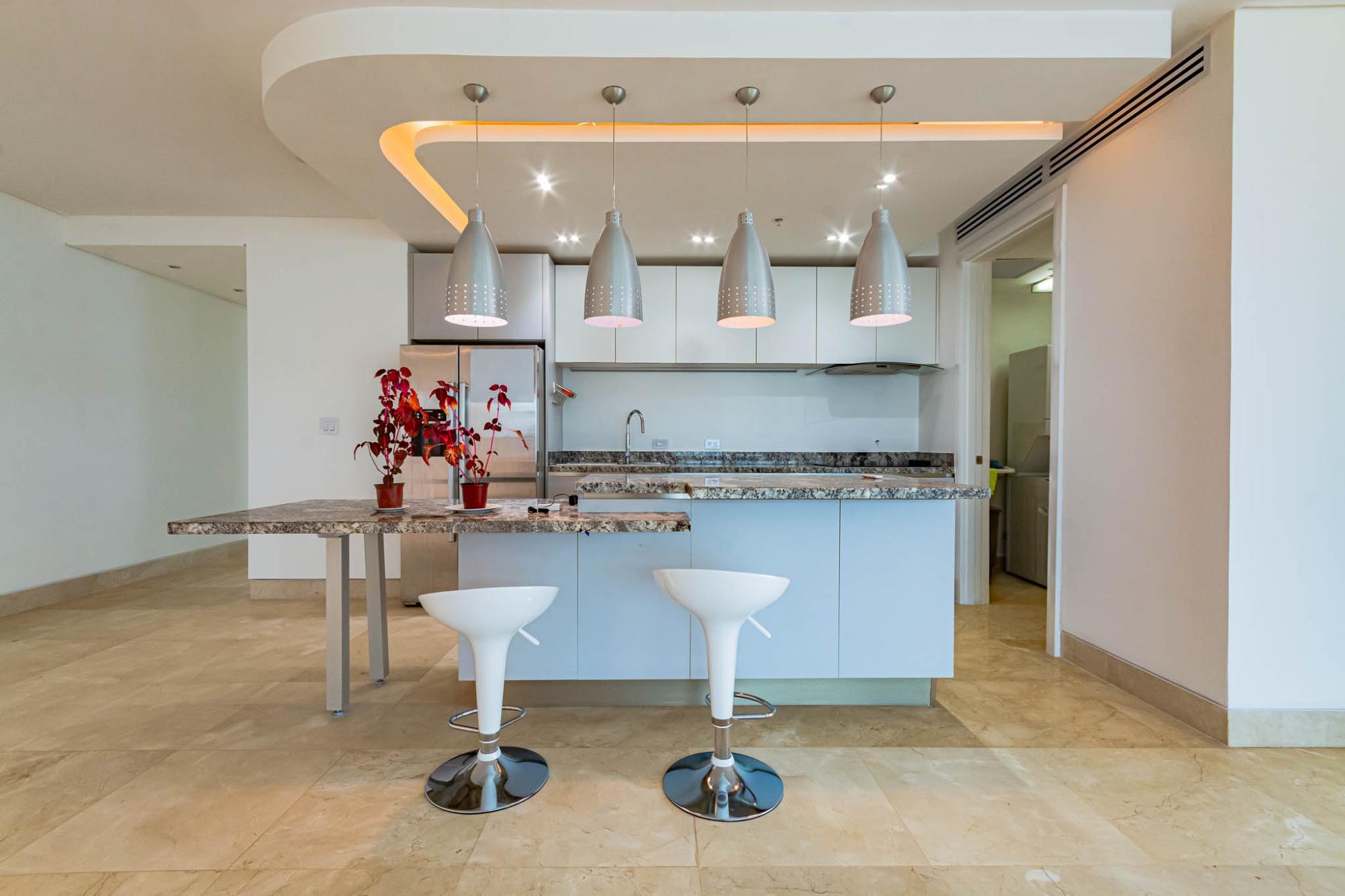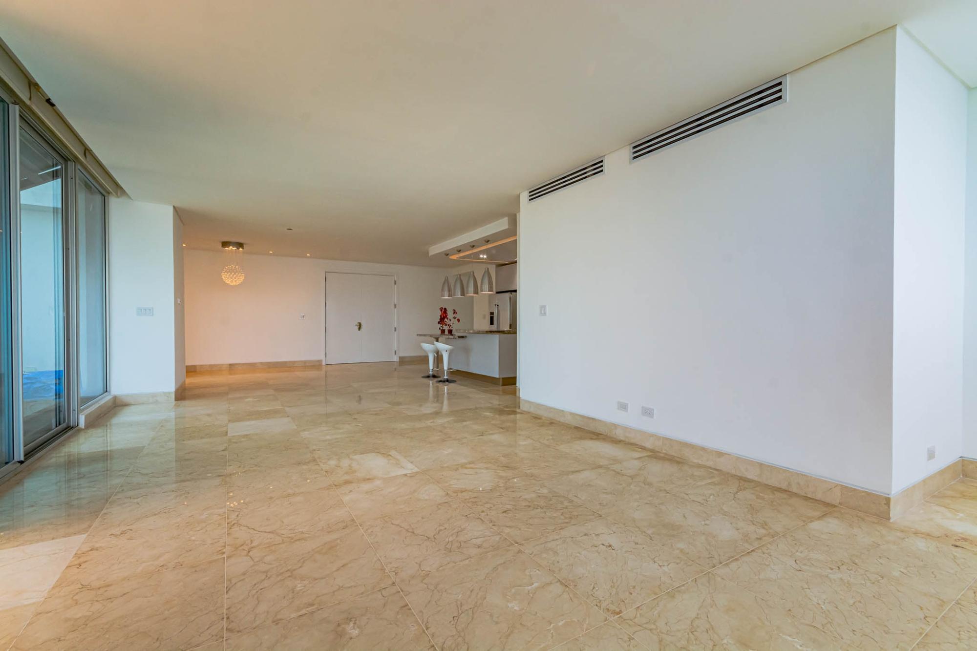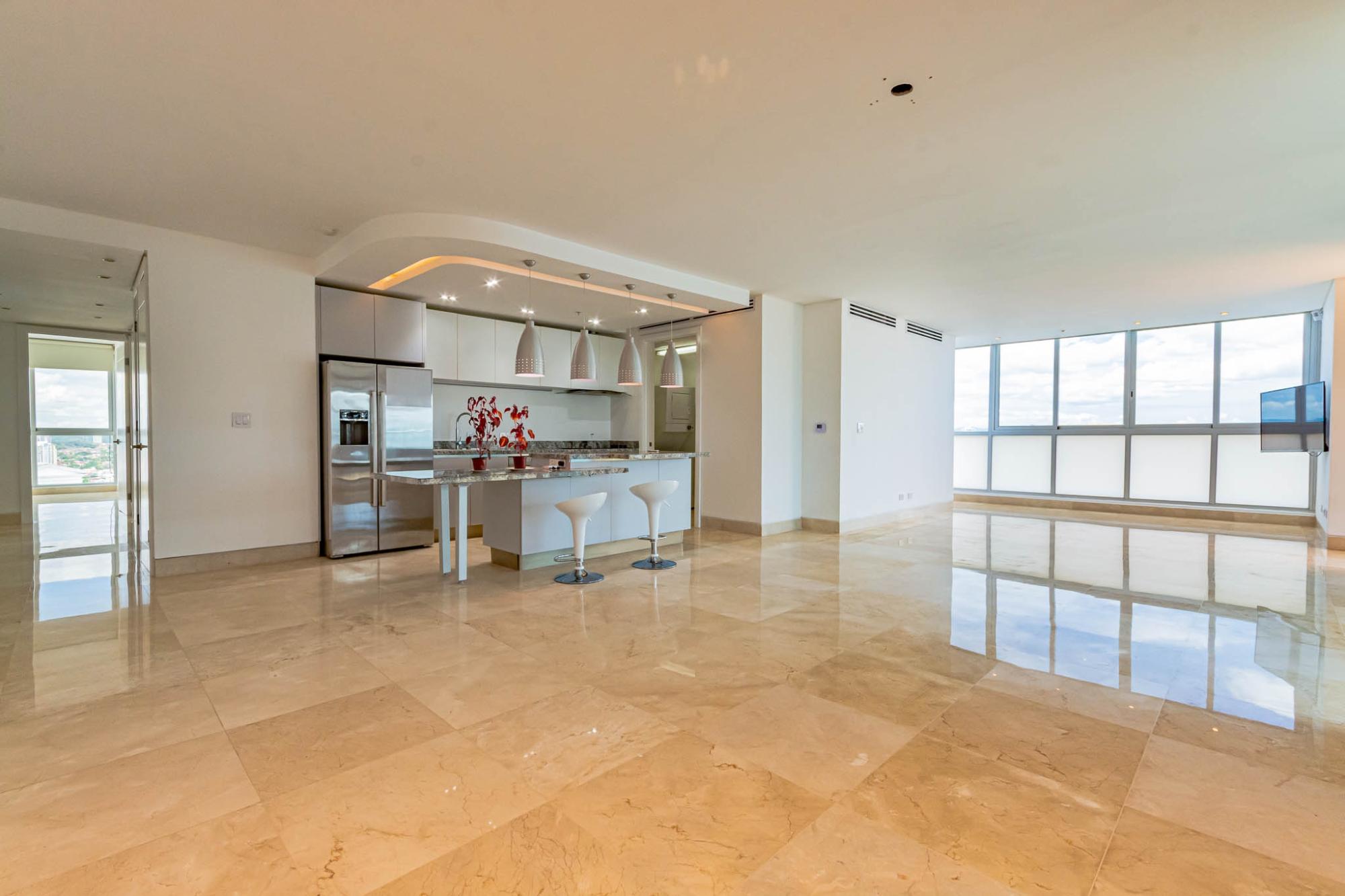 ABOUT THE APARTMENT This expansive 320 m² apartment in the prestigious Oceanaire building offers a blend of comfort and functionality. Featuring two generously sized bedrooms and three full bathrooms, the residence is designed for both relaxation and practicality. The inclusion of a maid’s quarters adds to the convenience, providing additional space for staff or storage. The apartment boasts a spacious balcony, perfect for enjoying the vibrant city views of Panama City. While the unit is unfurnished, it comes equipped with high-quality appliances, including a refrigerator, stove, oven, washer, and dryer, ensuring a seamless move-in experience. ABOUT THE BUILDING Oceanaire stands as a symbol of luxury in Punta Pacífica. This 48-story building, completed in 2011 by renowned developer Aleman Arias, offers residents an array of top-tier amenities: Two separate social areas: one on the ground level and another on the seventh floor Adult and children’s swimming pools Jacuzzi and solarium BBQ area and covered terrace with bar Fully equipped fitness center and gym Children’s playground and playroom Squash court and half basketball court Putting green, yoga, and tai chi terrace Sauna, events lounge, and gazebo Five high-speed elevators 24-hour security and surveillance Auxiliary generator and water tank Internet and cable-ready outlets Garbage chute on each floor Located in the heart of Punta Pacífica, residents enjoy proximity to high-end shopping centers, gourmet restaurants, and the renowned Punta Pacífica Hospital, affiliated with Johns Hopkins Medicine International.