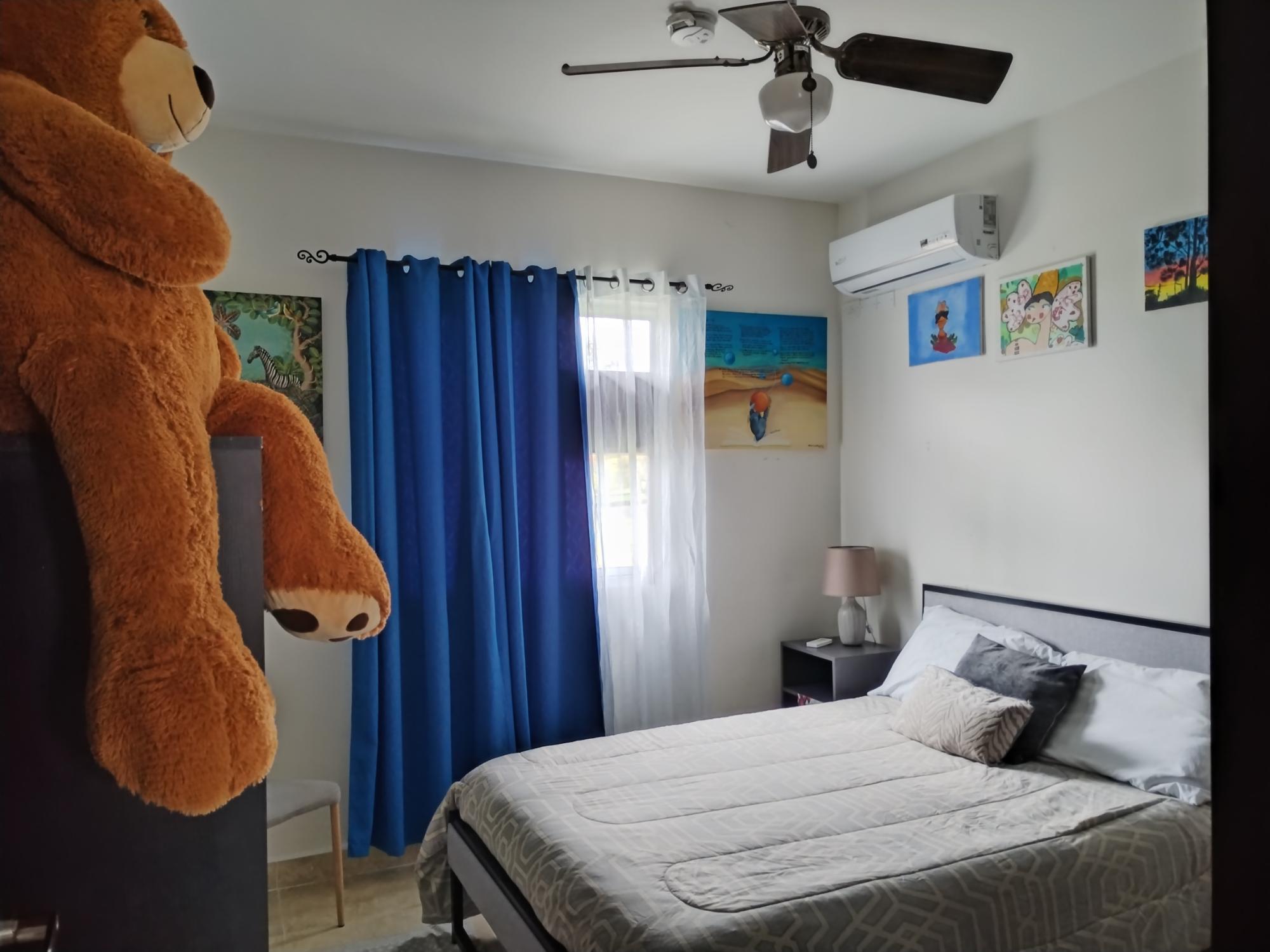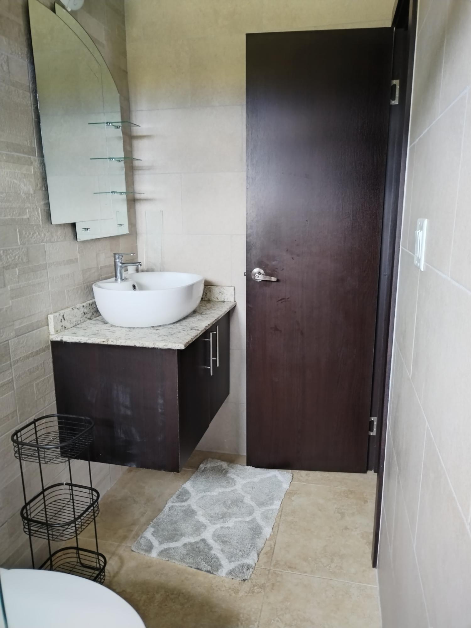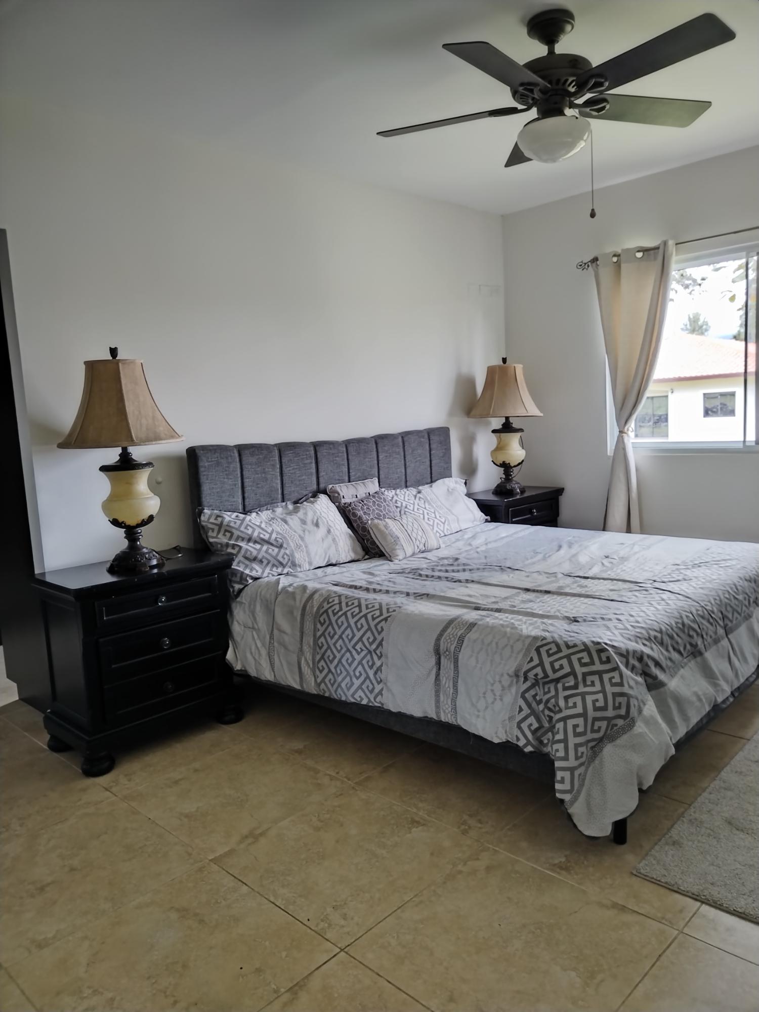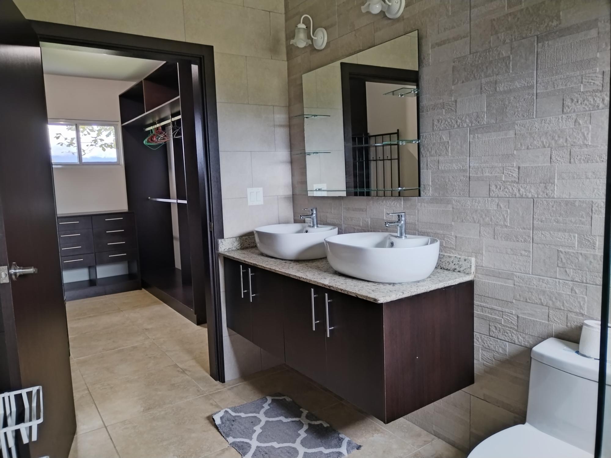 Located in the desirable Boquete Canyon Village, this 3-bedroom, 2.5-bathroom home offers a 1,500-square-meter flat lot with beautifully landscaped trees. Sold fully furnished, this property is ready for you to move in and start enjoying all that Boquete has to offer. The open-concept living and dining area connects seamlessly with the kitchen, making it a perfect space for both relaxation and entertaining. The kitchen is equipped with a breakfast bar and stools, along with a double-door refrigerator, dishwasher, stove, and hood. A glass door from the living area leads to the terrace, where you can unwind while taking in views of the mountains and the lush landscaping that surrounds the home.