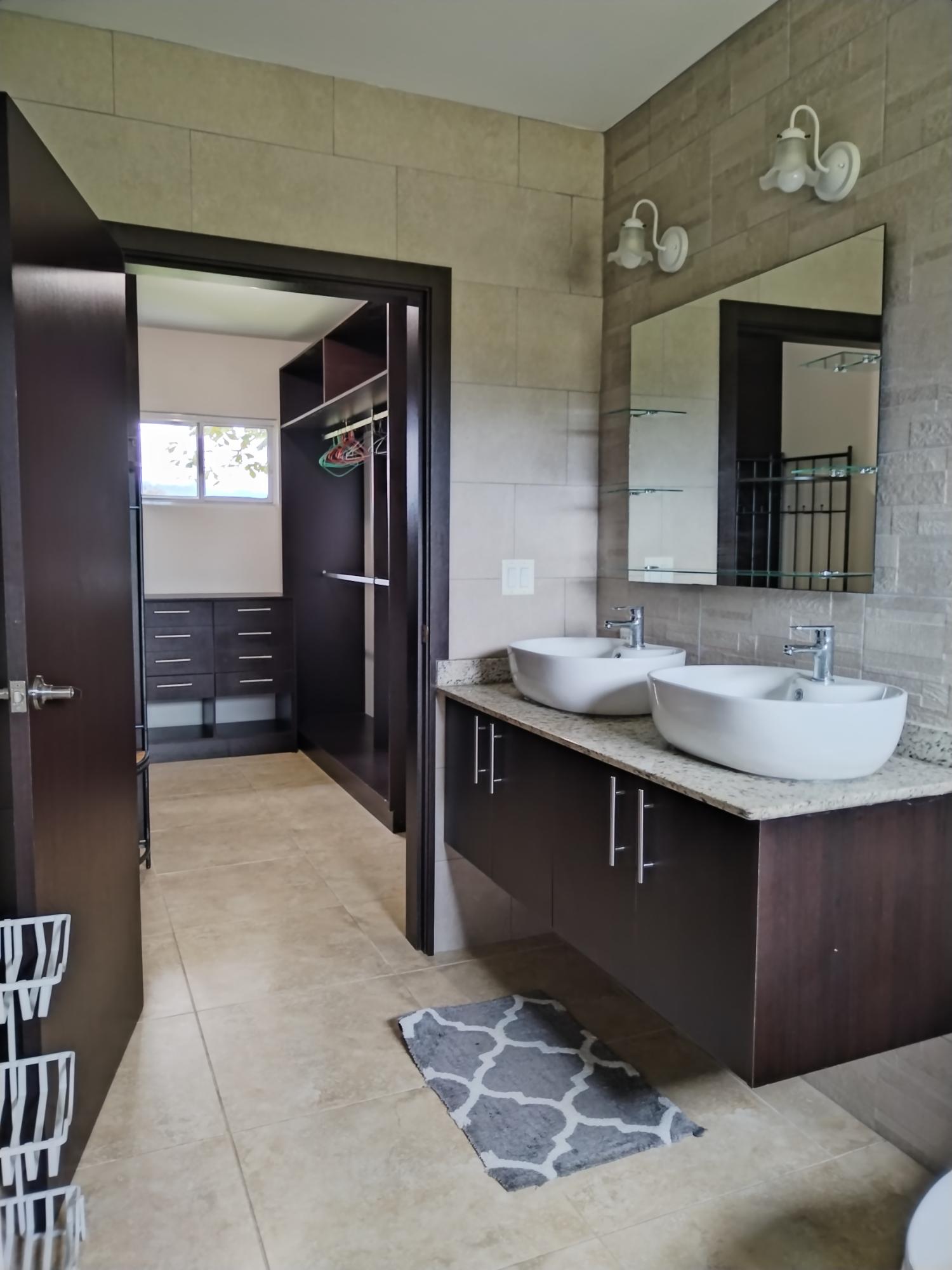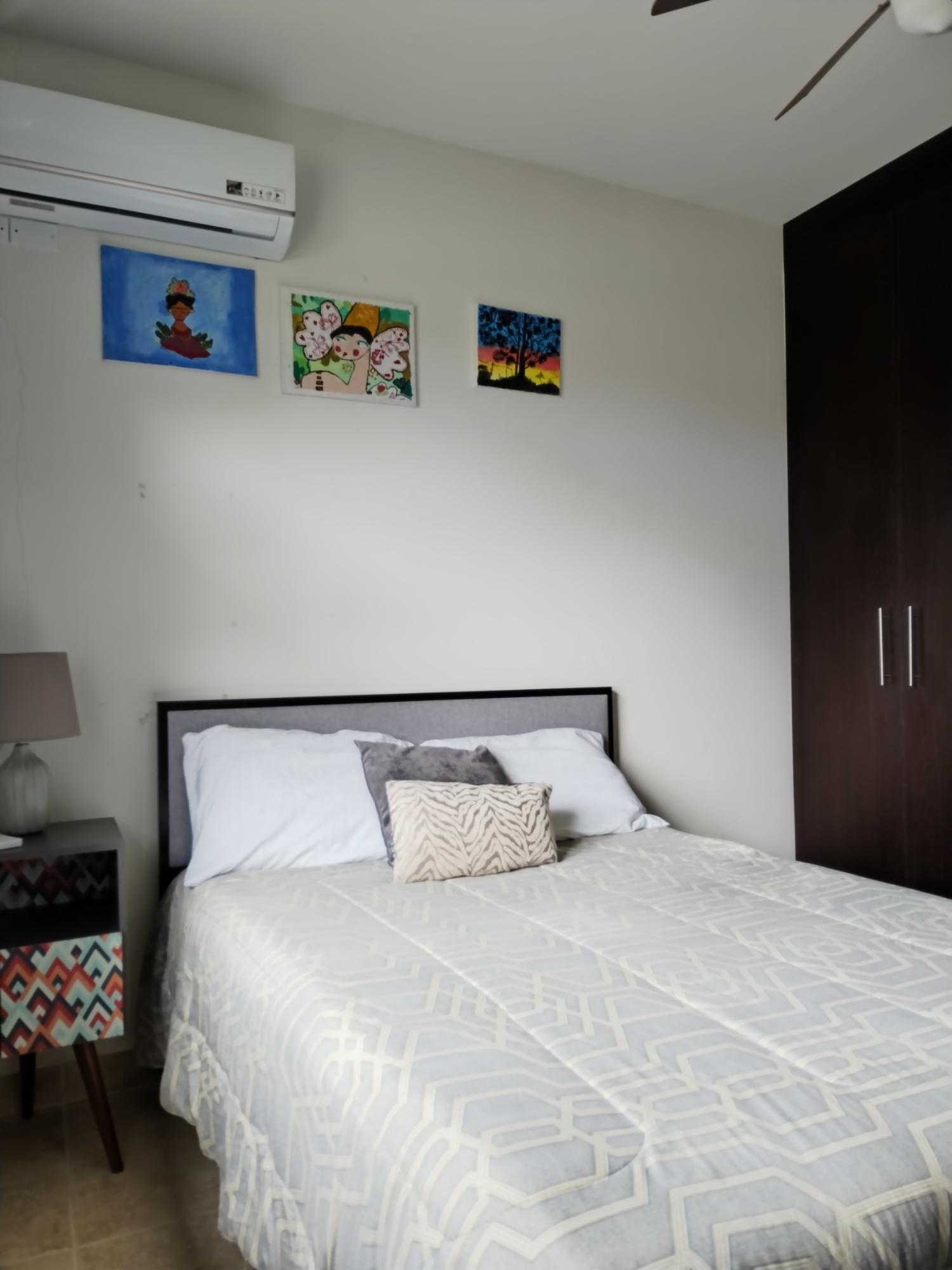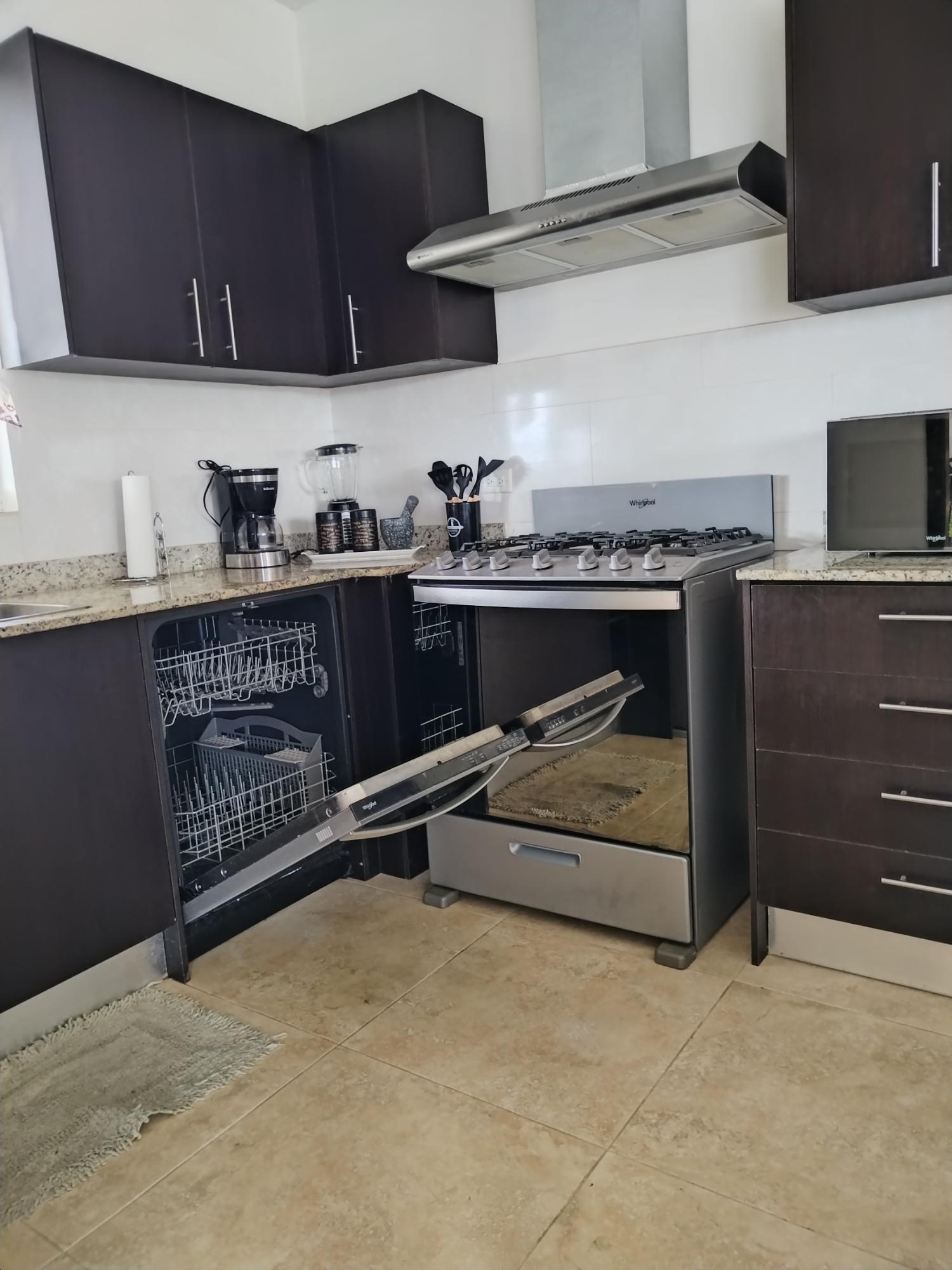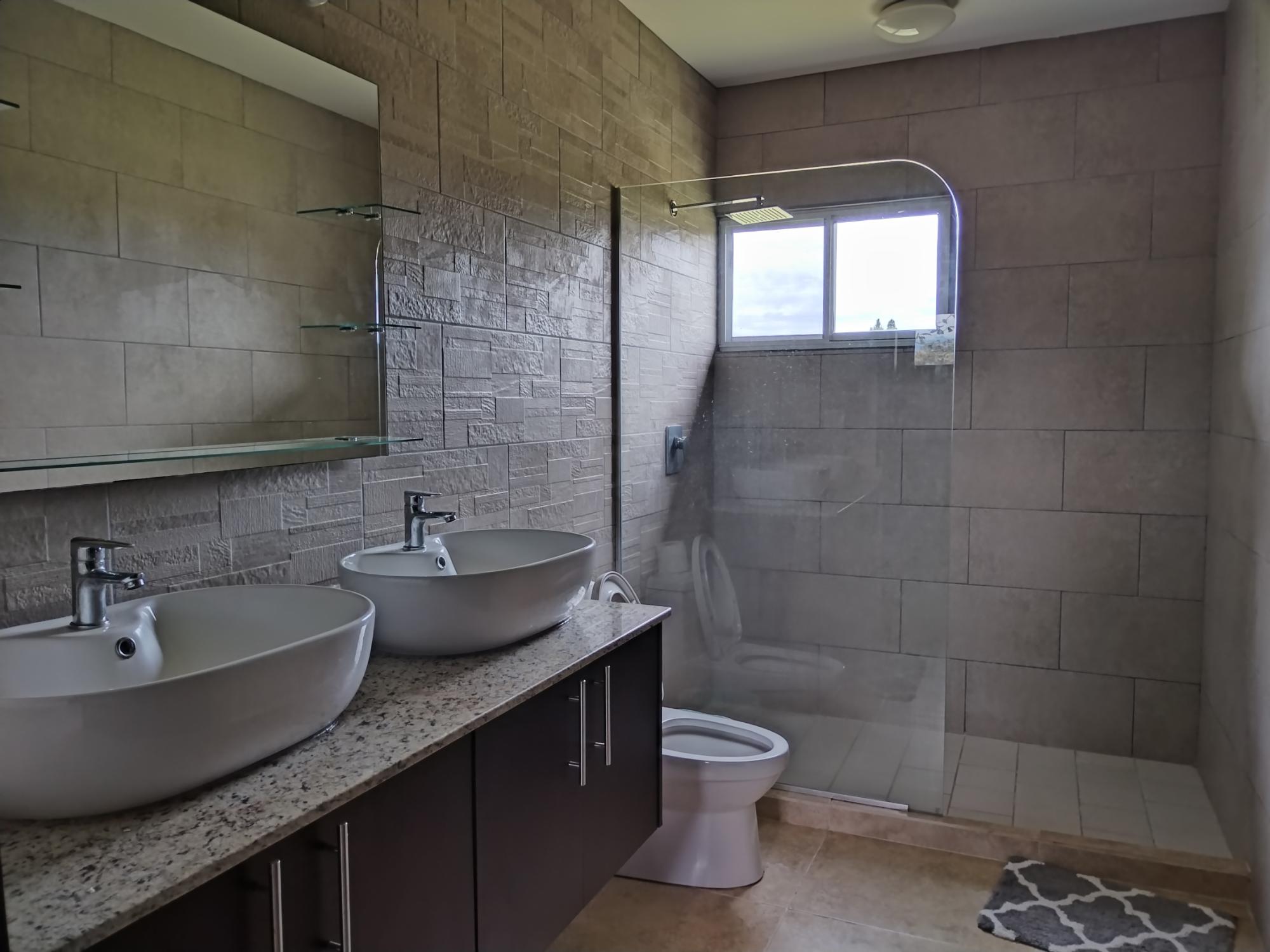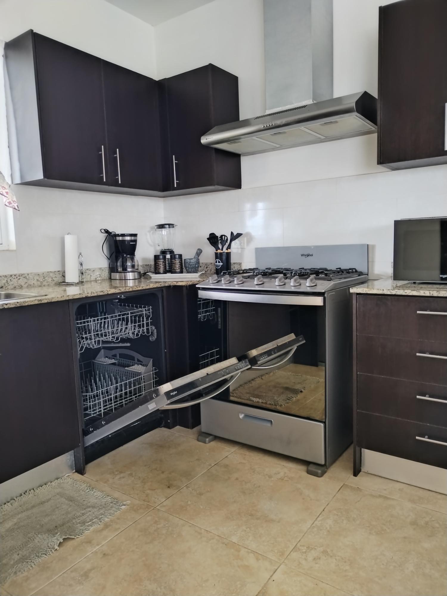 Located in the desirable Boquete Canyon Village, this 3-bedroom, 2.5-bathroom home offers a 1,500-square-meter flat lot with beautifully landscaped trees. Sold fully furnished, this property is ready for you to move in and start enjoying all that Boquete has to offer. The open-concept living and dining area connects seamlessly with the kitchen, making it a perfect space for both relaxation and entertaining. The kitchen is equipped with a breakfast bar and stools, along with a double-door refrigerator, dishwasher, stove, and hood. A glass door from the living area leads to the terrace, where you can unwind while taking in views of the mountains and the lush landscaping that surrounds the home.