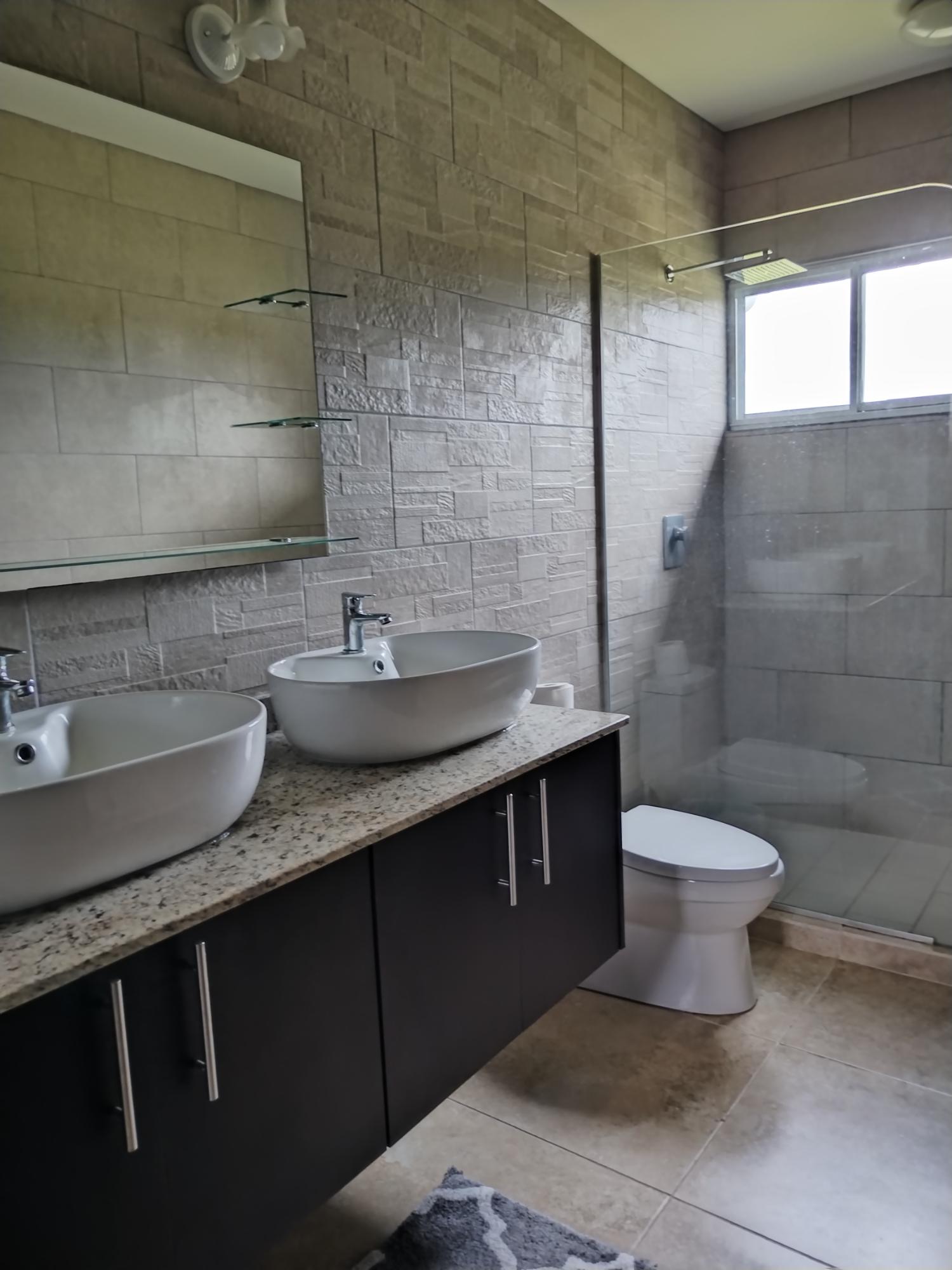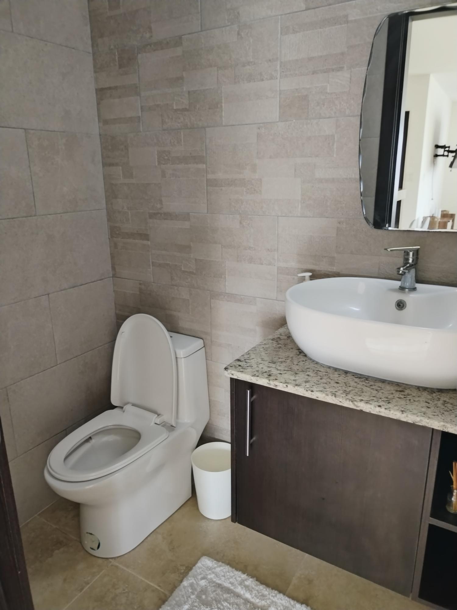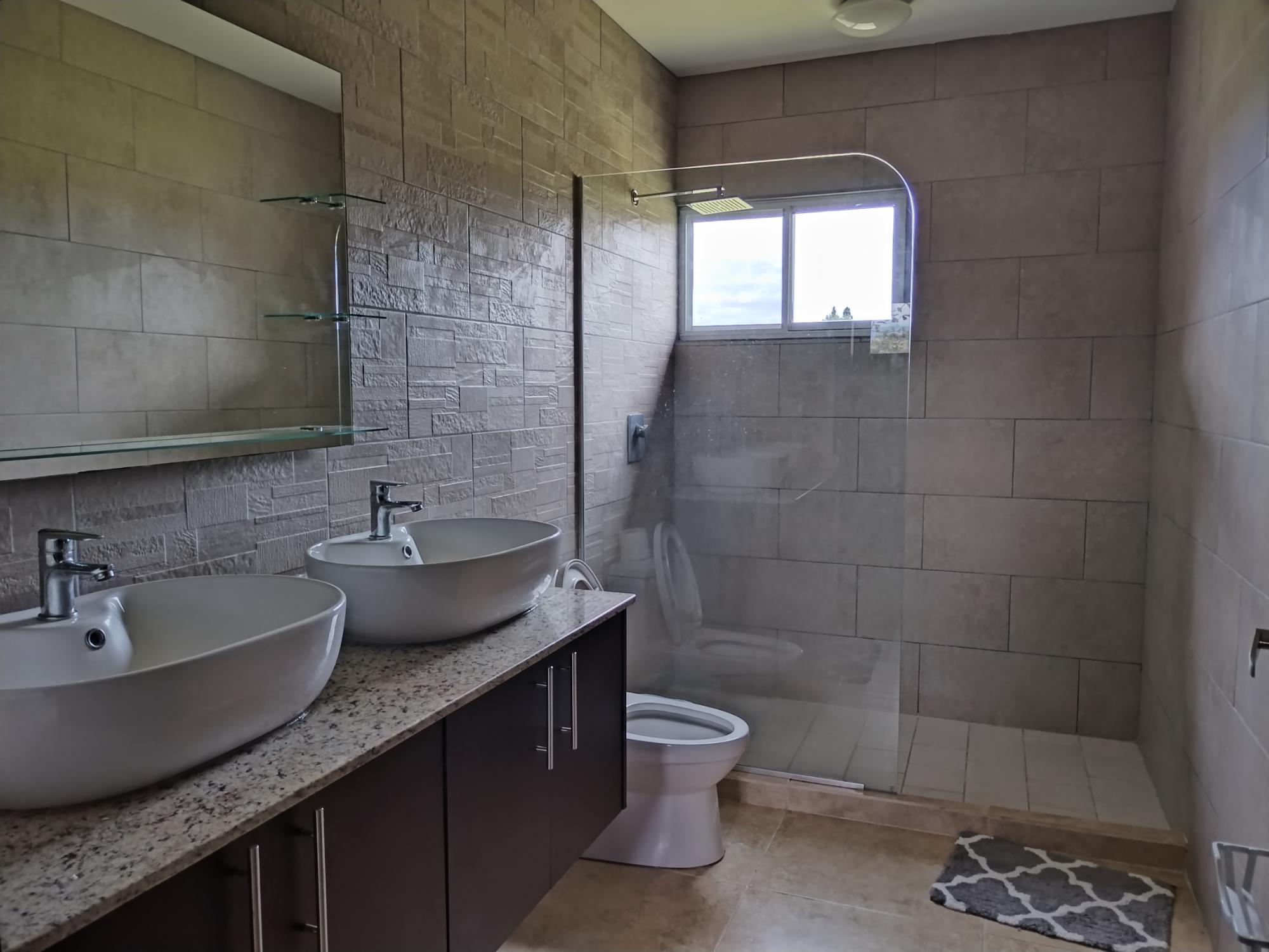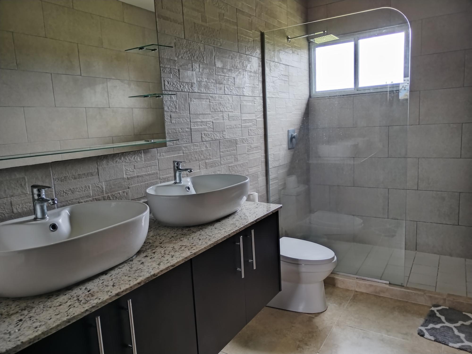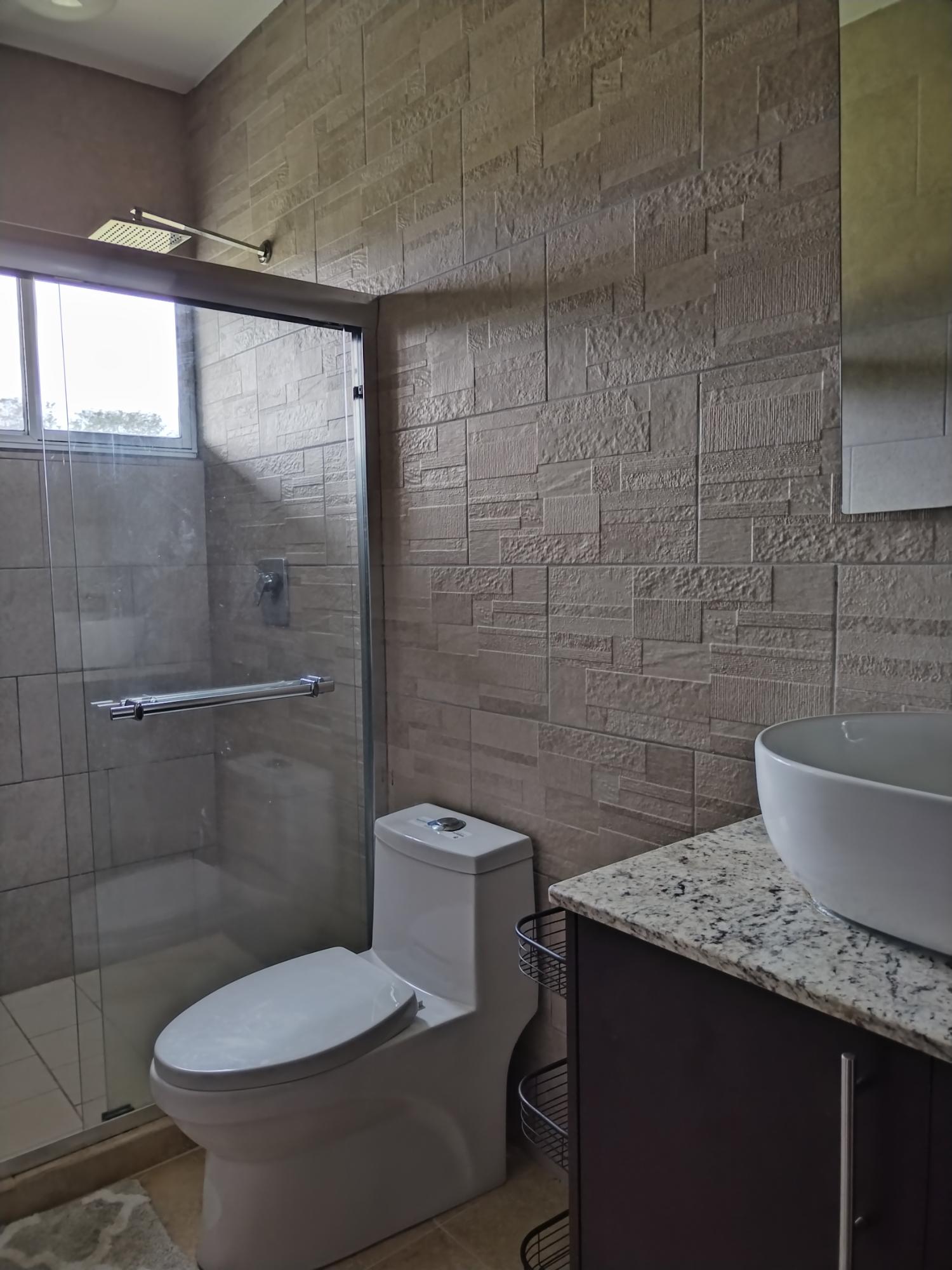 Located in the desirable Boquete Canyon Village, this 3-bedroom, 2.5-bathroom home offers a 1,500-square-meter flat lot with beautifully landscaped trees. Sold fully furnished, this property is ready for you to move in and start enjoying all that Boquete has to offer. The open-concept living and dining area connects seamlessly with the kitchen, making it a perfect space for both relaxation and entertaining. The kitchen is equipped with a breakfast bar and stools, along with a double-door refrigerator, dishwasher, stove, and hood. A glass door from the living area leads to the terrace, where you can unwind while taking in views of the mountains and the lush landscaping that surrounds the home.