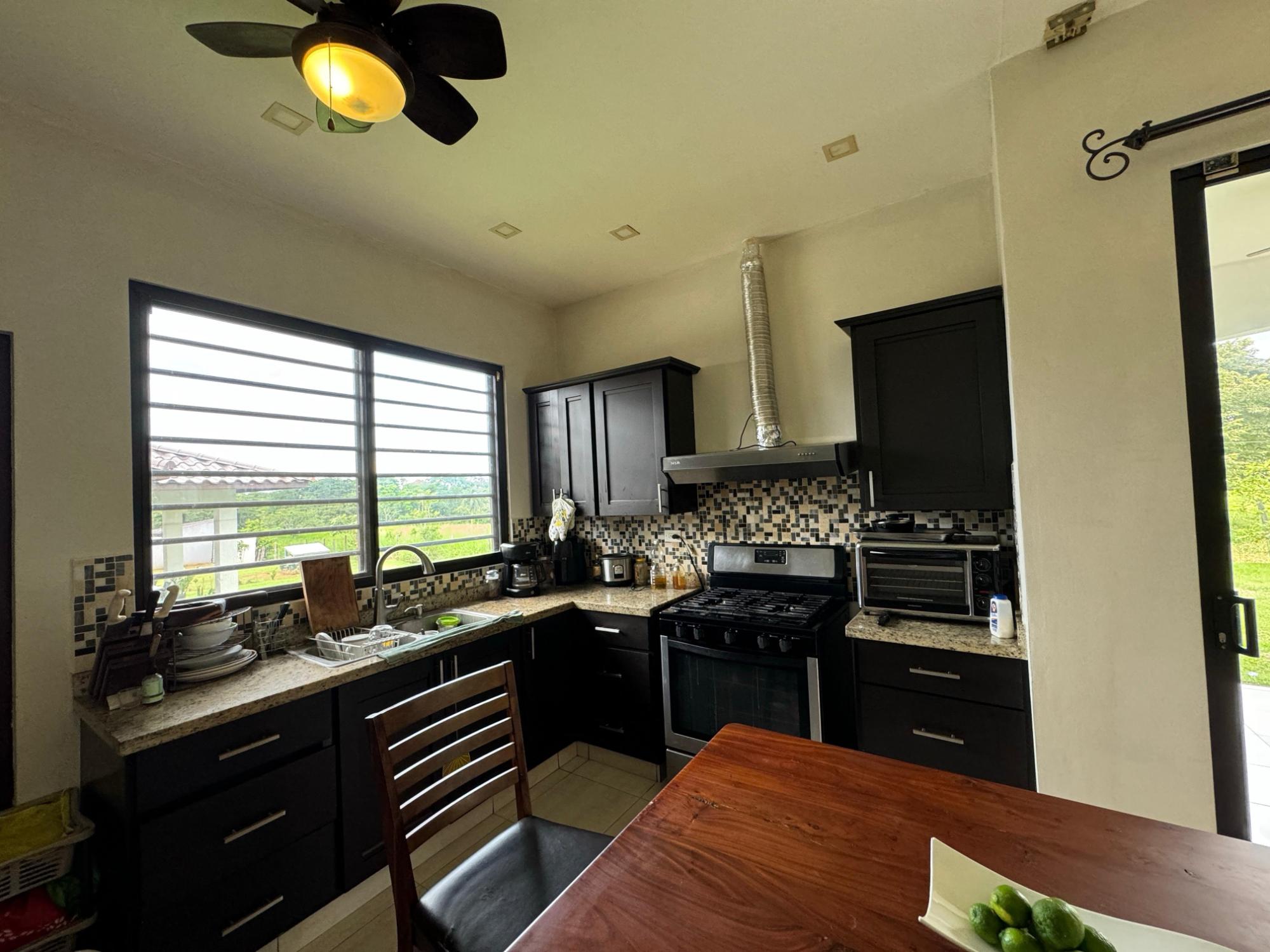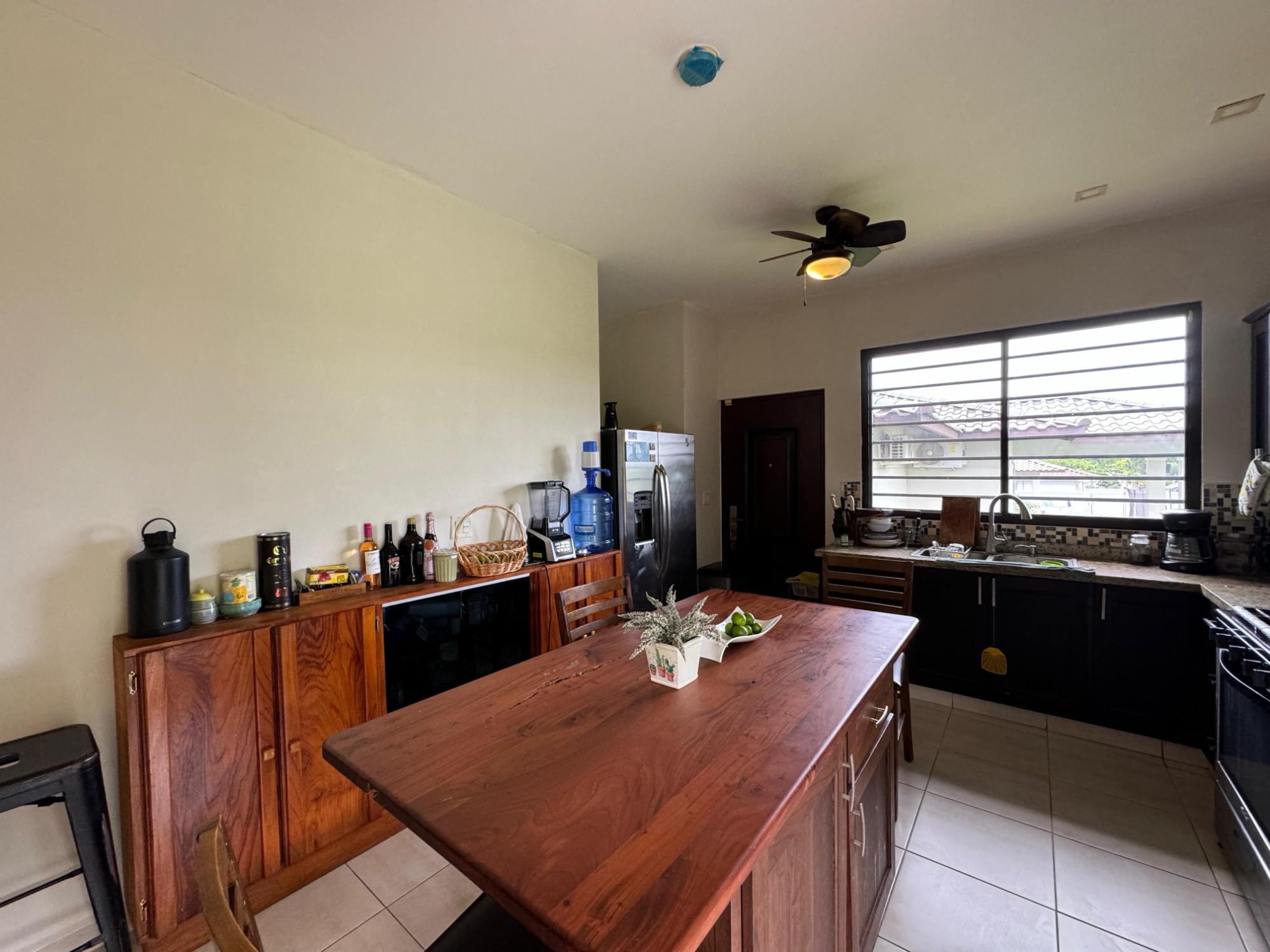 Listing Description This fully furnished 4-bedroom, 3-bathroom home is available for sale or rent in Las Colinas de San Carlitos, just 5 minutes from downtown David, Chiriquí. The home is located in a quiet residential neighborhood and offers a spacious layout, natural lighting, and practical outdoor areas—ideal for comfortable living and entertaining. As you walk in, you’re welcomed by a bright, open-concept living and dining area with large windows and vaulted ceilings that enhance the sense of space. Neutral tones and tasteful furnishings create a warm, move-in-ready atmosphere. The kitchen features granite countertops, a central island with built-in seating, and a U-shaped layout with plenty of counter and cabinet space. It’s perfect for home cooking and everyday dining. The main bedroom includes a king-sized bed, a walk-in closet, and a private bathroom. The secondary bedrooms are furnished with a mix of full-size and twin beds, offering flexible sleeping arrangements for families, guests, or tenants.