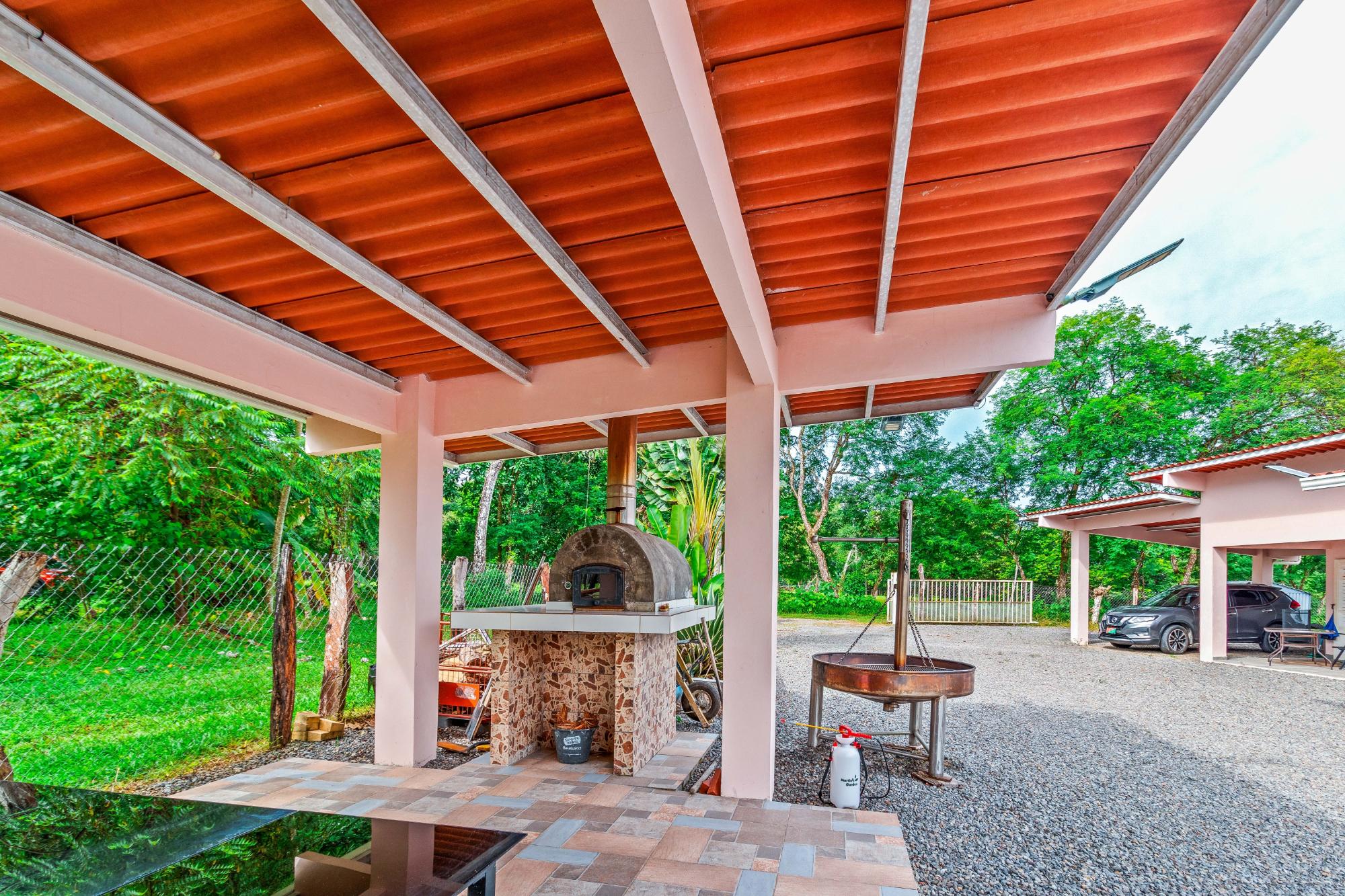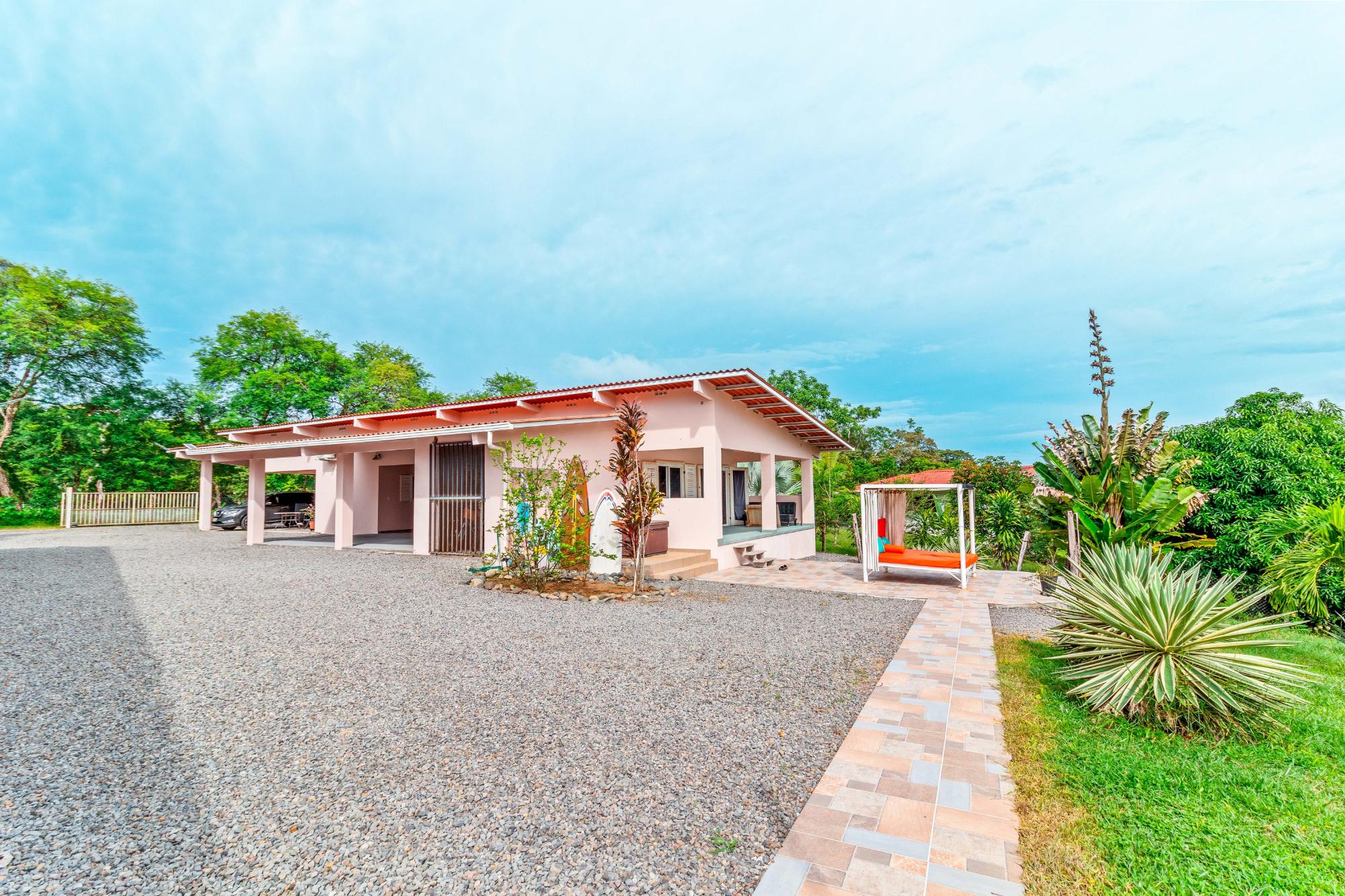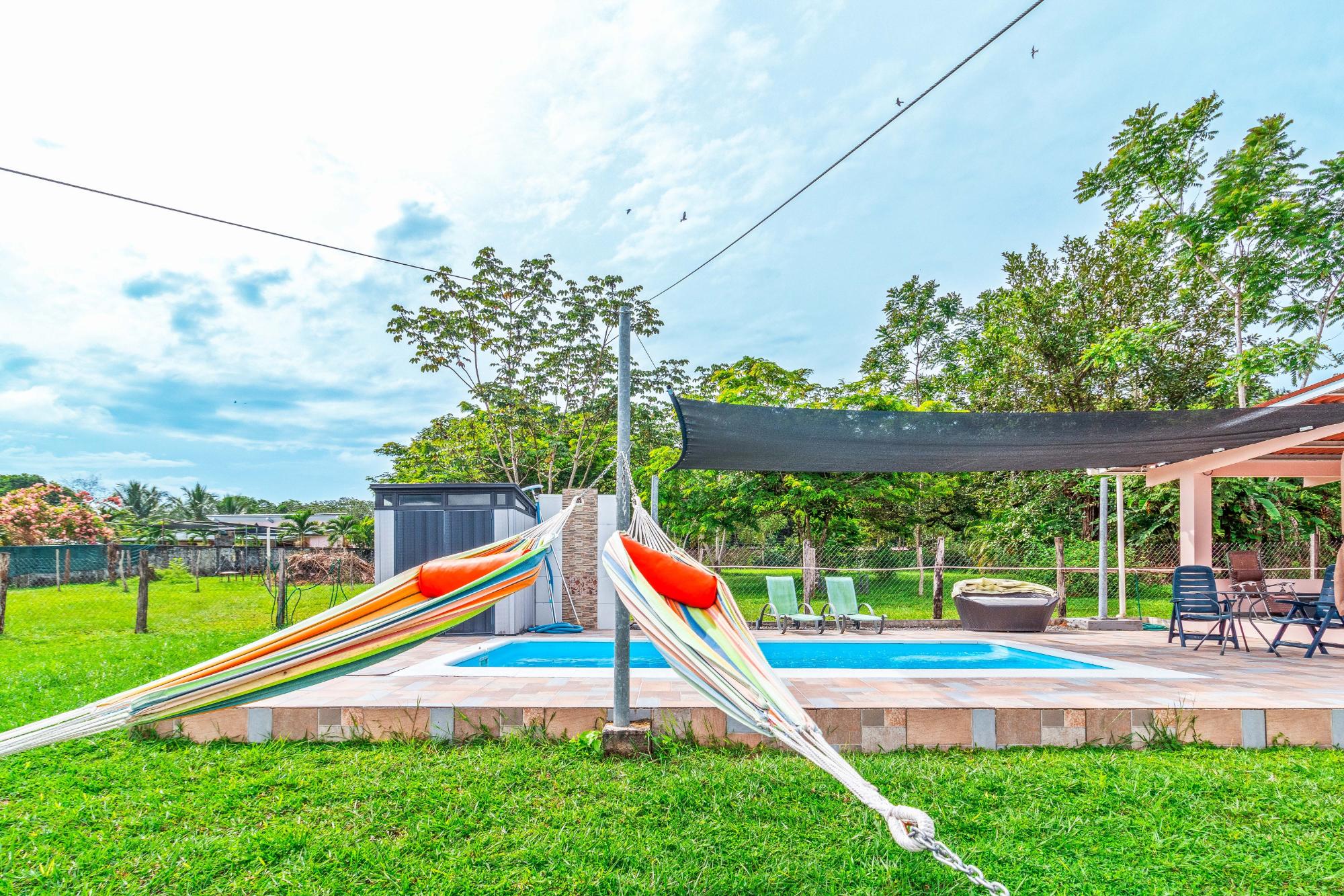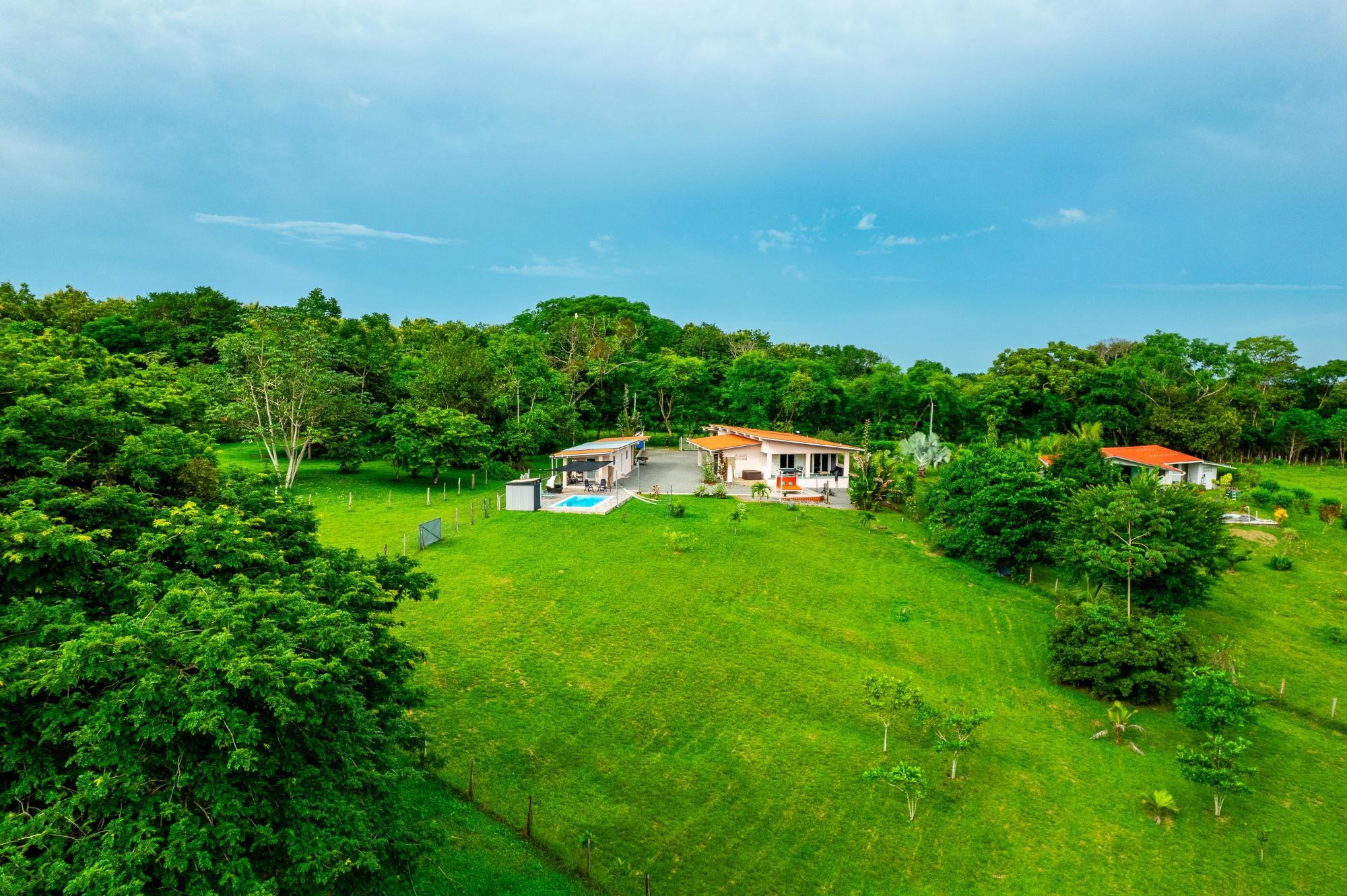 Welcome to this beautiful, fully furnished house that can be used perfectly as a family home or duplex. The property is situated in a peaceful, green landscape just a few minutes from the beach, offering an ideal combination of nature and comfort. Enjoy the amenities in your private restort in the middle of a spacious tropical garden. Relax at your sun-protected pool on the comfort canvas chairs, in the sun-proteced hammock or pavilion. An outdoor shower and a pool equippment shed are also at the pool deck. For social evenings, there is a table tennis table, hammock setups, and a treadmill. Additionally, a Jacuzzi, stone oven, and stainless steel grill provide outdoor culinary highlights. The home features a modern kitchen with refrigerator and drinking water filter, as well as a washer and dryer. Fans and central air conditioning provide comfort year-round. The property is fully fenced and includes its own driveway, two covered parking spaces with an electric gate, and a garden house. Another highlight is the second house with two rooms, which can be used in various ways—such as for rental purposes. The estate is equipped with power, water, and Starlink internet, and has a rainwater tank for watering. A true paradise for nature lovers and families who wish to enjoy life in the green in a peaceful environment! Adjacent to the garden, there is additional land with its own well, a small river, and a small forest area, which can be purchased separately. This property also offers an adjoining plot of land with its own well, a small river, and a small forest.