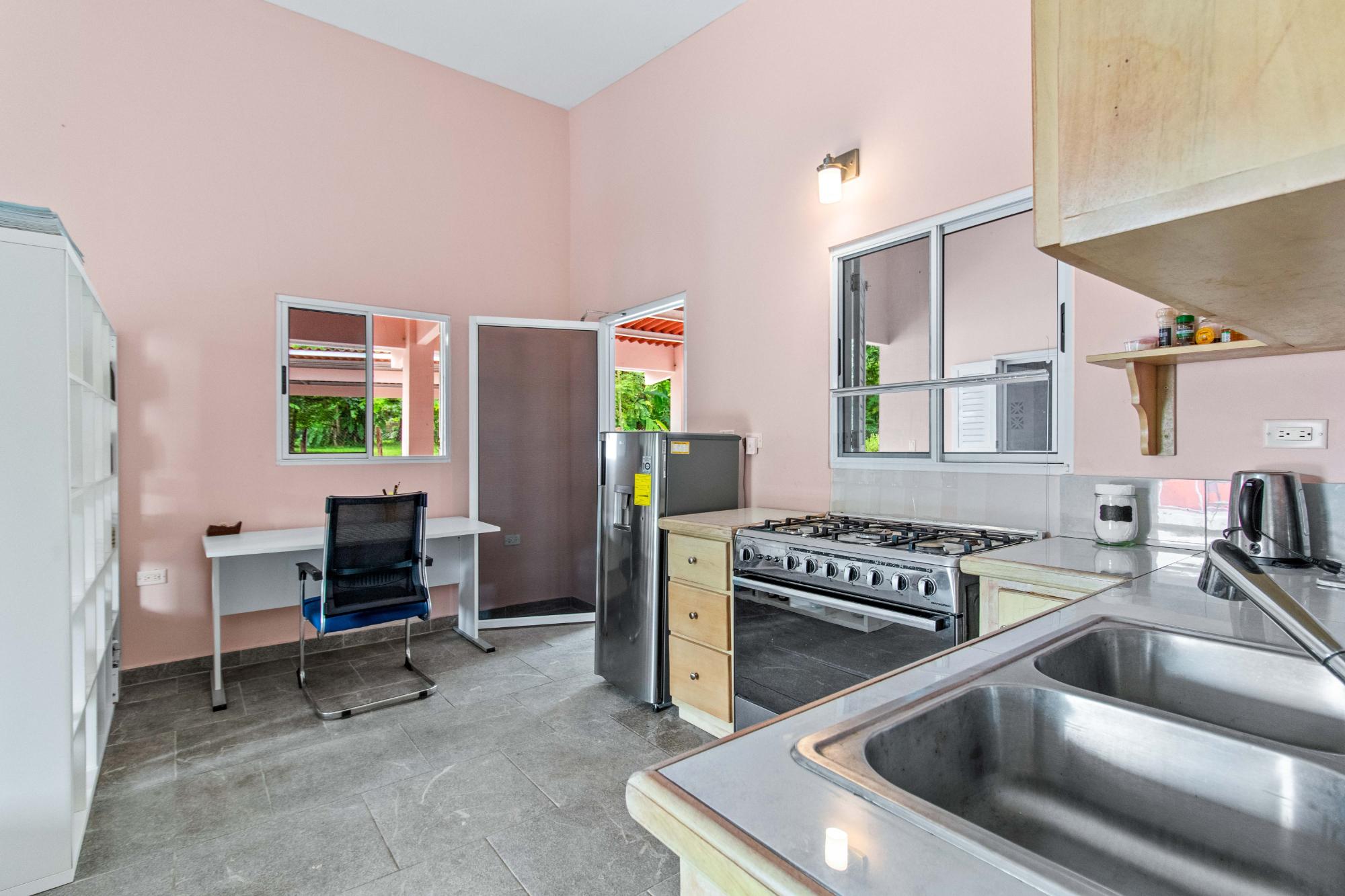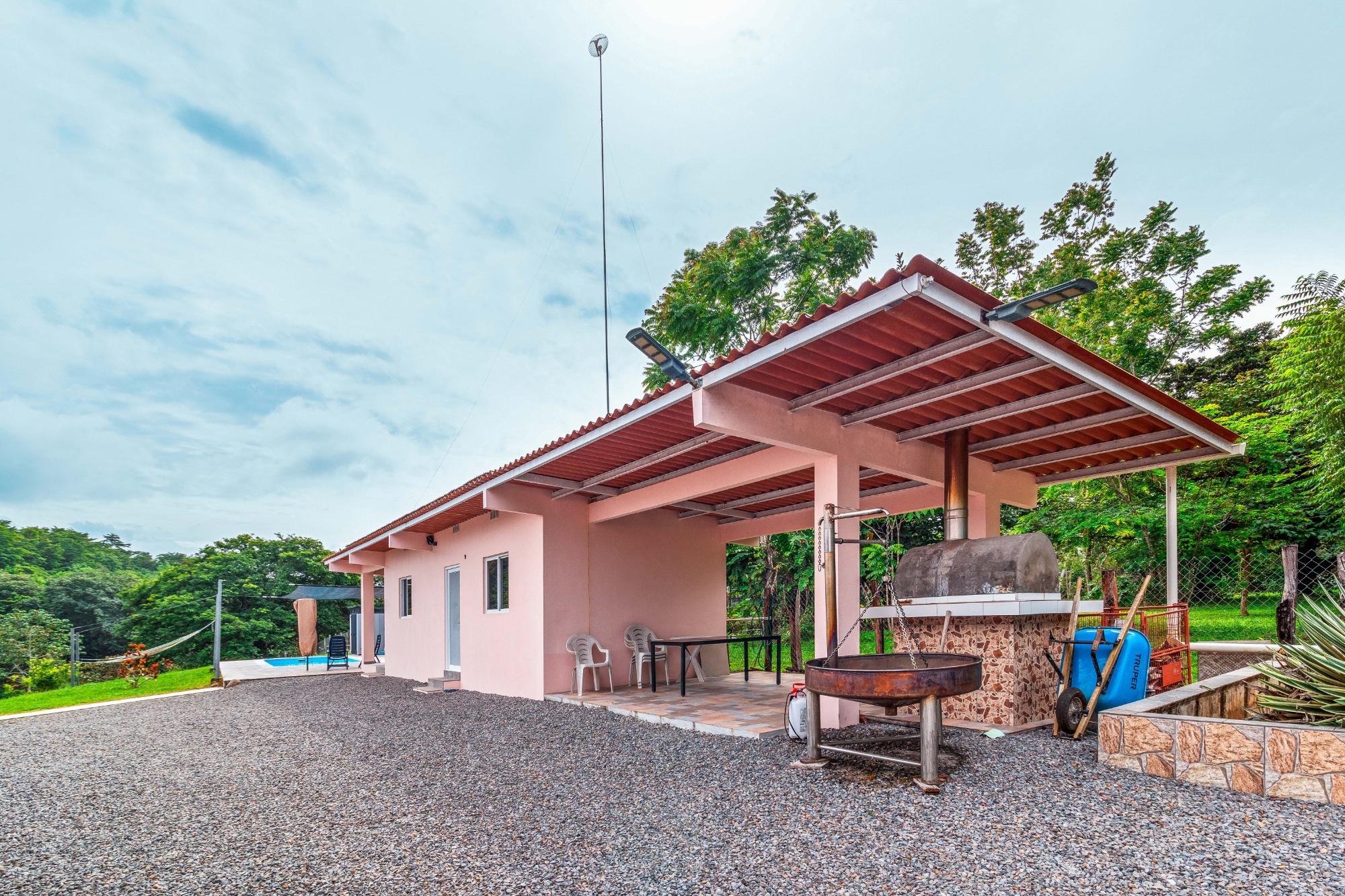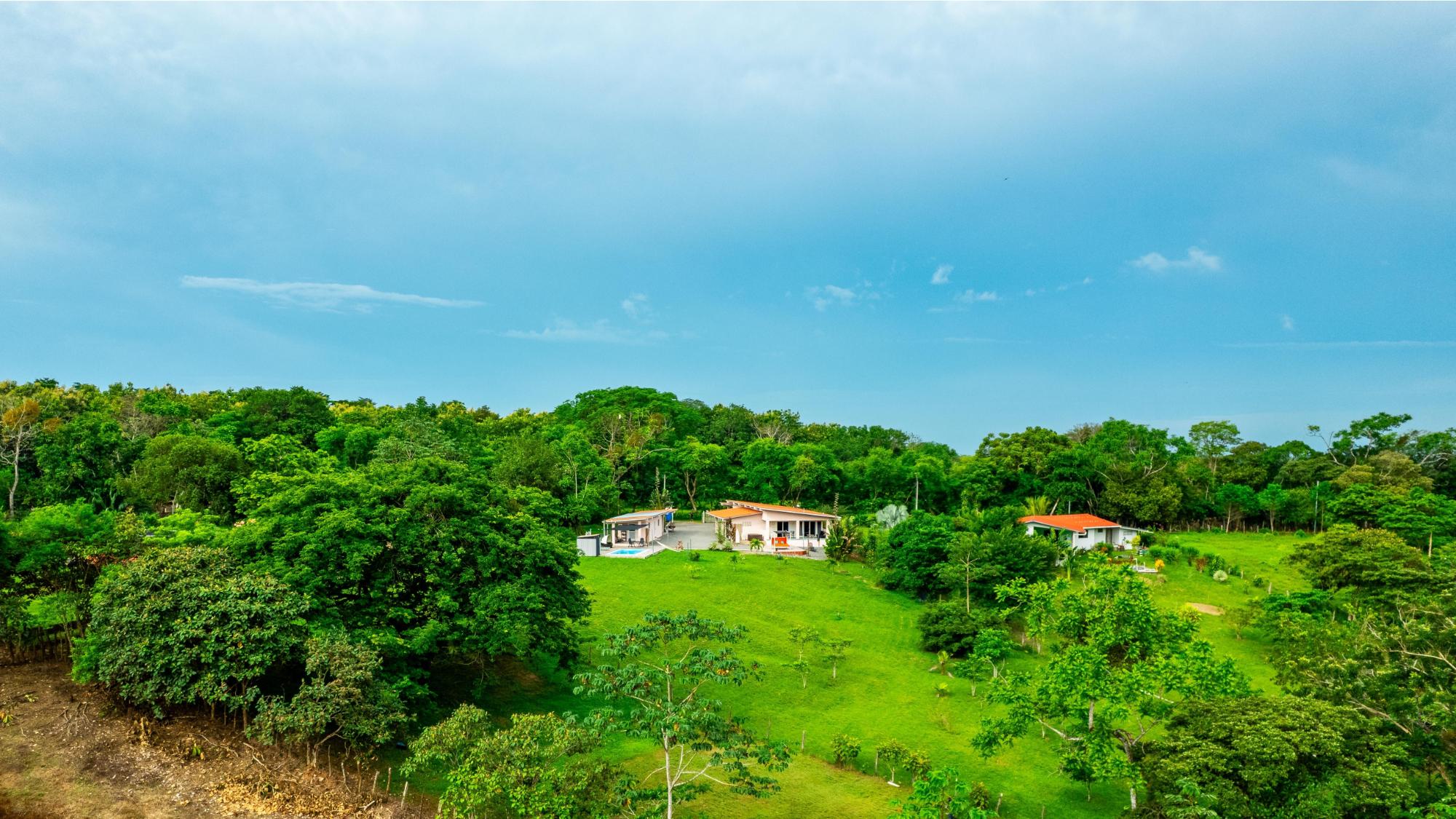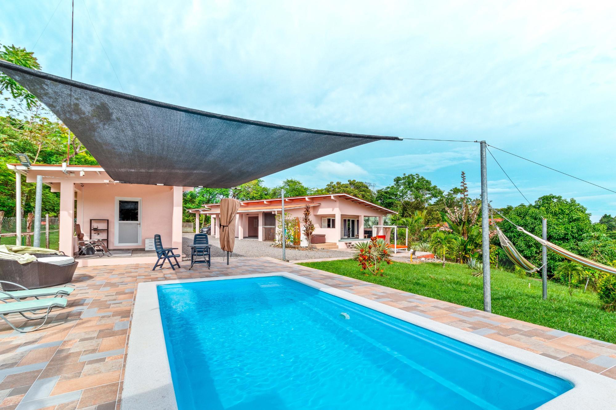 Welcome to this beautiful, fully furnished house that can be used perfectly as a family home or duplex. The property is situated in a peaceful, green landscape just a few minutes from the beach, offering an ideal combination of nature and comfort. Enjoy the amenities in your private restort in the middle of a spacious tropical garden. Relax at your sun-protected pool on the comfort canvas chairs, in the sun-proteced hammock or pavilion. An outdoor shower and a pool equippment shed are also at the pool deck. For social evenings, there is a table tennis table, hammock setups, and a treadmill. Additionally, a Jacuzzi, stone oven, and stainless steel grill provide outdoor culinary highlights. The home features a modern kitchen with refrigerator and drinking water filter, as well as a washer and dryer. Fans and central air conditioning provide comfort year-round. The property is fully fenced and includes its own driveway, two covered parking spaces with an electric gate, and a garden house. Another highlight is the second house with two rooms, which can be used in various ways—such as for rental purposes. The estate is equipped with power, water, and Starlink internet, and has a rainwater tank for watering. A true paradise for nature lovers and families who wish to enjoy life in the green in a peaceful environment! Adjacent to the garden, there is additional land with its own well, a small river, and a small forest area, which can be purchased separately. This property also offers an adjoining plot of land with its own well, a small river, and a small forest.