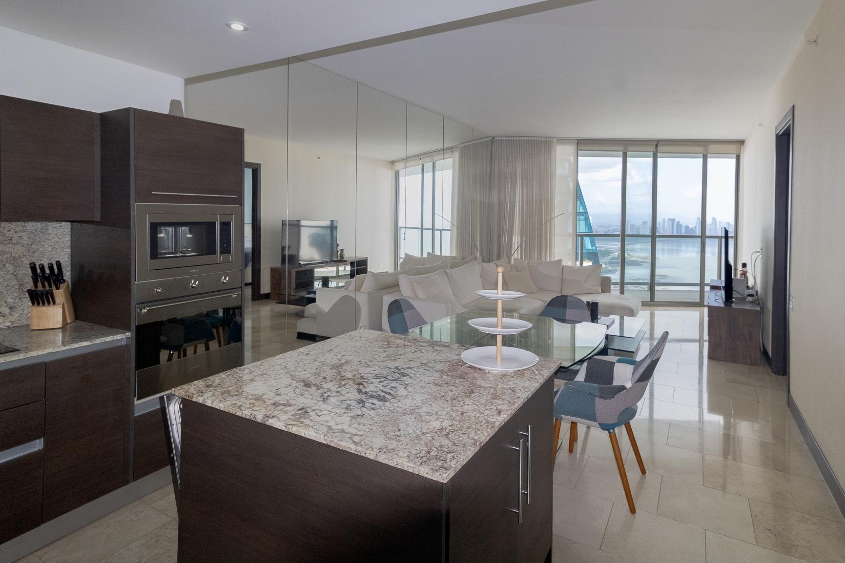 Fully furnished apartment with beautiful views of the ocean and Costa del Este in the exclusive Punta Pacífica area, located in one of the most complete buildings with the best amenities. Its modern kitchen features an island equipped with dishwasher and its large balcony is accessible from both the living room and bedroom. The Ocean Club building offers its residents hotel amenities such as a spa, international cuisine restaurants, shuttle service, valet parking, concierge service, 24-hour security, and other facilities such as beauty salons, a pharmacy, cafes, mini-markets, and wine shops. It also features eight swimming pools, a fully equipped 24-hour gym, and a business center.
