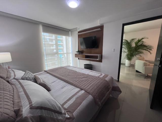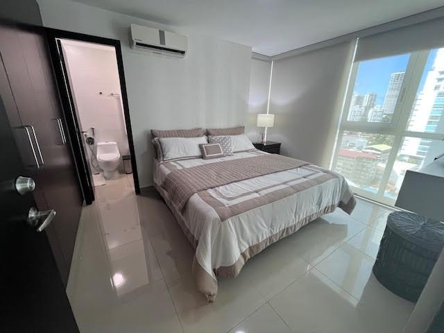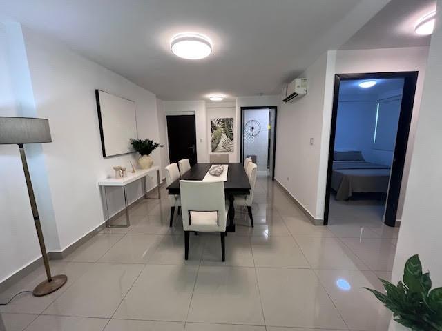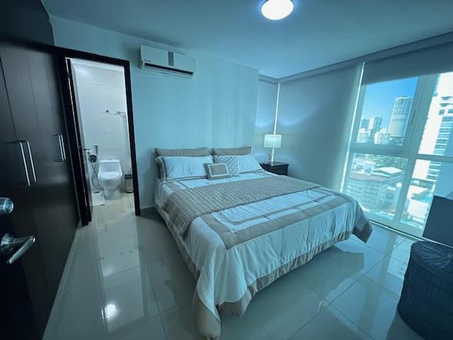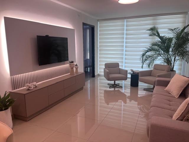 Beautifully furnished apartment for sale on 43rd street meters from Urraca Park and the Cinta Costera. The apartment consists of 3 bedrooms, 2 bathrooms, living room, kitchen, balcony, service room and bathroom and a parking lot. The building has a social area complete with swimming pool, party room, gym, game room, security and concierge.
