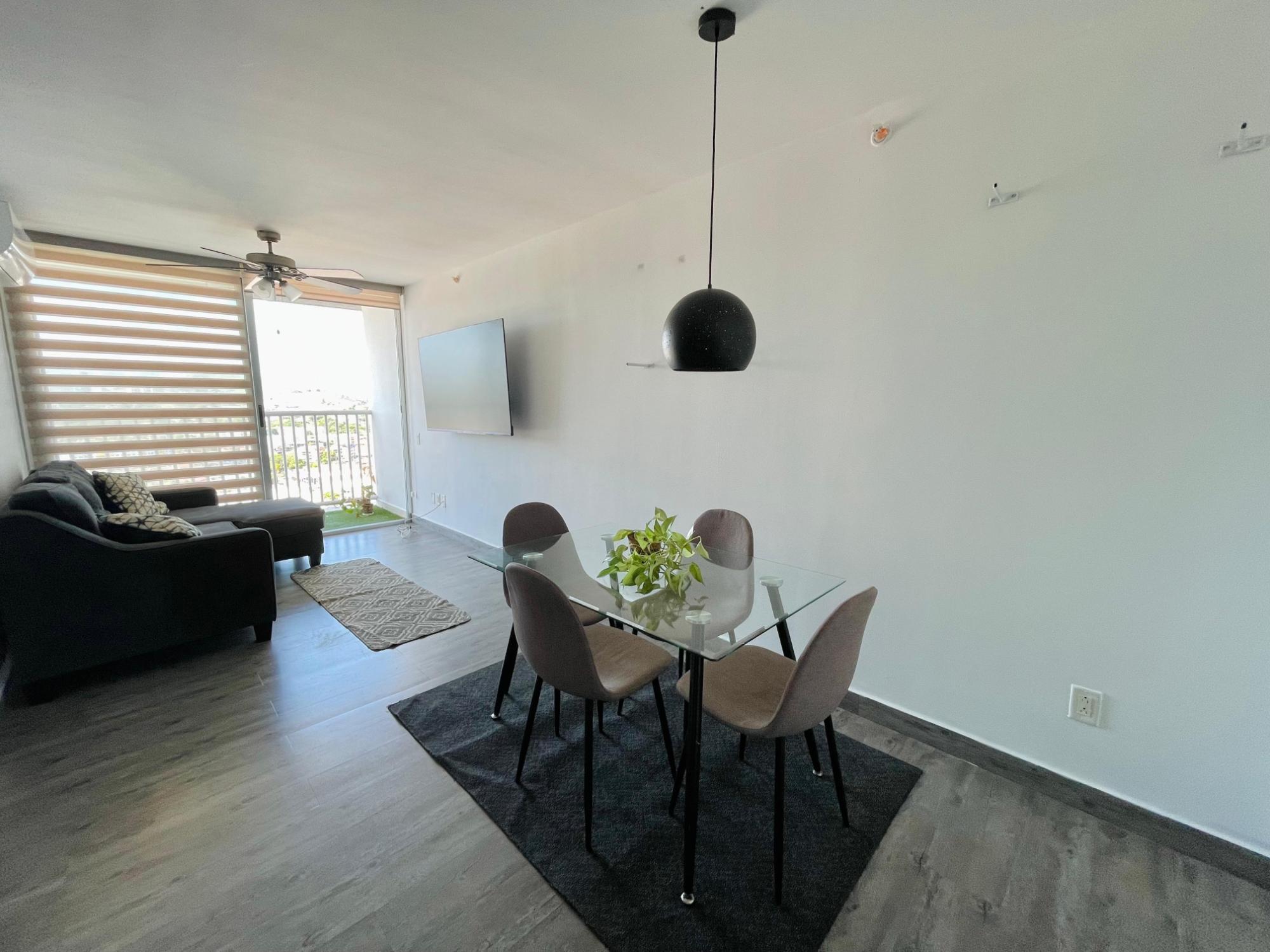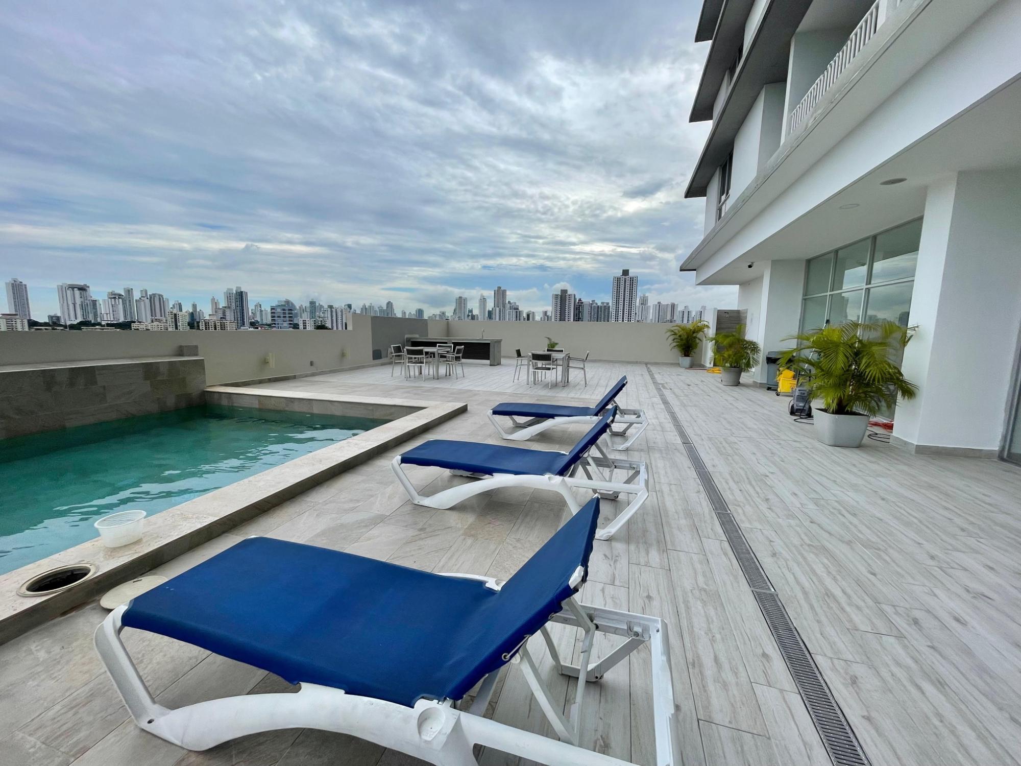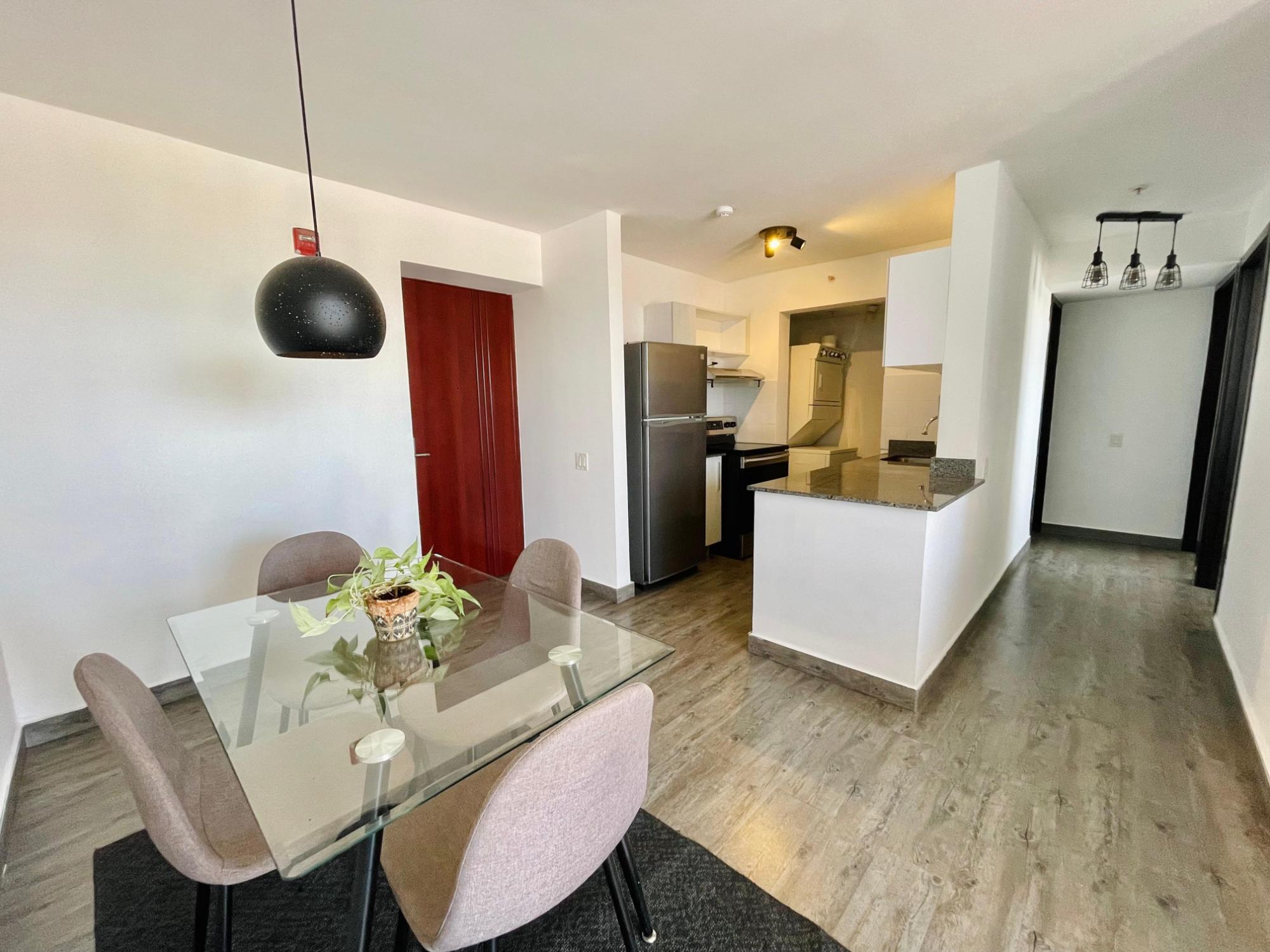 Furnished Apartment for Rent in Parque Lefevre – PH Alegría PH Alegría has an excellent strategic location on Vía España, close to supermarkets, pharmacies, bakeries, restaurants and minutes from Costa del Este and San Francisco, due to its different access routes and public transportation. The apartment has: 66m2, 2 bedrooms, 2 full bathrooms, 1 parking, White Line, Inverter air conditioners, Open kitchen with granite countertops, Modern furniture, Lamps and blinds, Remodeled, Balcony. The building has a social area, party room, gym, swimming pool, playground, lobby, power plant, water tank, power plant, visitor parking and 24 hour security.