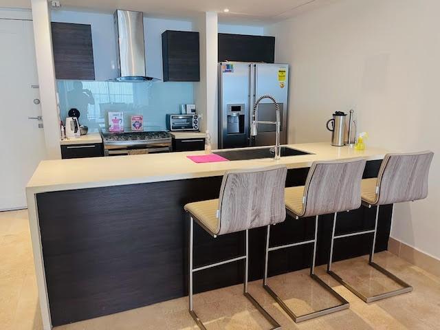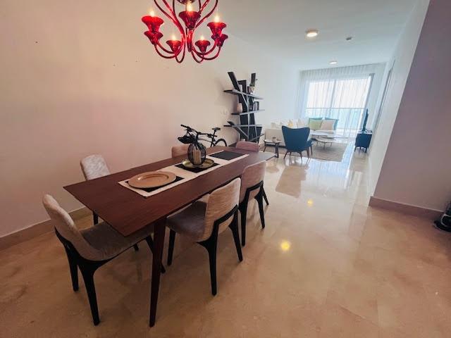 Imagine waking up to a hot cup of coffee and admiring the Bay of Panama from your 66th floor balcony; in one of the best buildings in Panama City and with an impressive view of the Bay of Panama. Furnished apartment with 1 bedroom, 1 bathroom, living room – dining room, guest bathroom, large balcony, 2 closets, kitchen, laundry area and parking. The building has Valet parking, reception, social area complete with swimming pool, gym, poker room, children’s play area, restaurants, Spa and more. You should only bring your personal belongings. Don’t miss the opportunity to visit before making a decision.