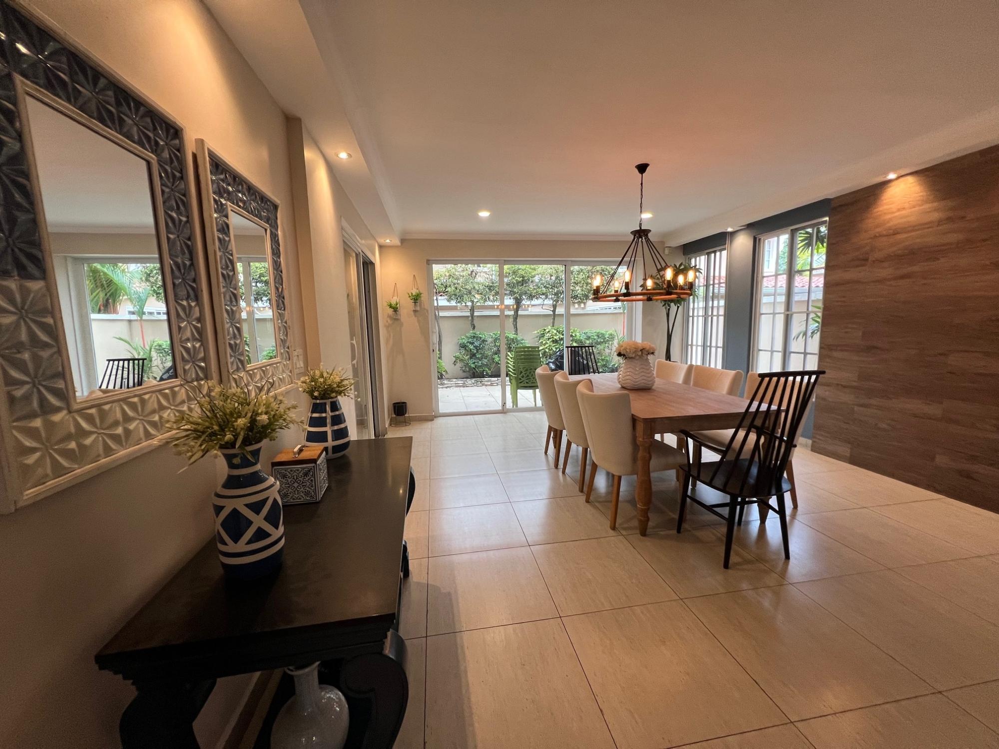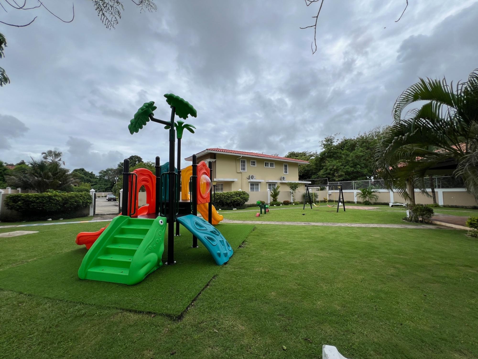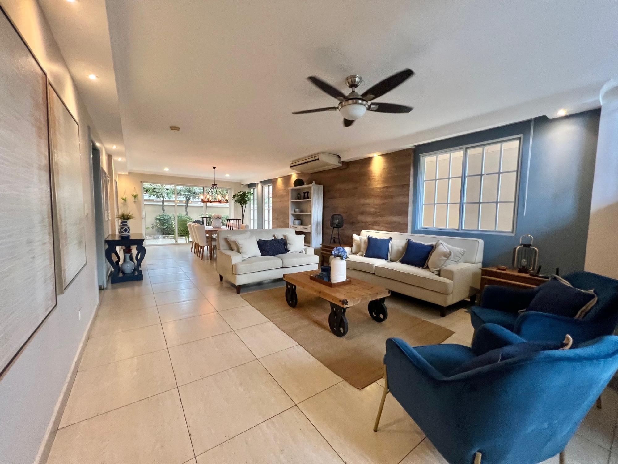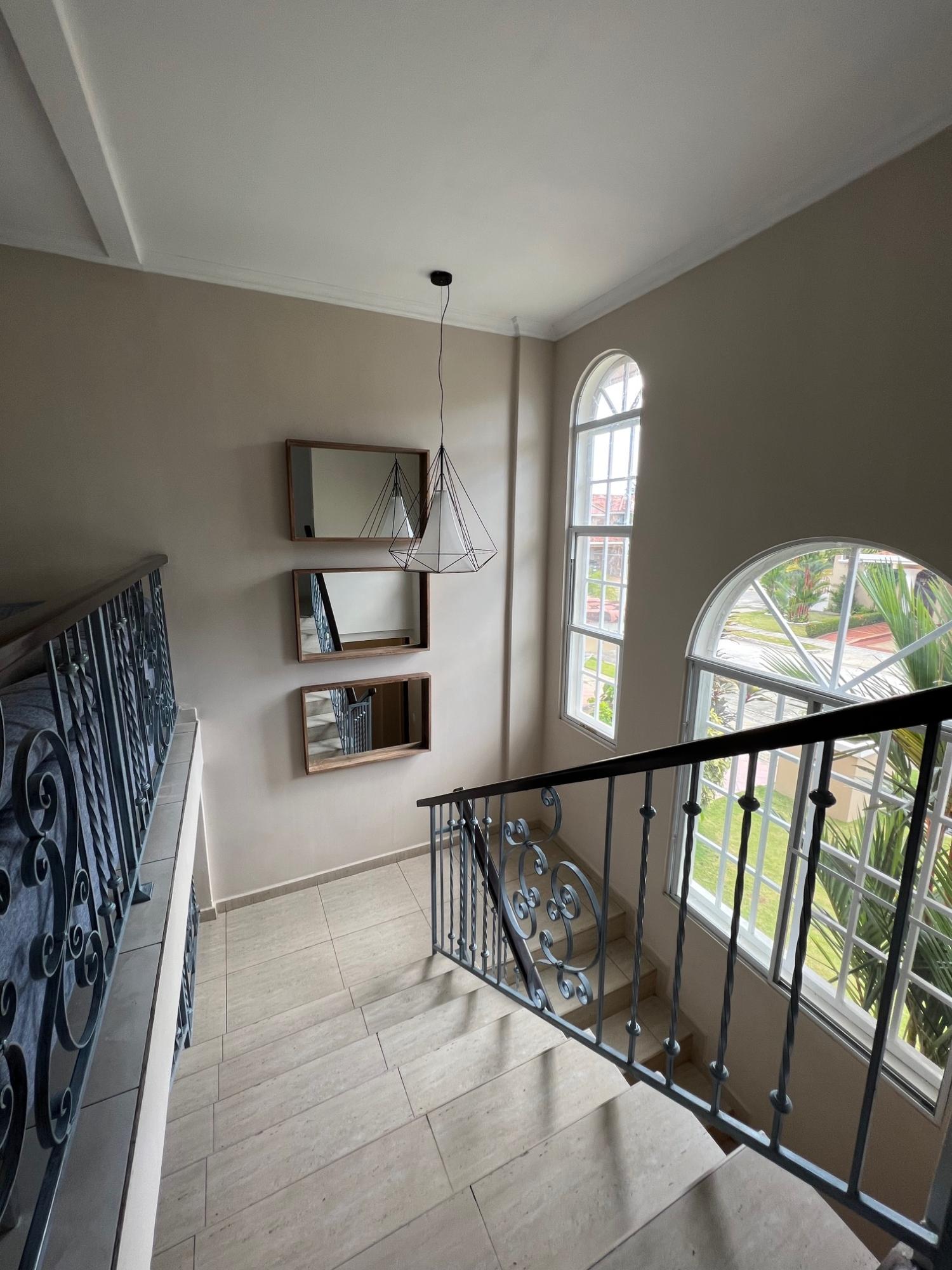 House for rent in a gated community in Castel Novo, fully furnished, across from Santa Maria and Costa del Este. Price: $2,500. The house includes appliances, a family room with a bar, a spacious living and dining room, a terrace, a guest bathroom, a large kitchen, a laundry area, a maid’s quarters with a bathroom, and three spacious bedrooms with three bathrooms. Located next to Costa del Este and Santa Maria, minutes from schools, pharmacies, banks, shopping centers, supermarkets, and with direct access to the Southern Corridor. The gated community features 24-hour security, underground utilities, a social area with a playground, a soccer field, a half-basketball court, and visitor parking.