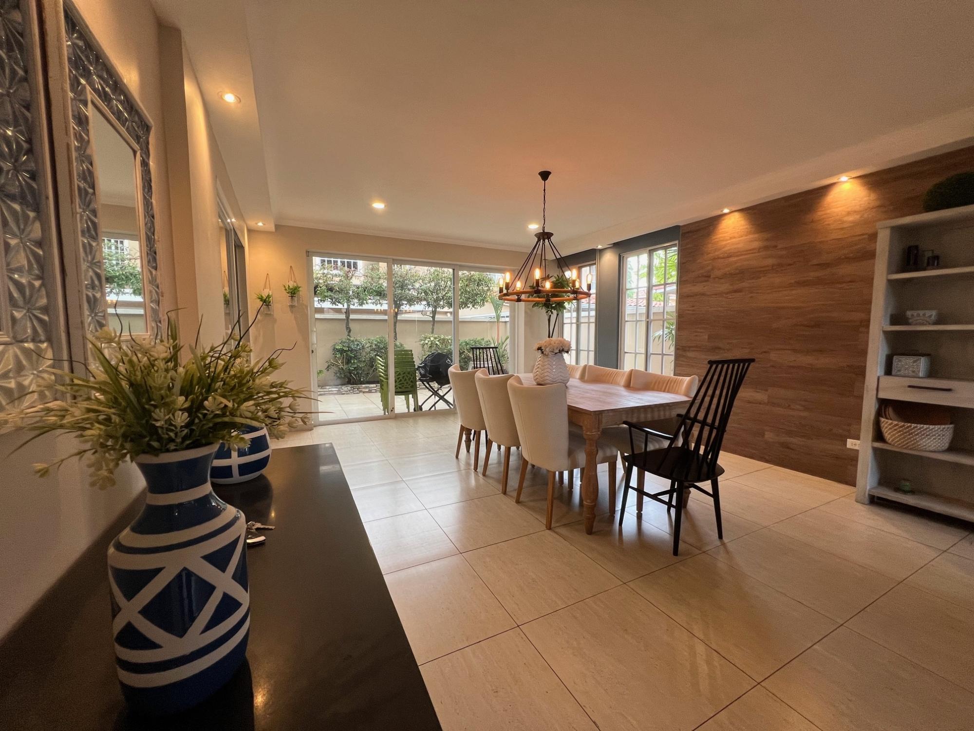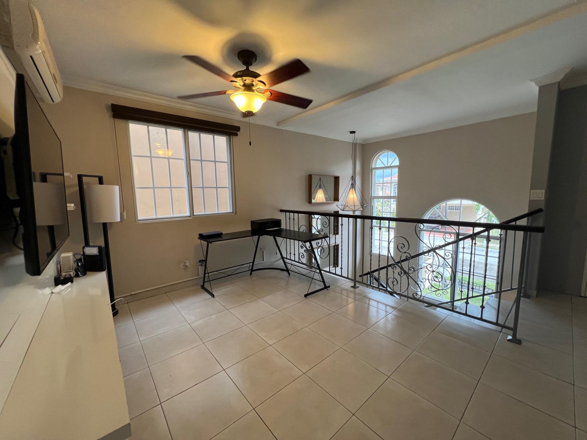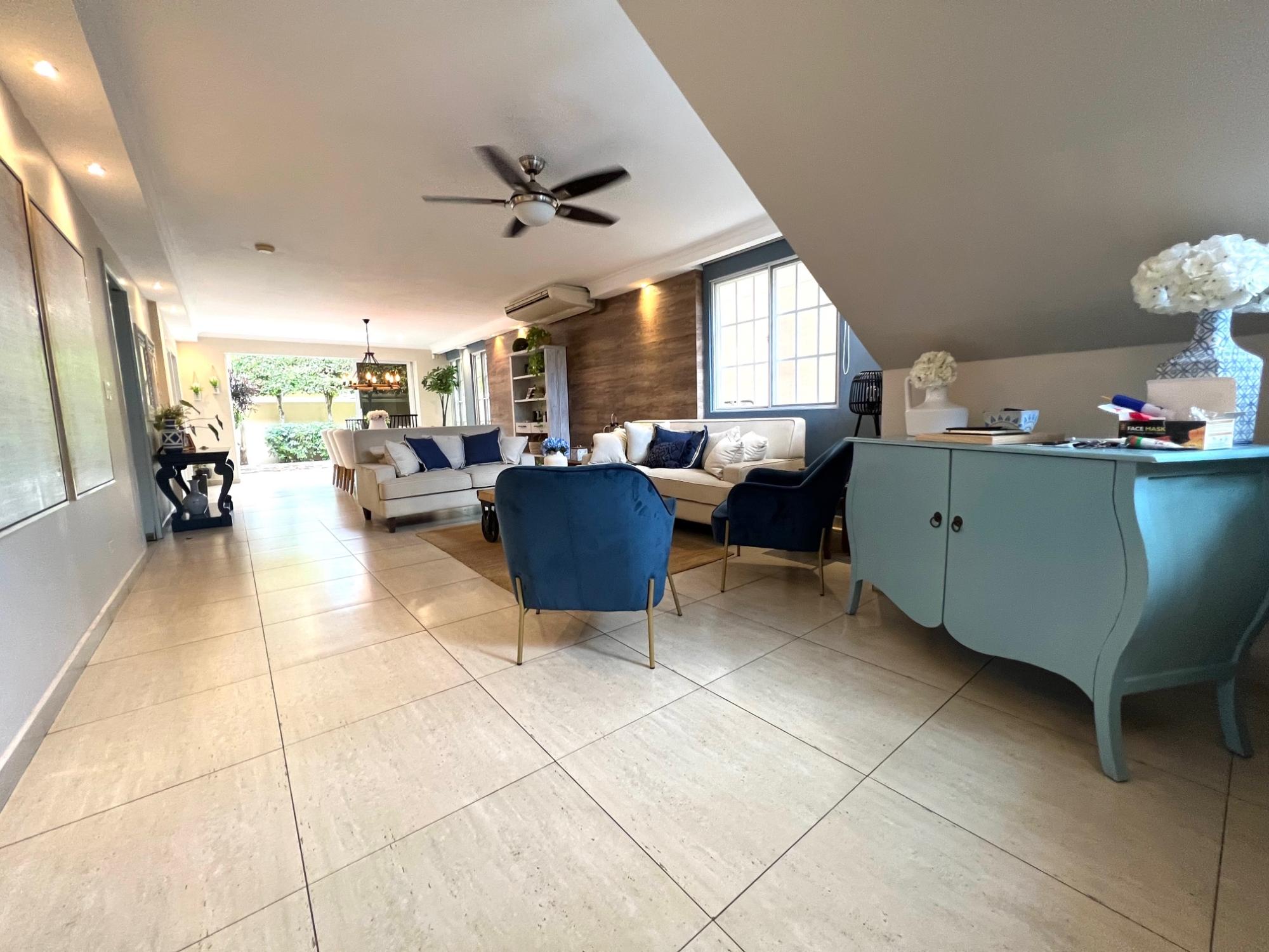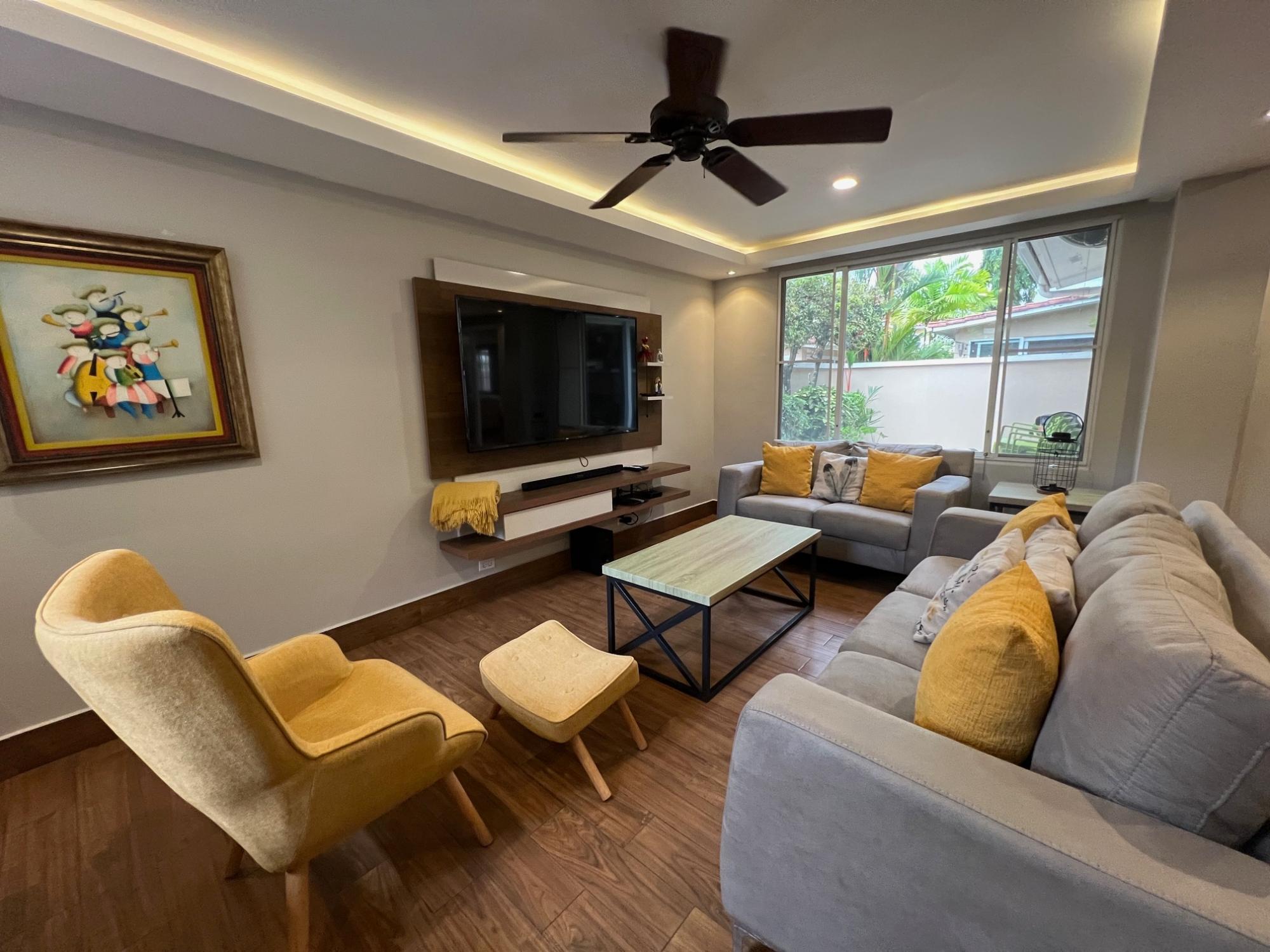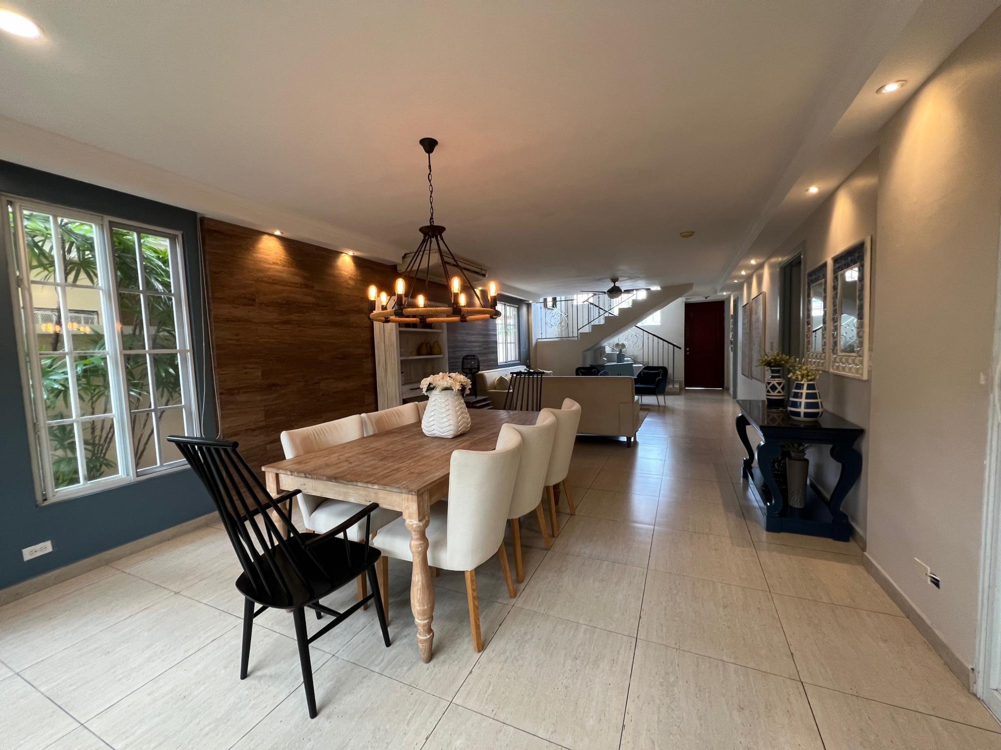 House for rent in a gated community in Castel Novo, fully furnished, across from Santa Maria and Costa del Este. Price: $2,500. The house includes appliances, a family room with a bar, a spacious living and dining room, a terrace, a guest bathroom, a large kitchen, a laundry area, a maid’s quarters with a bathroom, and three spacious bedrooms with three bathrooms. Located next to Costa del Este and Santa Maria, minutes from schools, pharmacies, banks, shopping centers, supermarkets, and with direct access to the Southern Corridor. The gated community features 24-hour security, underground utilities, a social area with a playground, a soccer field, a half-basketball court, and visitor parking.
