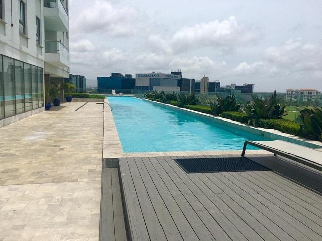 Greenview Residence is located within Santa Maria Golf & Country Club, close to restaurants, schools, hotels, supermarkets and big parks to enjoy outdoor activities. Surrounded by an 18-hole designed golf course. We rent a brand new beautiful apartment on the 15th floor, 3 Bedrooms each with its internal bathroom and WIC, with Living – Dining Room and Balcony with a view of the 16th hole of the Golf Course, spacious kitchen equipped with Luxury White Line, marble floor, lamps and air conditioners, it includes 2 parking spaces. First Class Common Area: Olympic pool, BBQ area, Fitness center, Party hall, Playground, Golf course (membership not included).